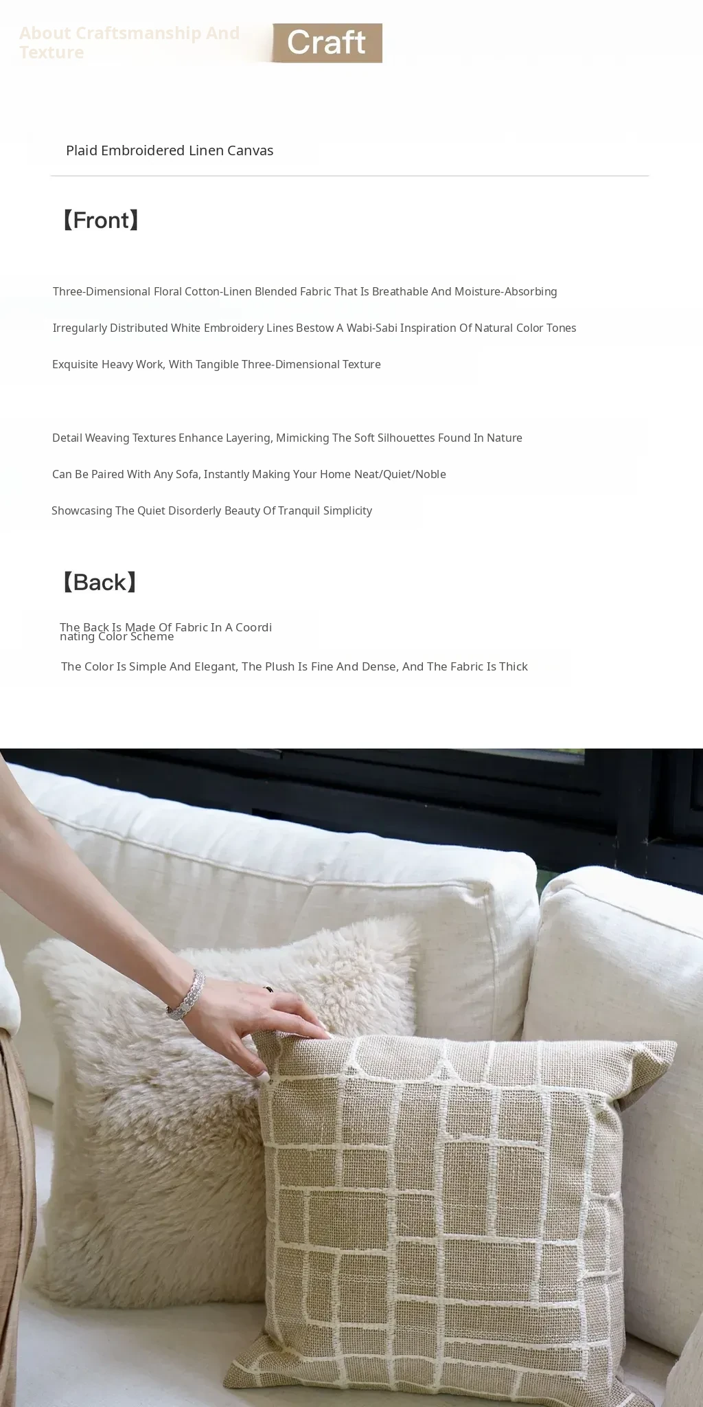 TEXDREAM Attitude Natural Style Cotton Linen Throw Pillow - Cozy Cushions for Living Room Sofa, INS Wabi-Sabi Aesthetic Bedroom Tatami Accent Pillow, Perfect for Comfort and Style!