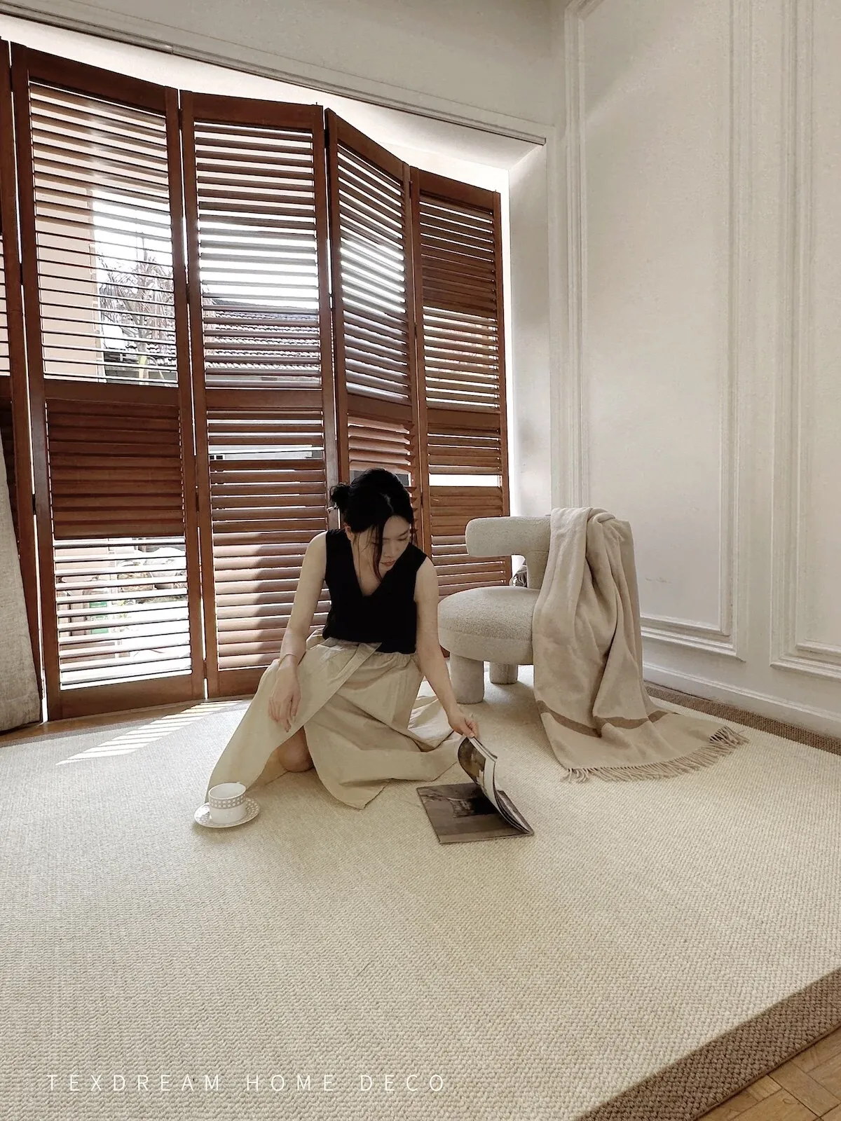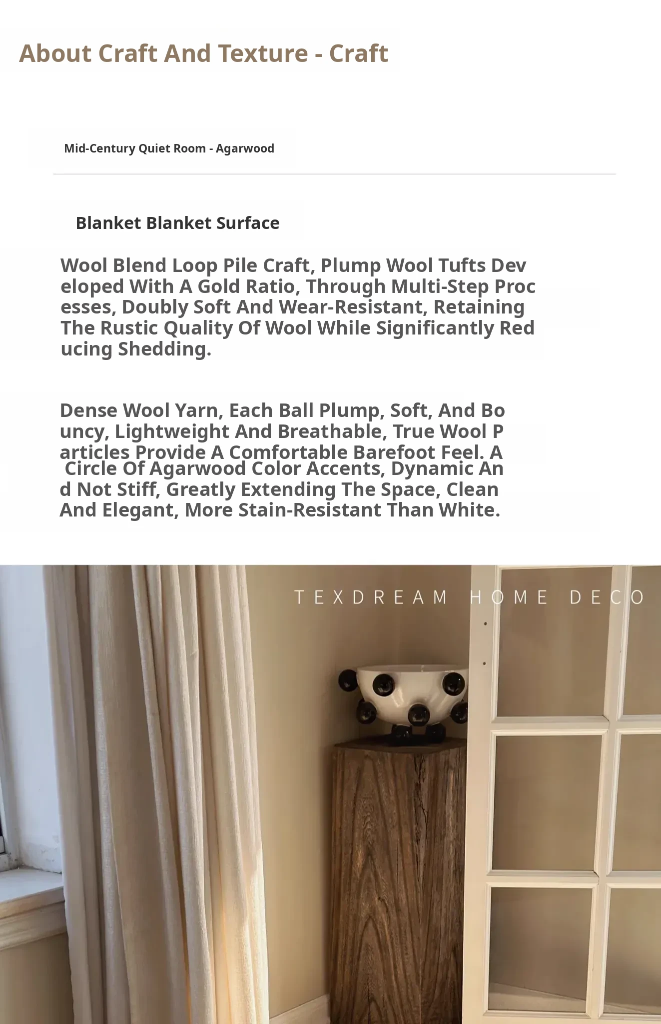 Texdream Attitude Quiet Room - Premium Agarwood Minimalist Imported Wool Carpet for Sofa & Bedroom, Exuding Elegance and Serenity