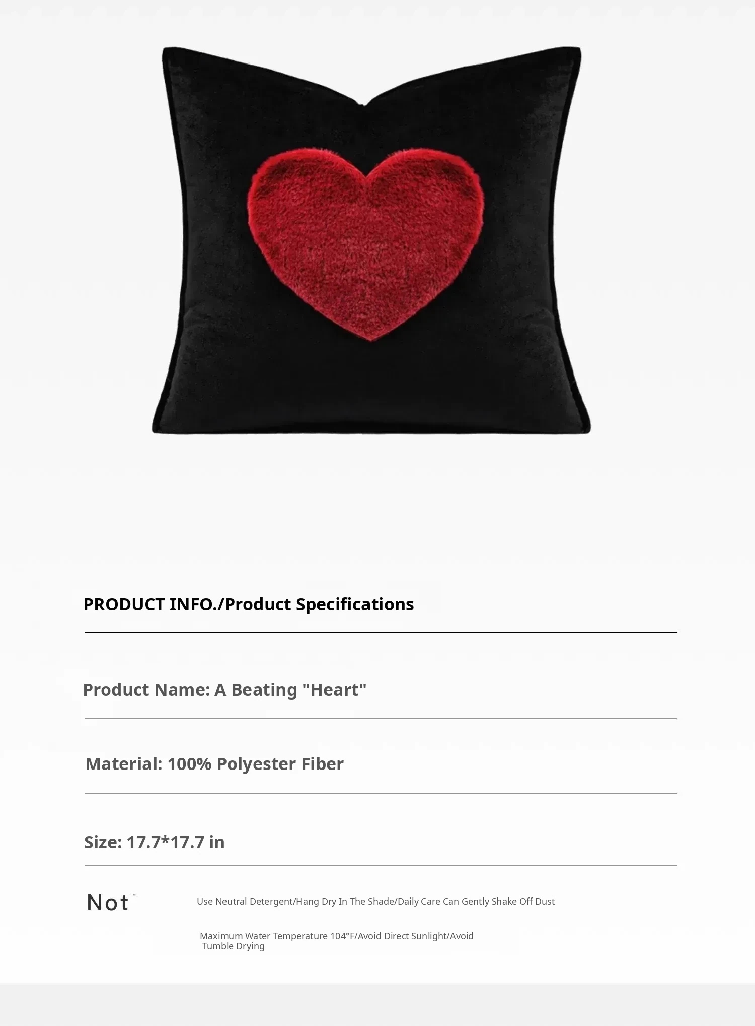 TEXDREAM Attitude Red Heart Plush Square Throw Pillow - Versatile Sofa Cushion and Stylish Lumbar Support for a Touch of Luxury