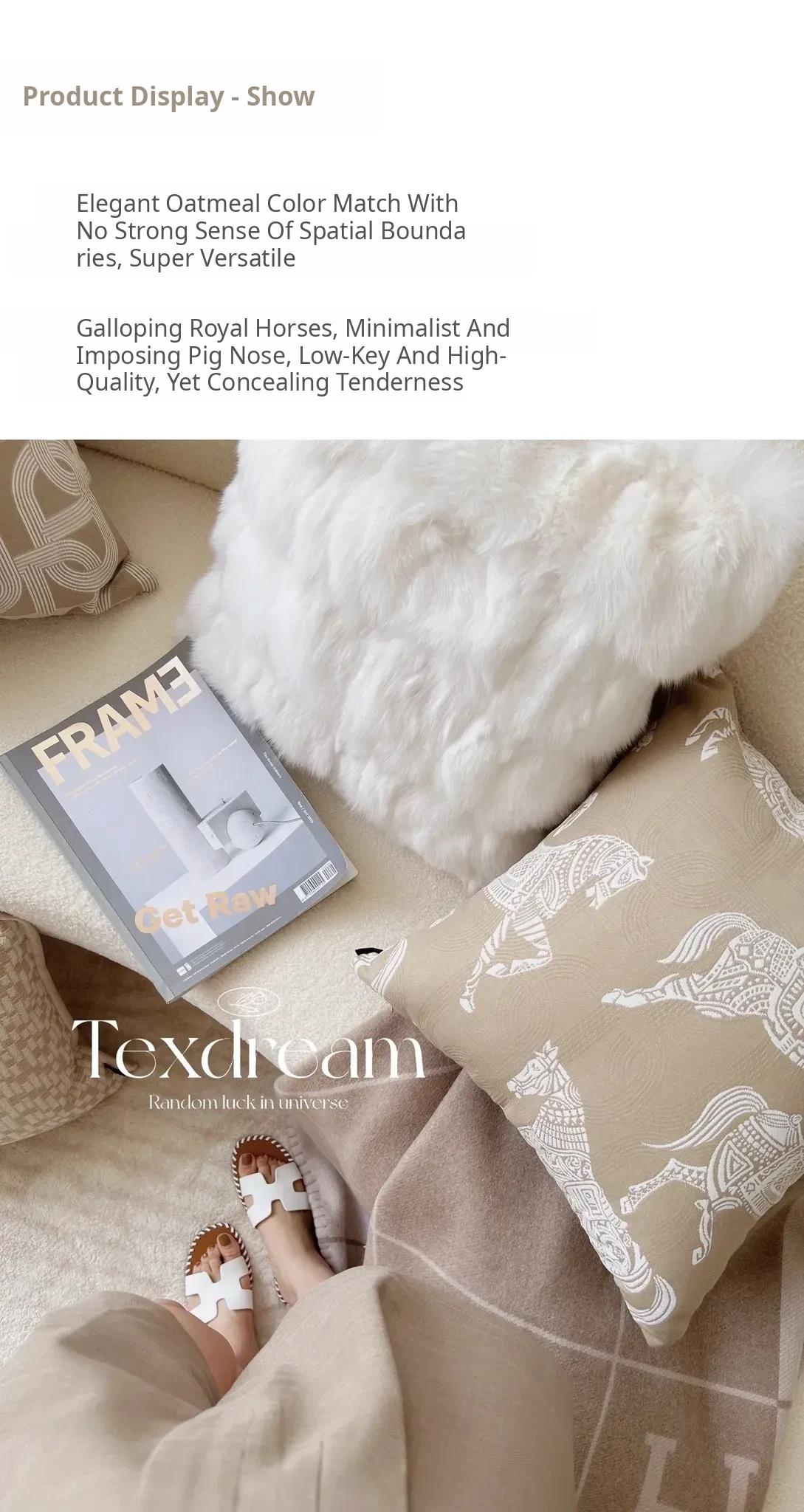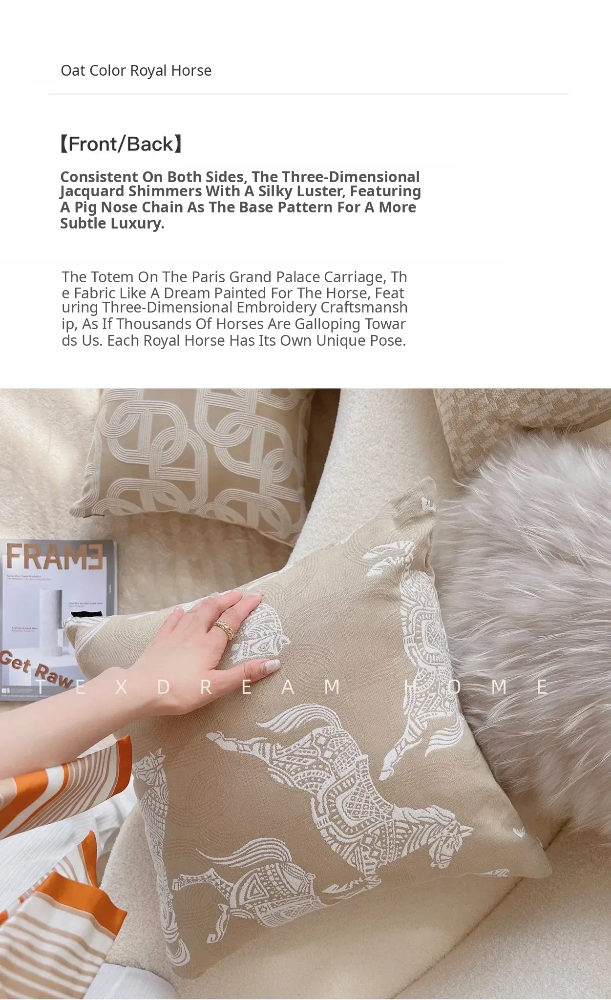 TEXDREAM Attitude Royal Horse Modern Luxury Throw Pillow for Sample Rooms and Airbnb – Elegant Cushion for Beds and Bay Windows