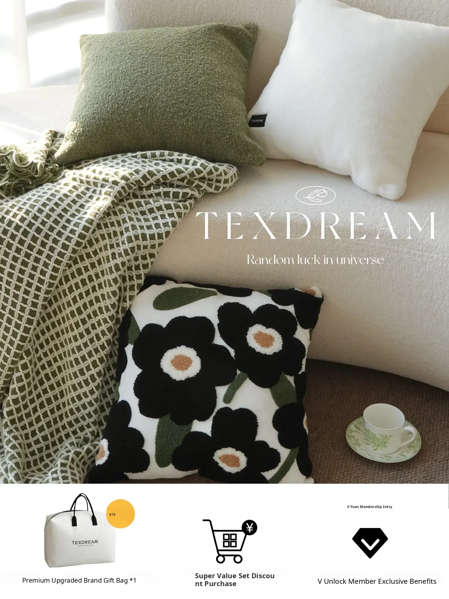 Square Pillow 17.72in*17.72in [Pillowcase + Feather Silk Cotton Pillow Core]