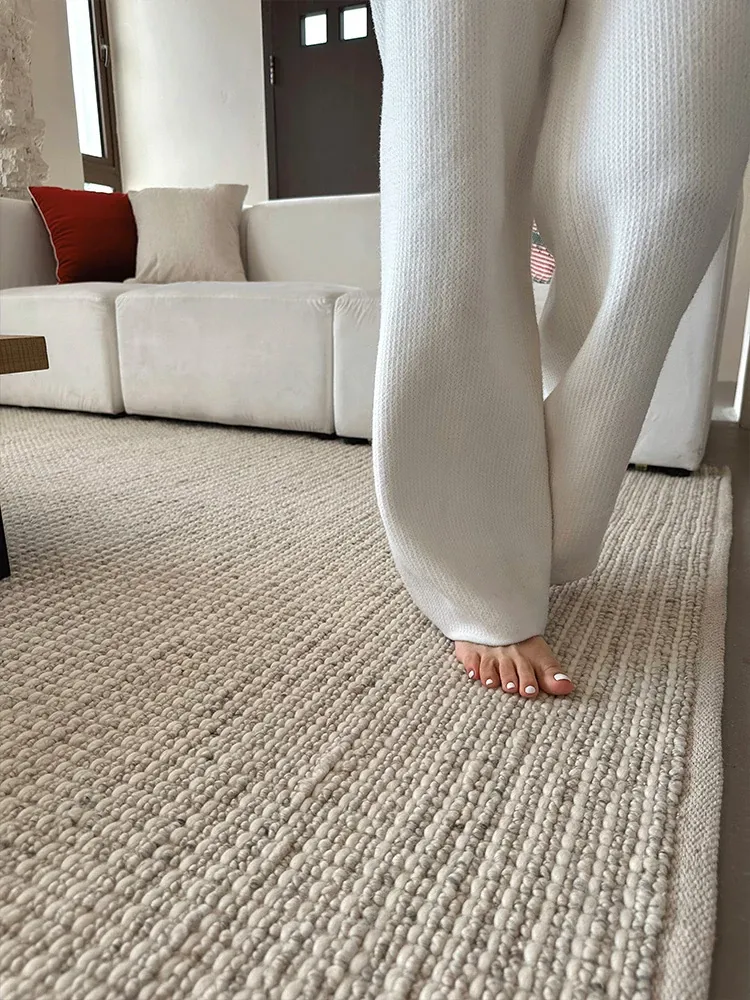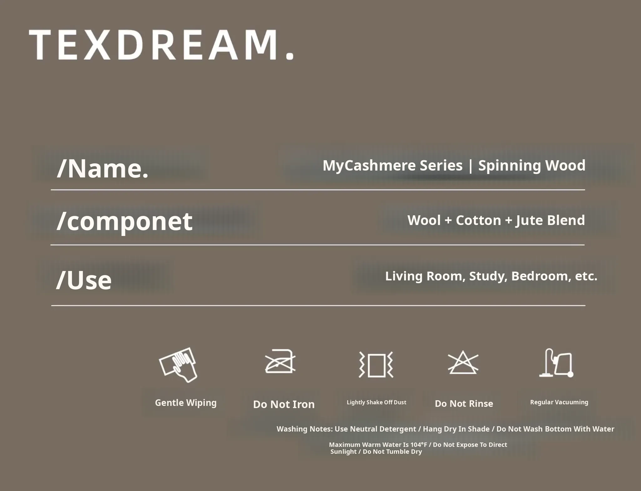 Texdream Attitude Spinning Wood Handmade Indian No-Glue Carpet - Wabi-Sabi Style Natural Texture Wool Area Rug for Living Room