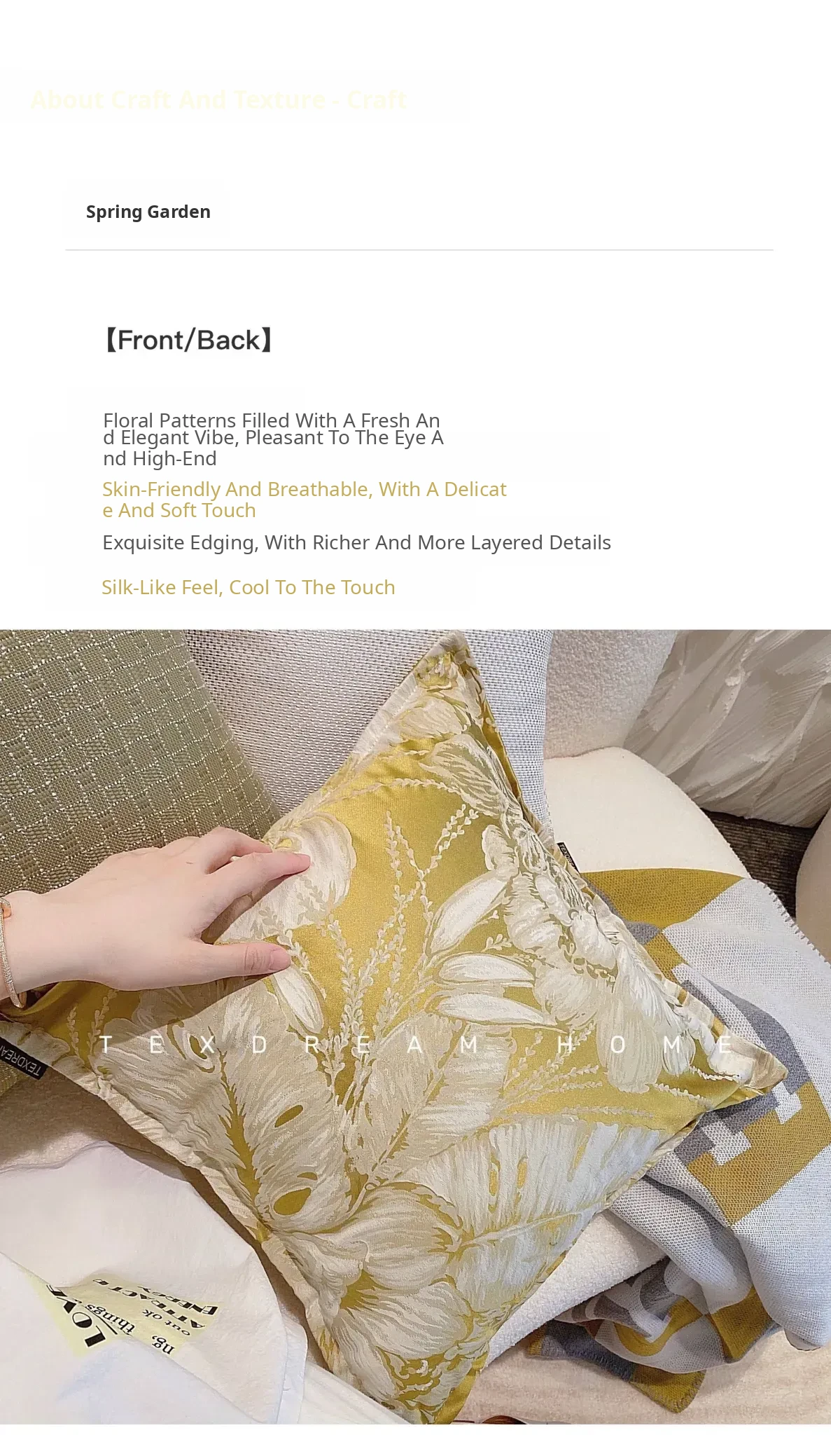 Texdream Attitude Spring Garden Pillow - French Country Style Cool Touch Cushion for Living Room Sofa - Perfect for Summer Comfort