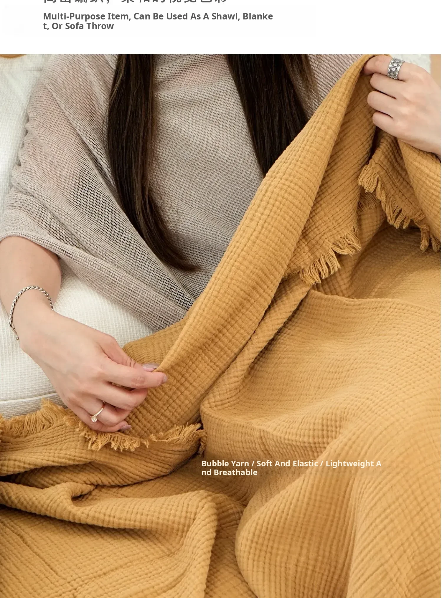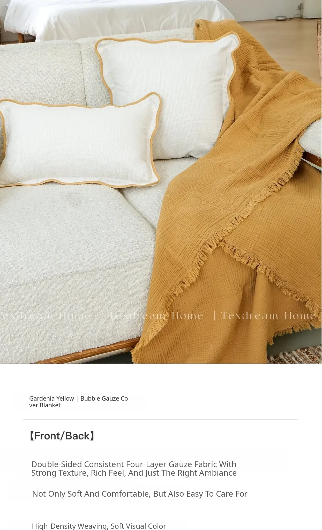 【Cotton Four-Layer Gauze Tassel Blanket| Yellow]