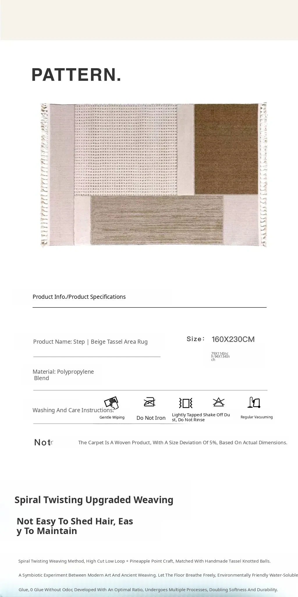 Footsteps|Beige Tassel Wool Carpet