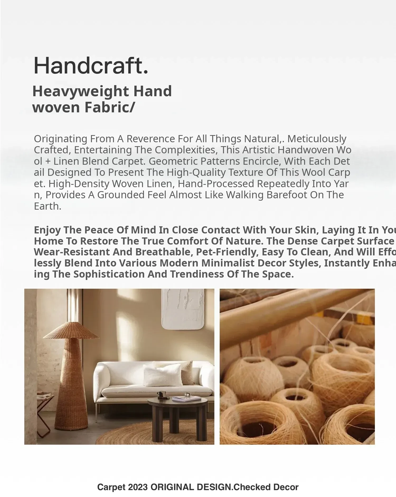 TEXDREAM Attitude Wabi-Sabi Style Wool Carpet - Elegant French Living Room & Bedroom Rug for Sofa and Bedside Decor