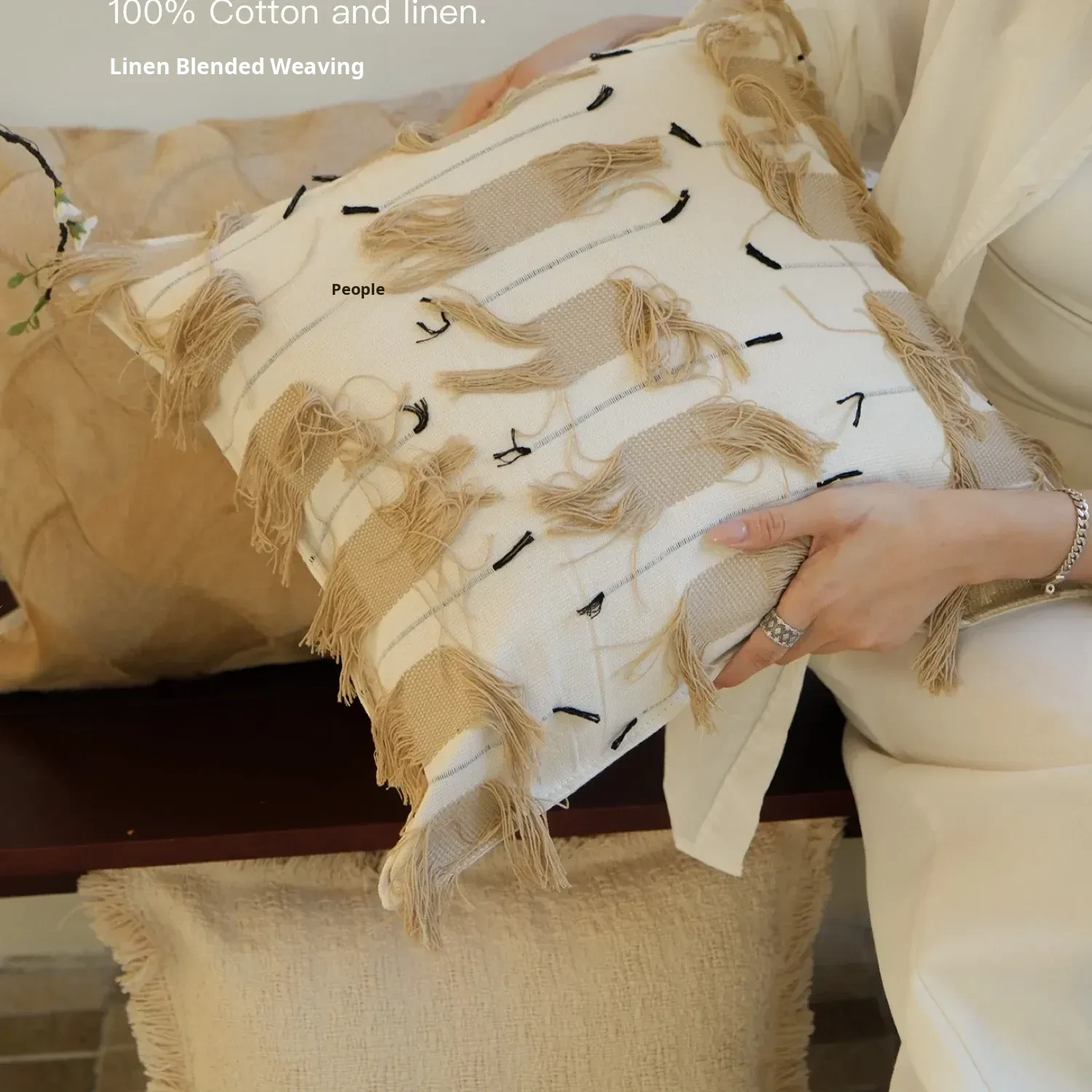 Beige textured throw pillow