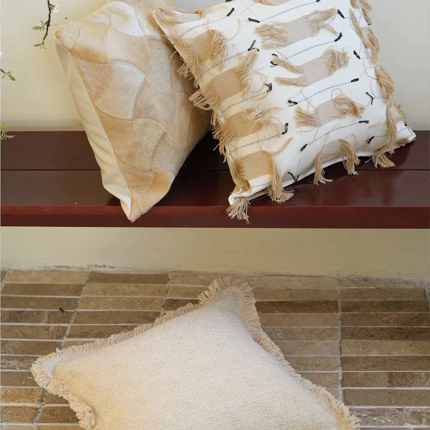 Wheat Spike Beige | Three-Piece Cushion Set