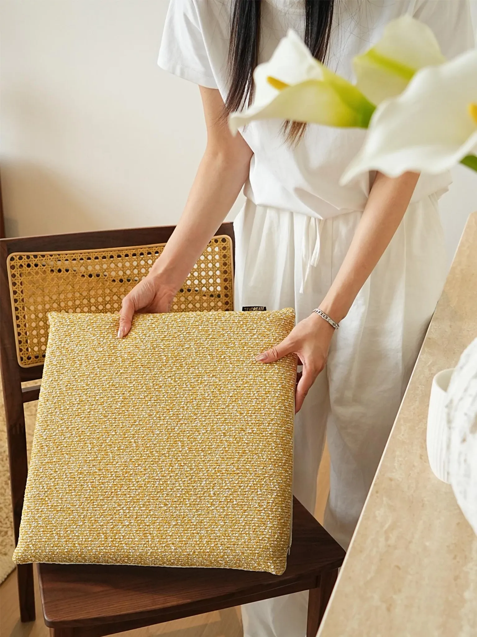 Texdream Attitude Yellow Series Minimalist Memory Foam Seat Cushion - Removable Dining Chair Pad & Window Seat Cushion for Ultimate Comfort and Style