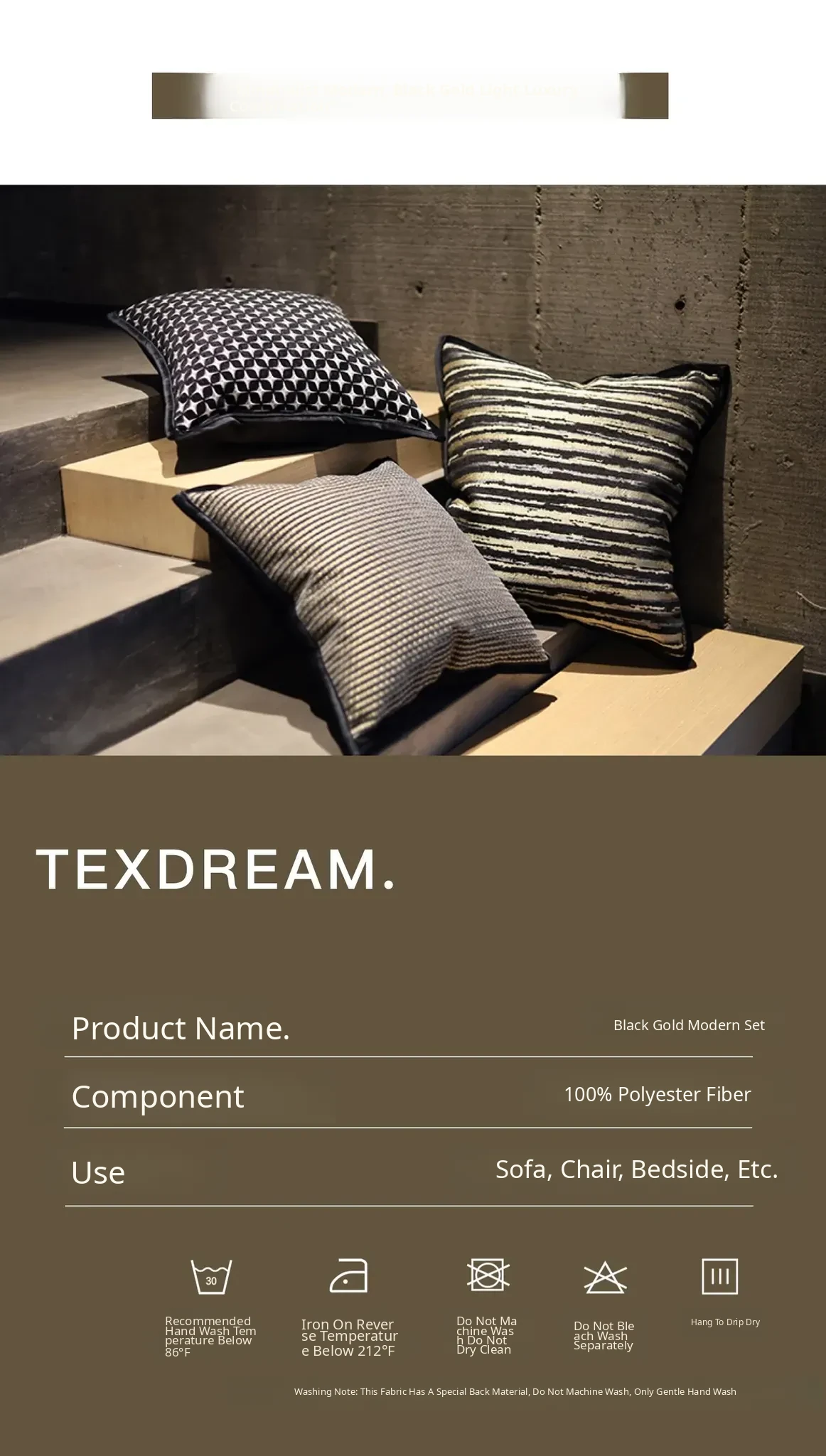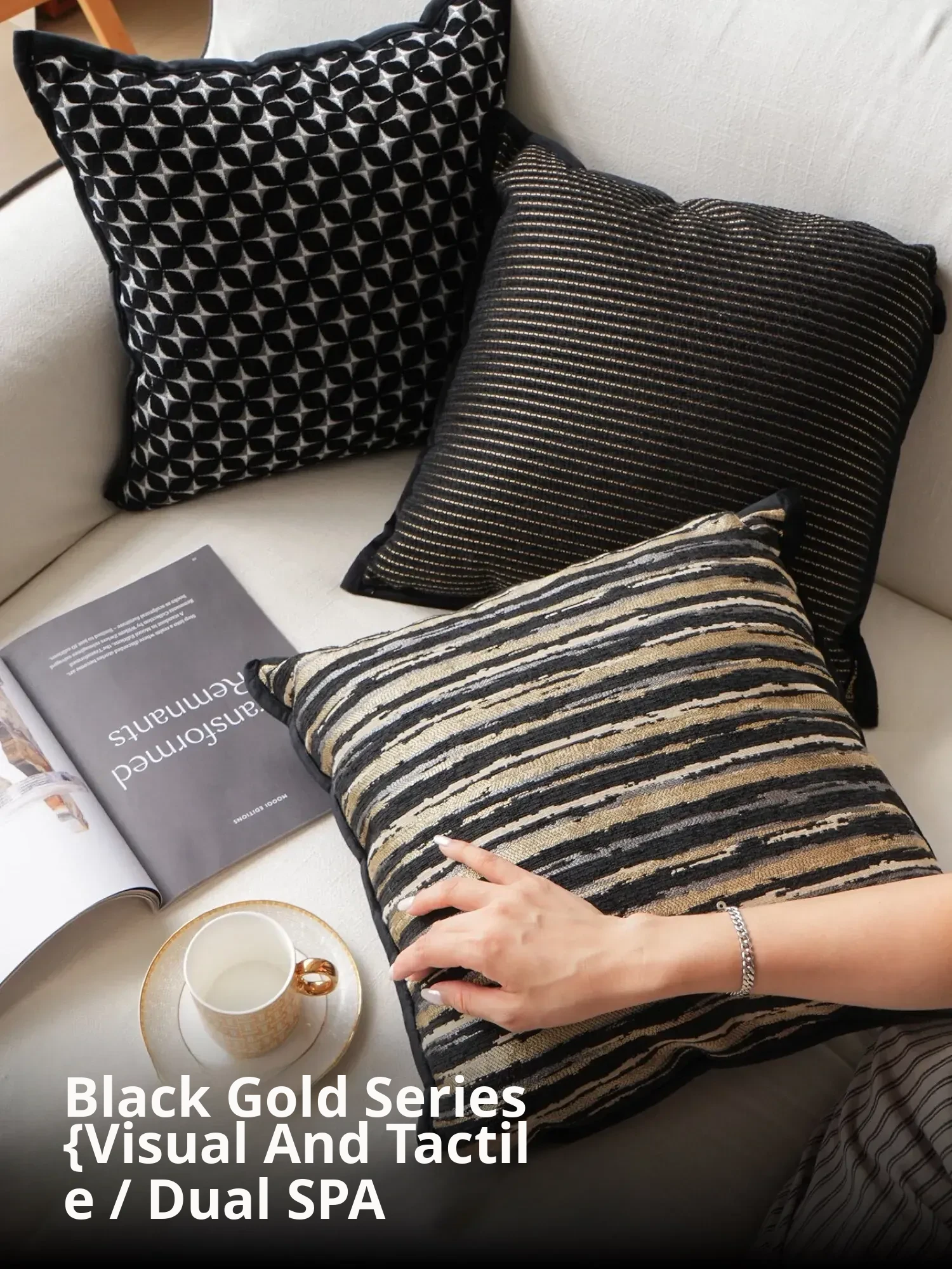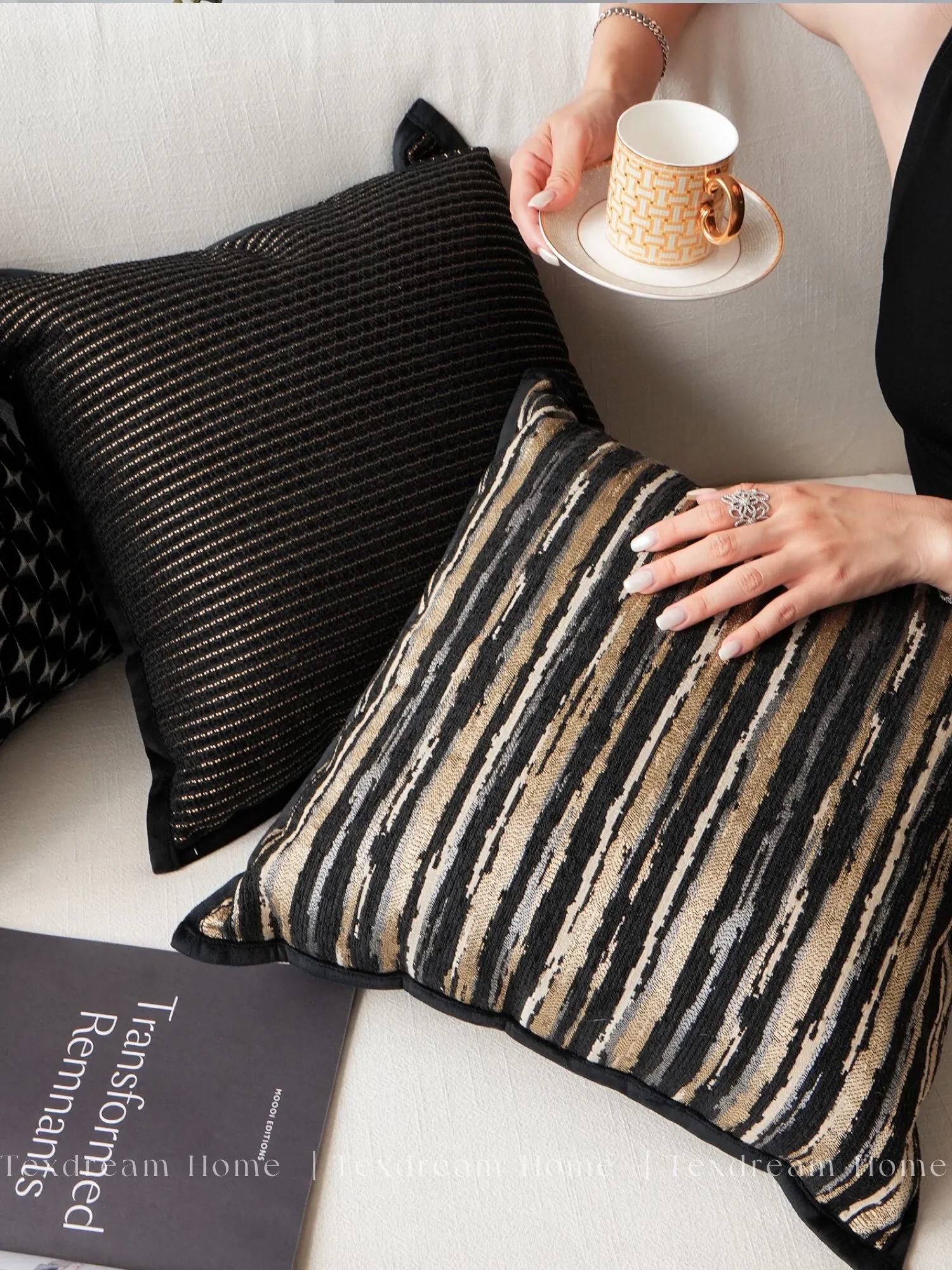 TEXDREAM Black Gold Collection - Luxurious Modern Minimalist Throw Pillow Covers for Sofa and Living Room, Removable and Washable