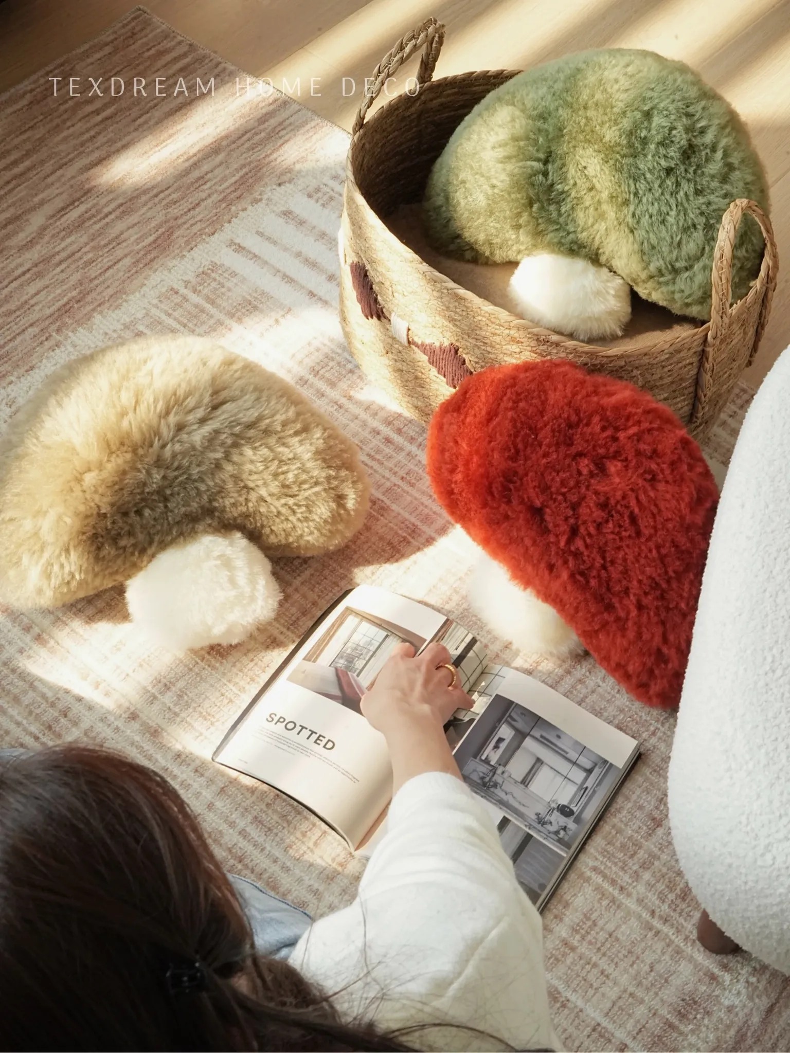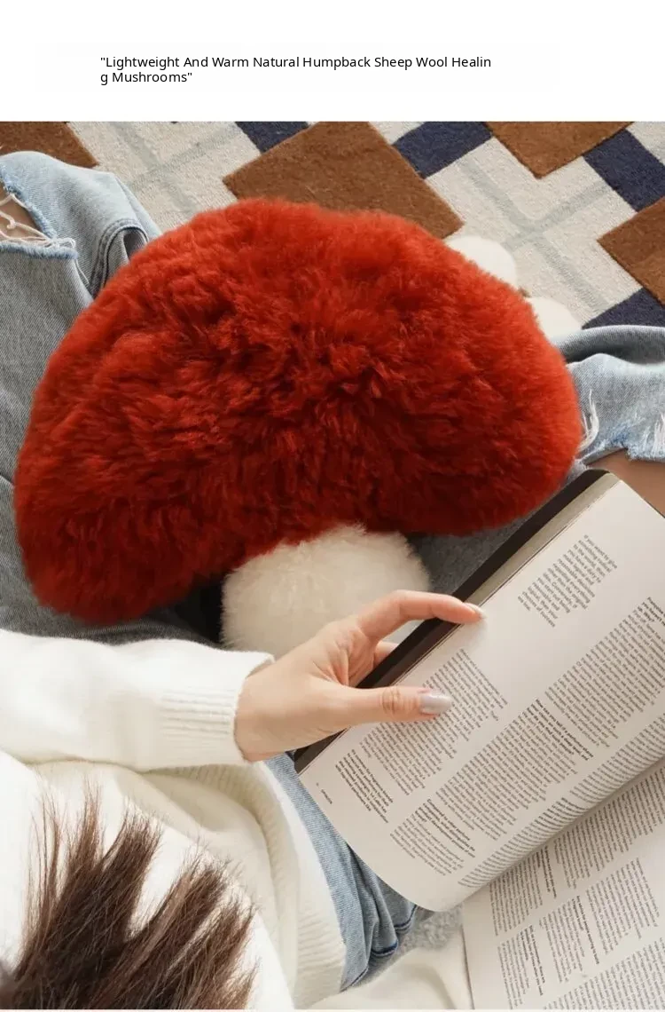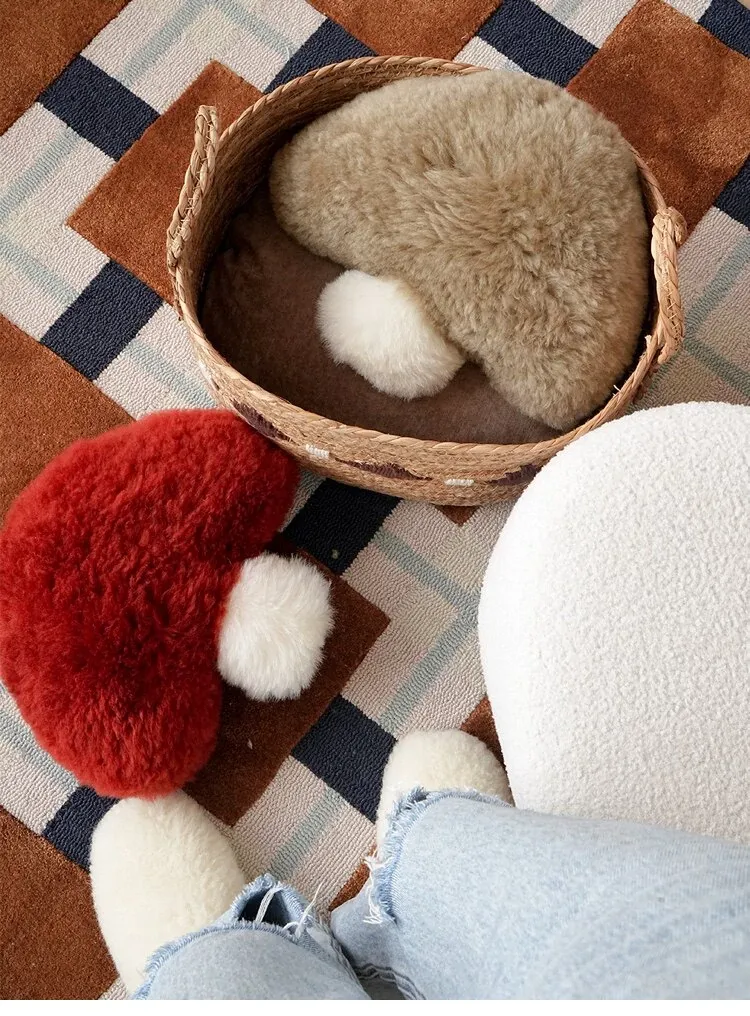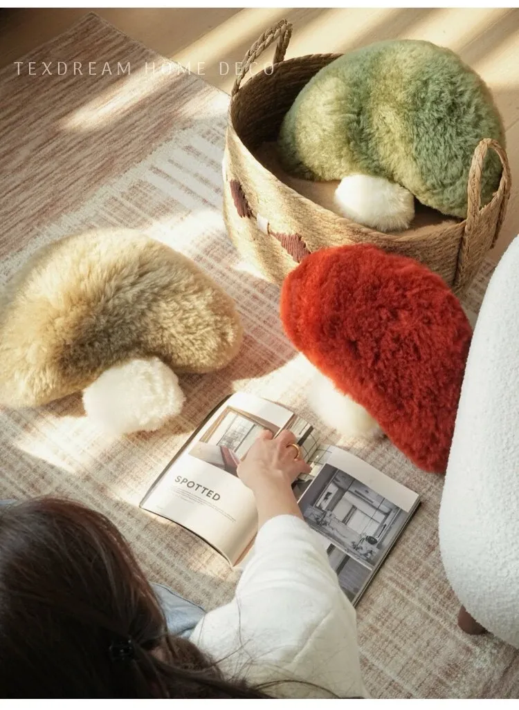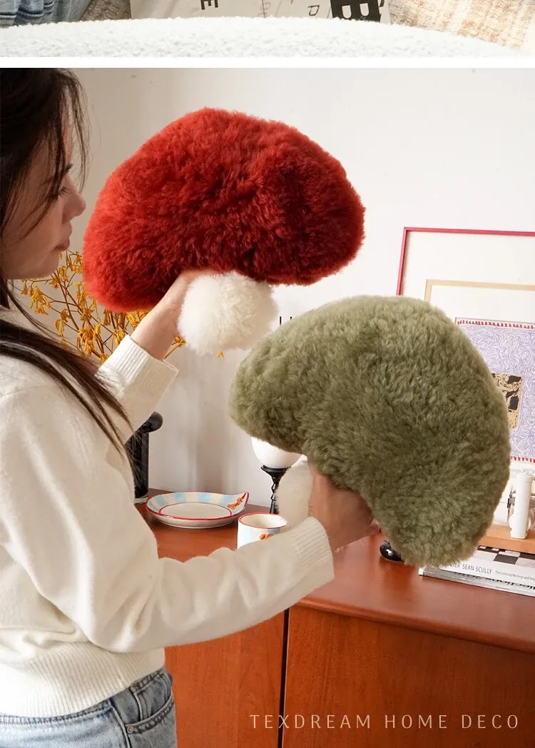 TEXDREAM Cute Plush Mushroom Pillow - Cozy Wool Toy for Healing & Relaxation, Perfect for Sofa & Window Decor