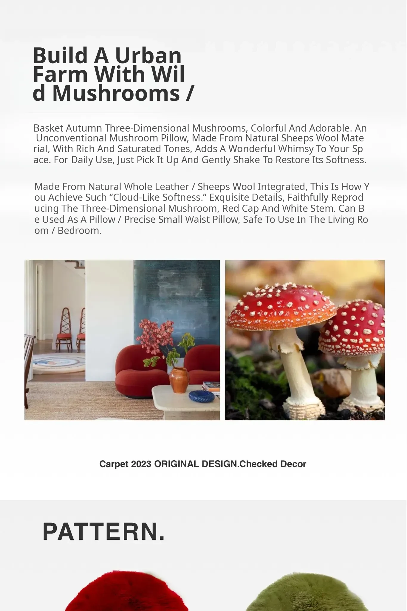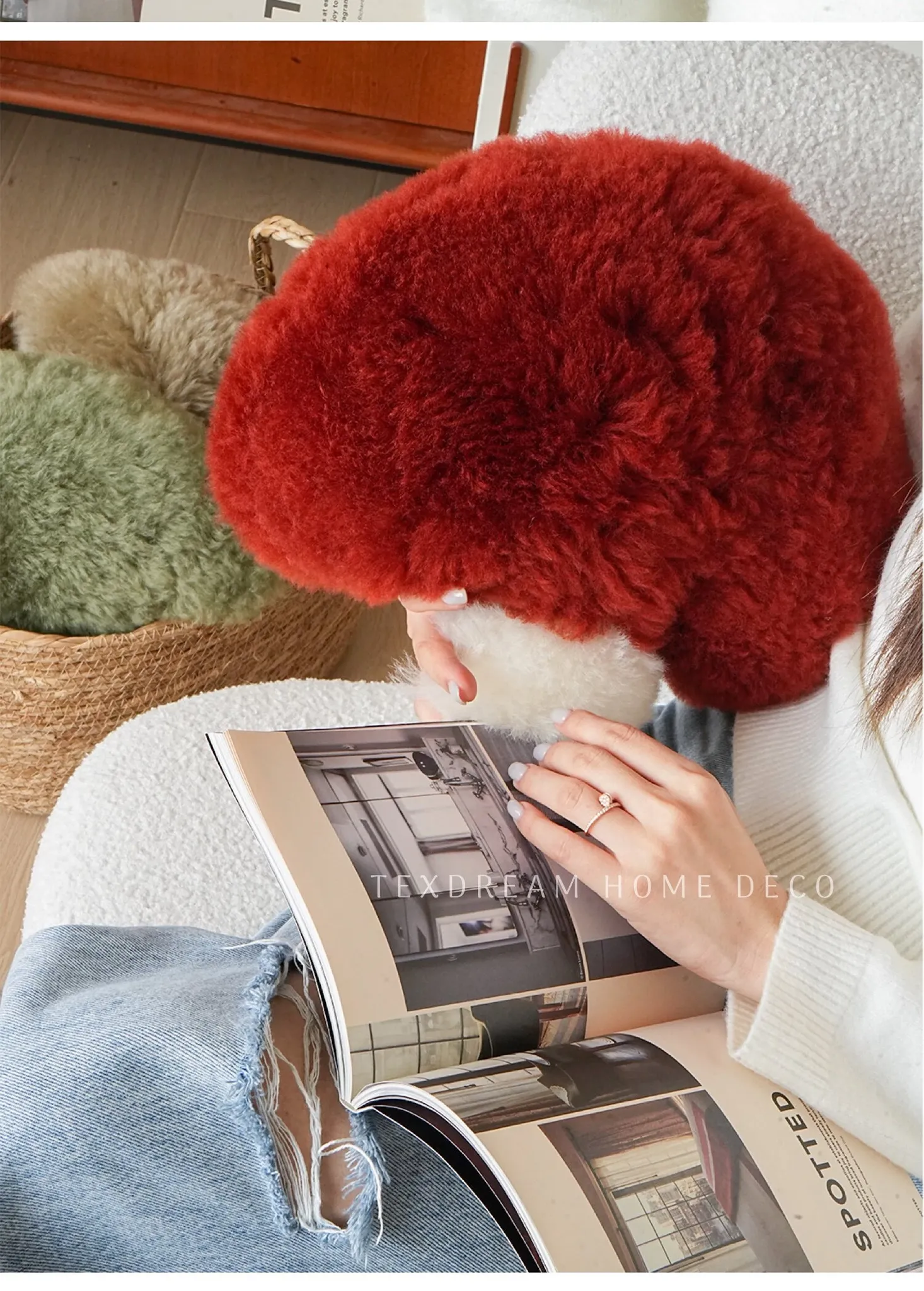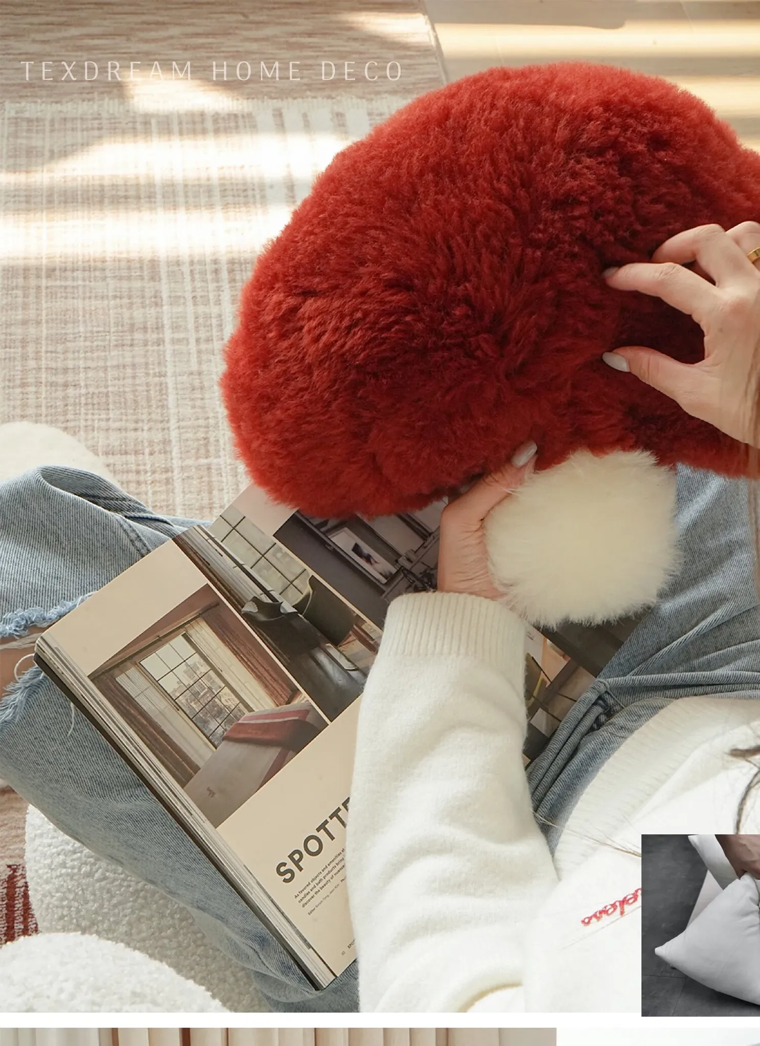 TEXDREAM Cute Plush Mushroom Pillow - Cozy Wool Toy for Healing & Relaxation, Perfect for Sofa & Window Decor
