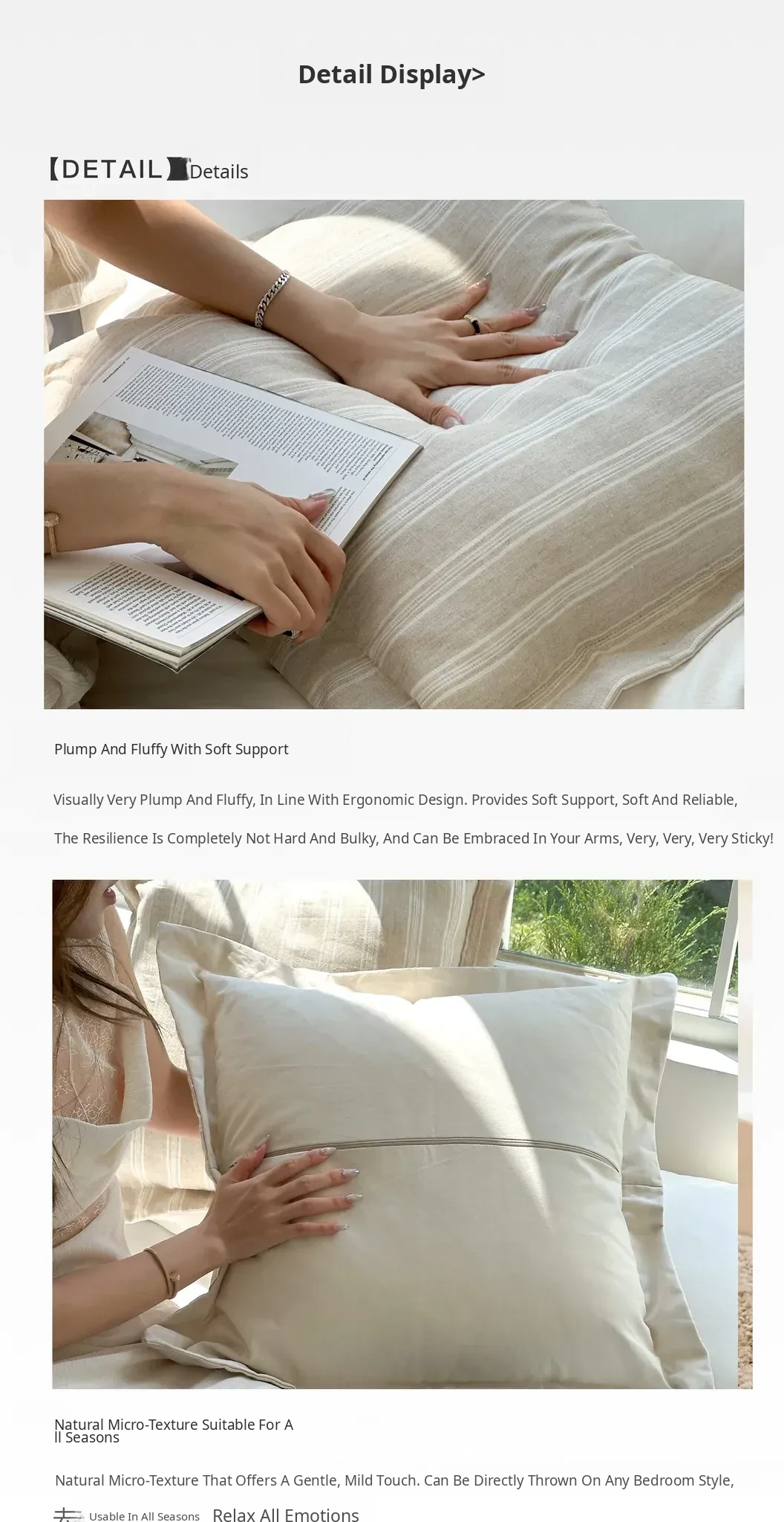 Total Length: 25.59in*25.59in [Pillowcase + Feather Silk Cotton Pillow Core]