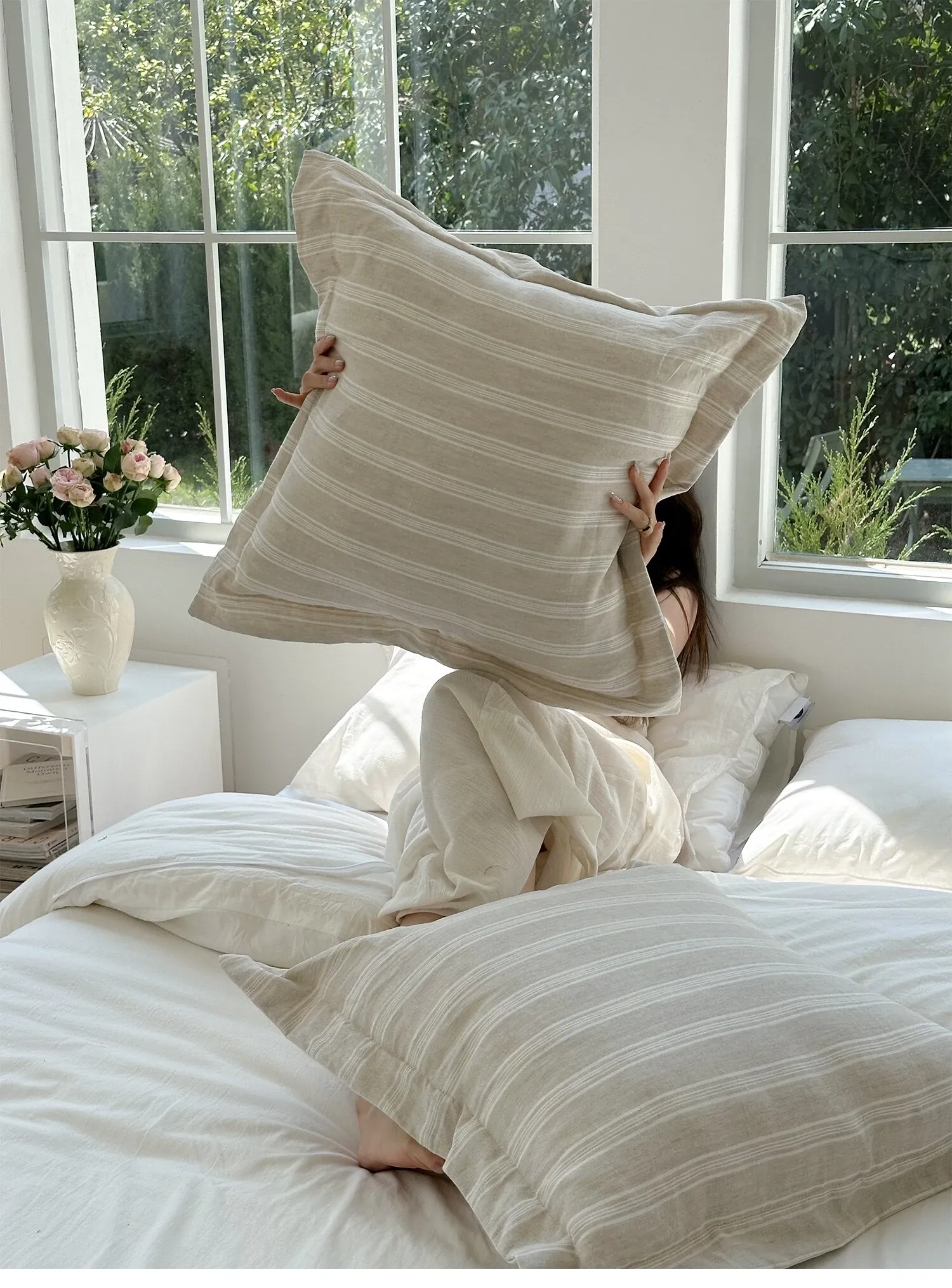 [Linen Large Pillow-Stripes]