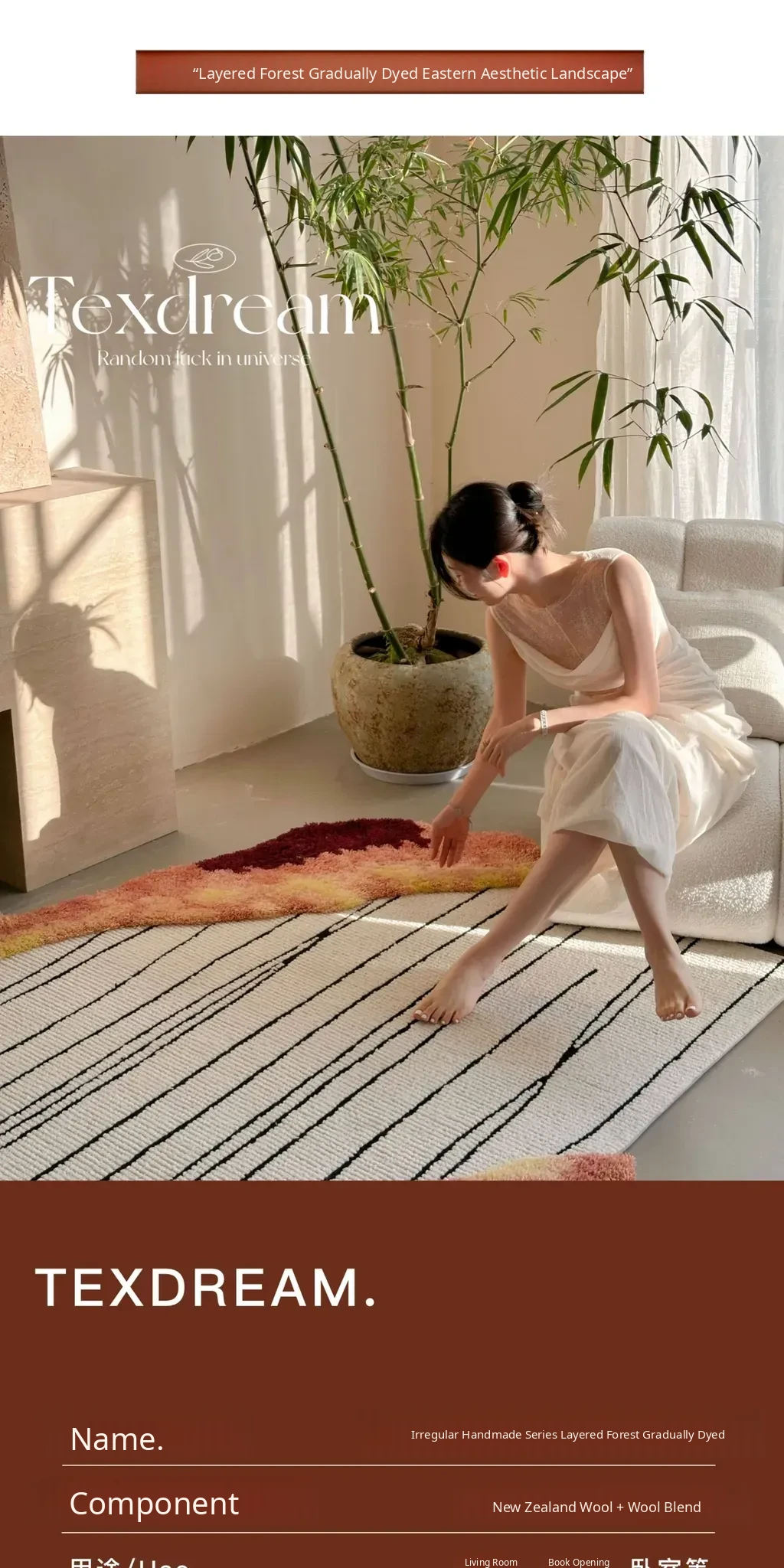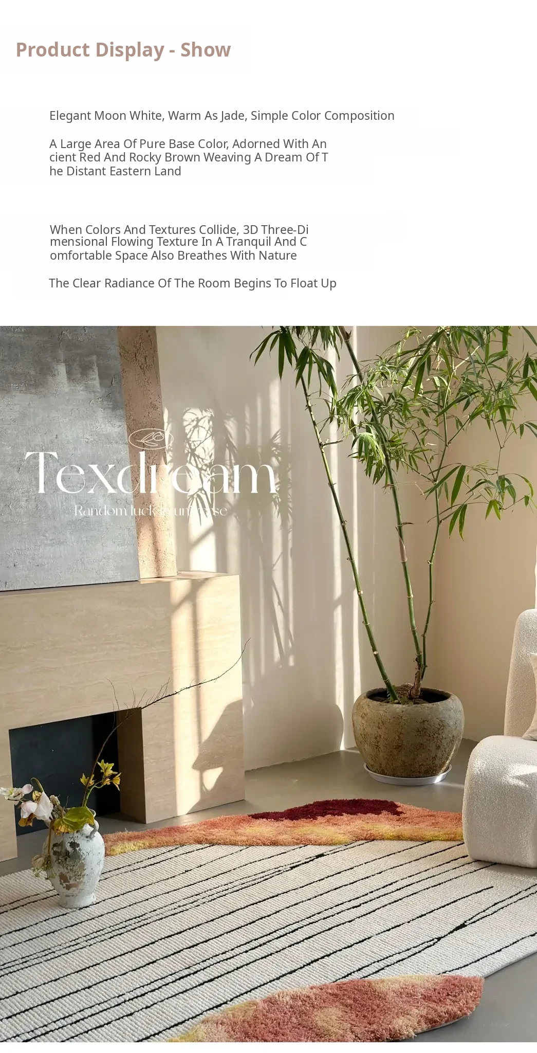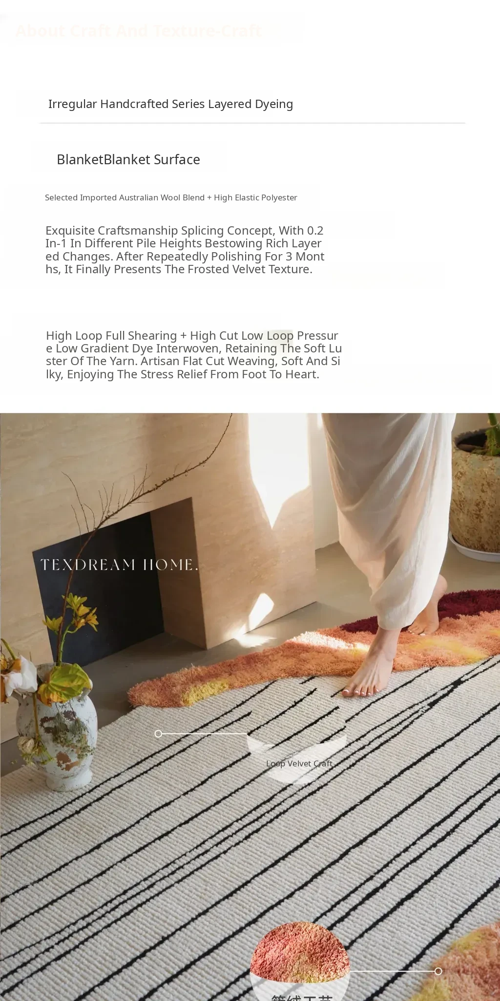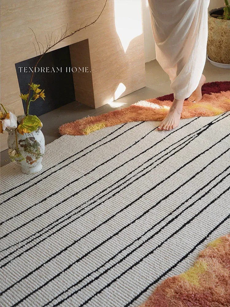 Texdream French Luxury Modern Wool Area Rug - Elegant Ombre Design for Living Room and High-End Villa Bedroom Décor