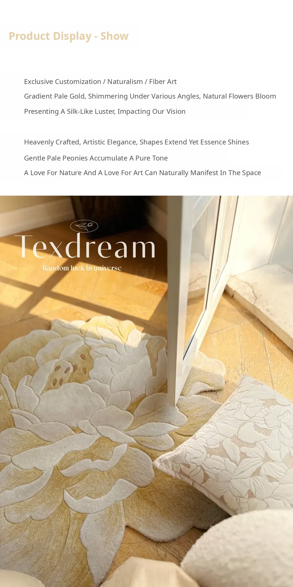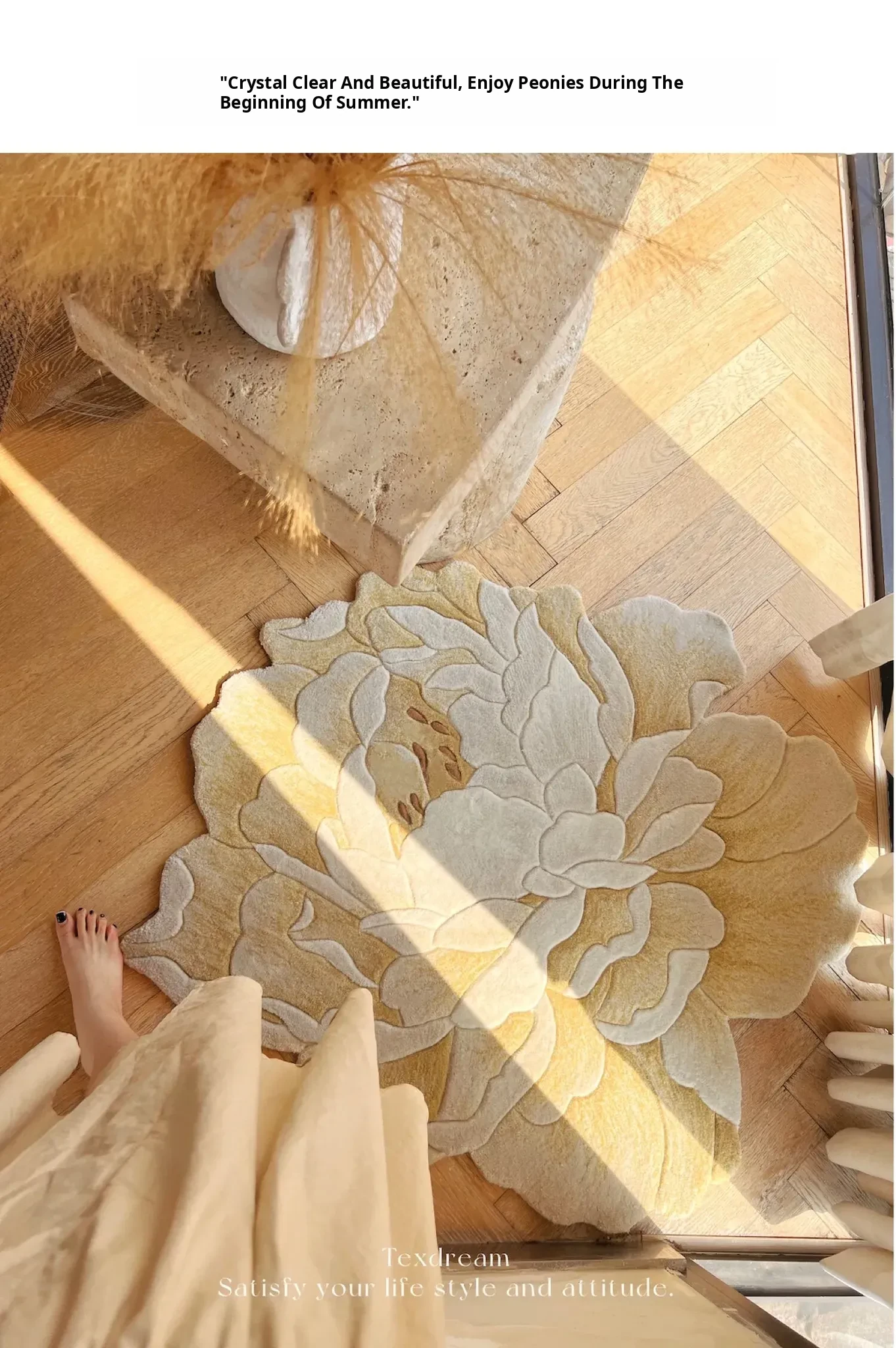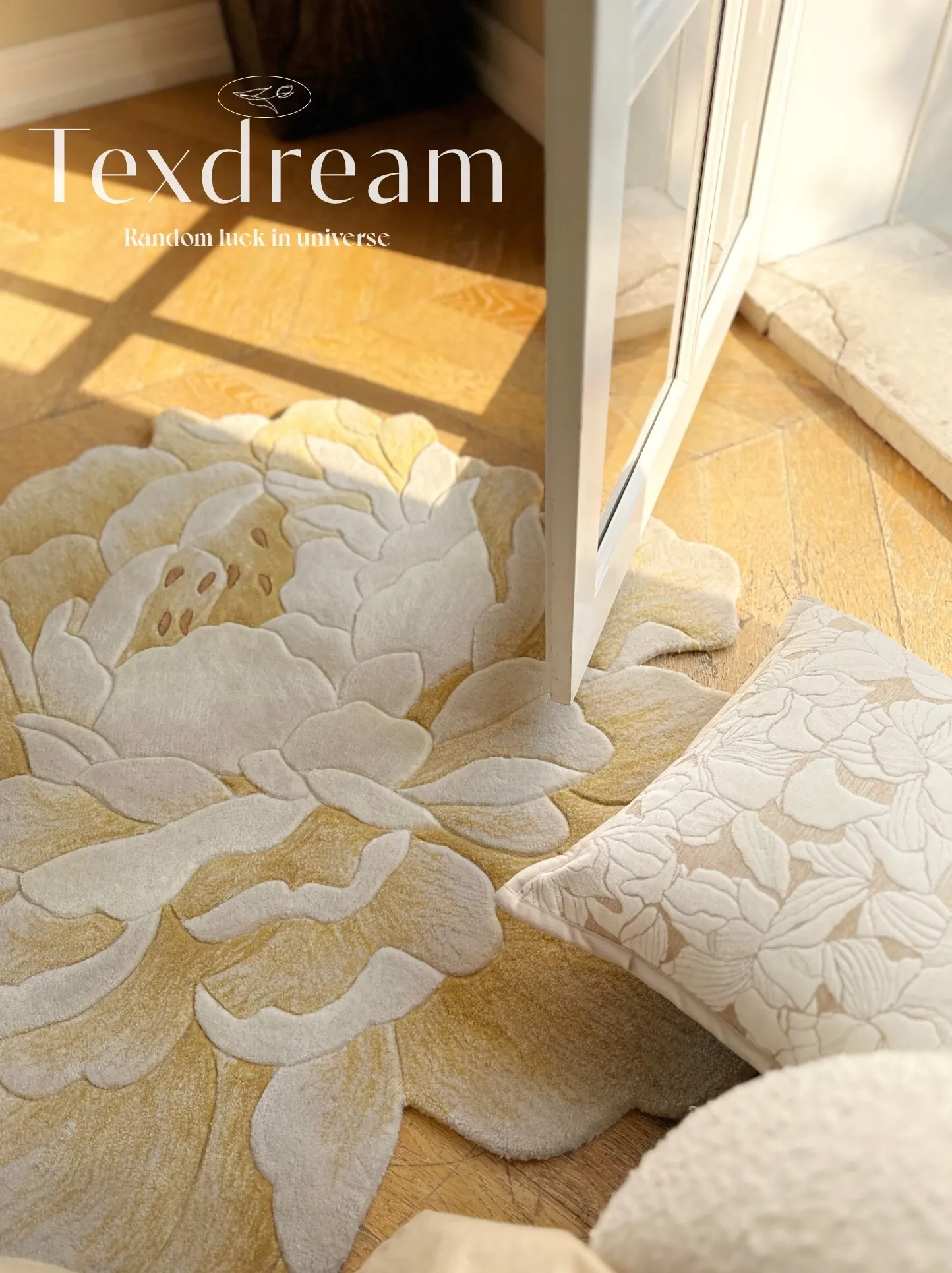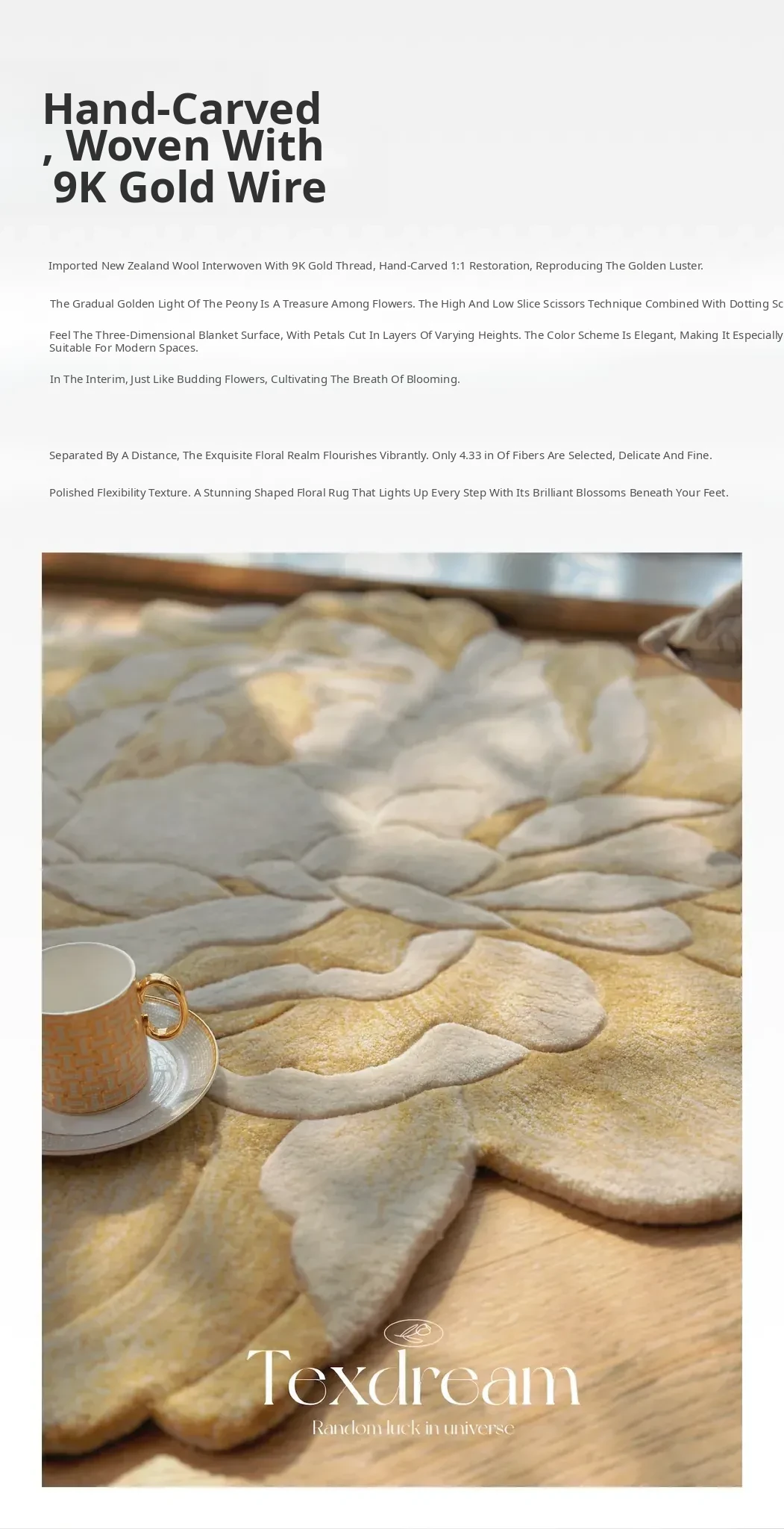 Texdream Golden Peony Handcrafted New Zealand Wool Rug - Luxurious and Elegant Carpet for Living Room and Bedroom, Perfect for Bedside Use