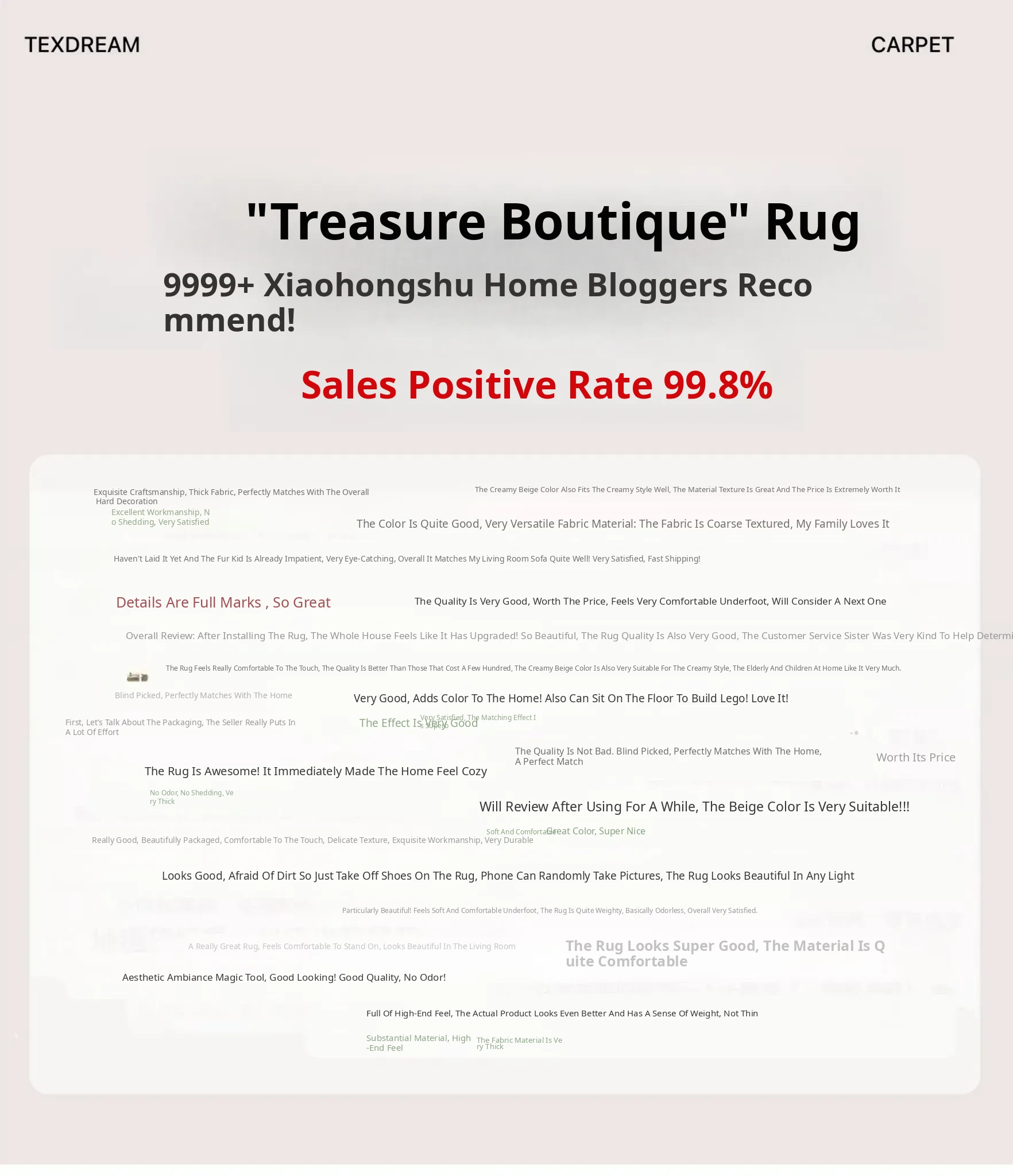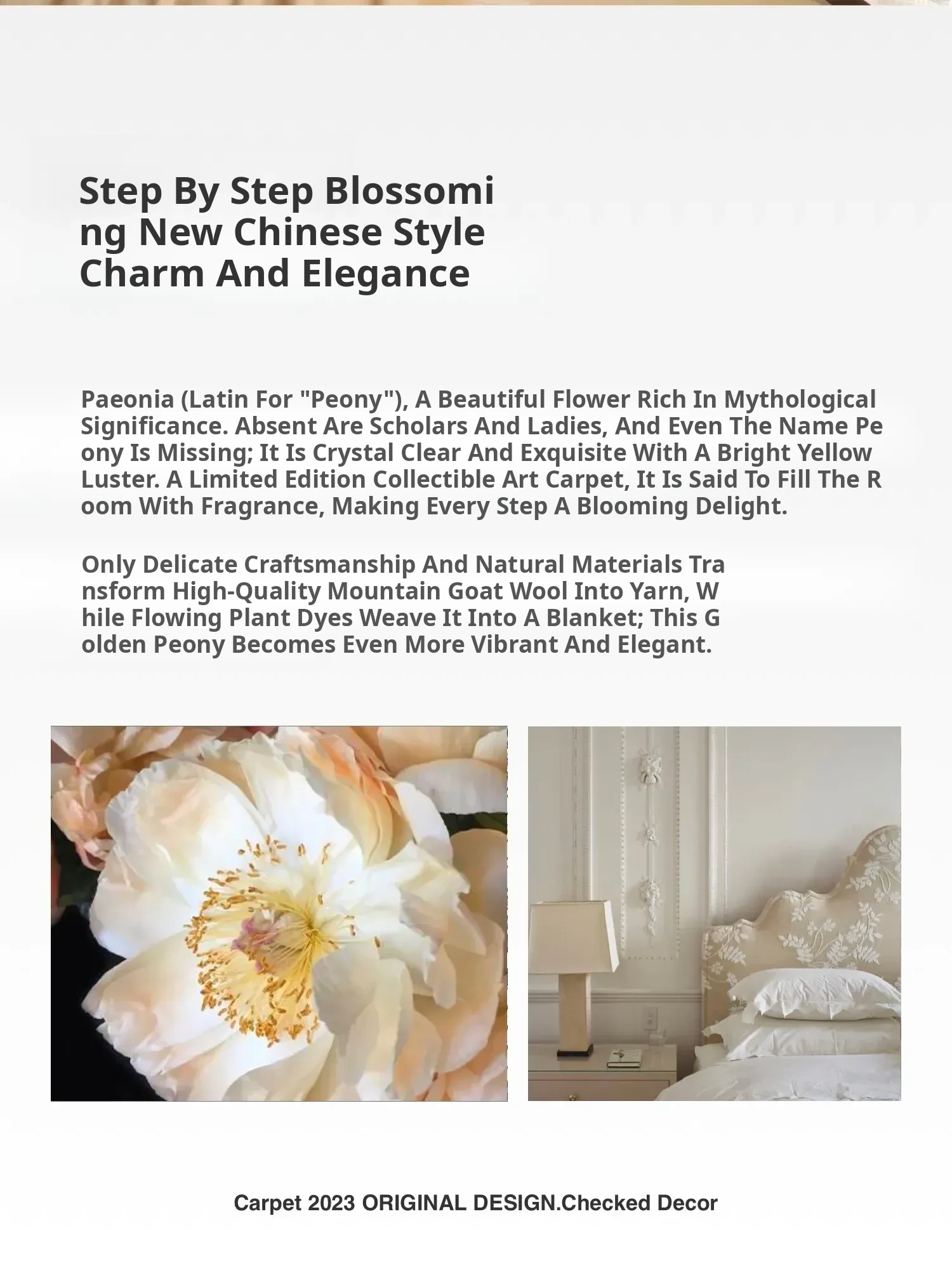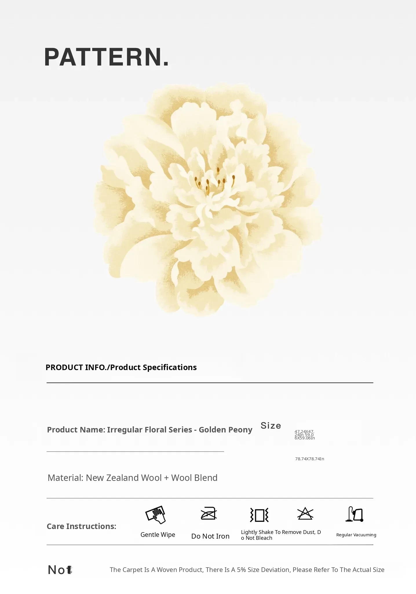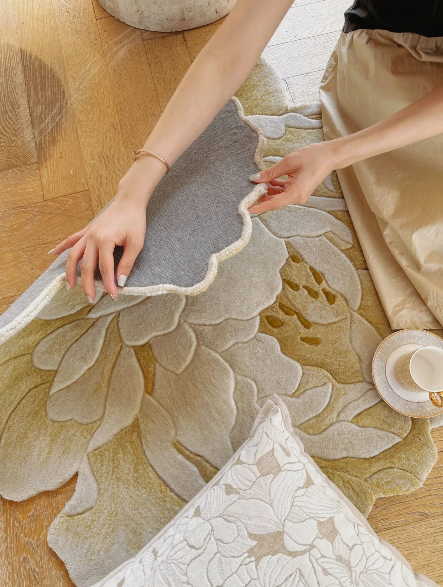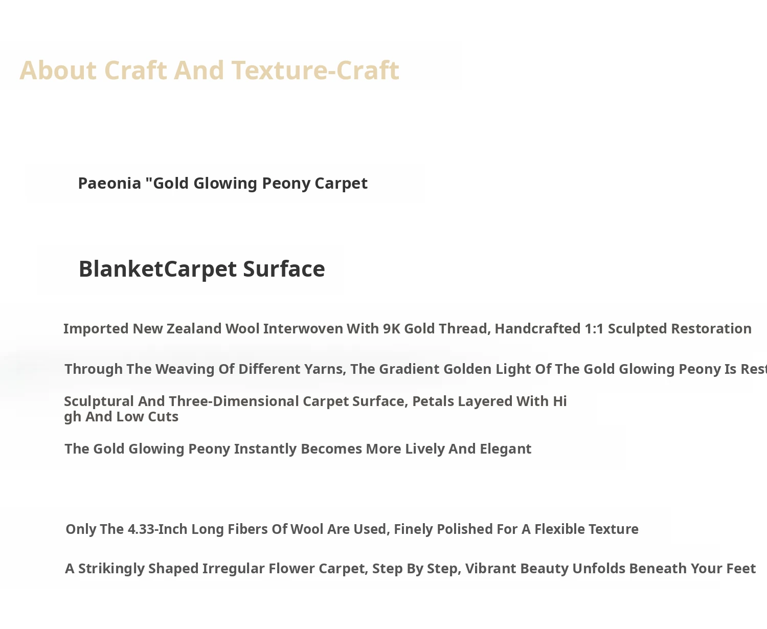 Texdream Golden Peony Handcrafted New Zealand Wool Rug - Luxurious and Elegant Carpet for Living Room and Bedroom, Perfect for Bedside Use