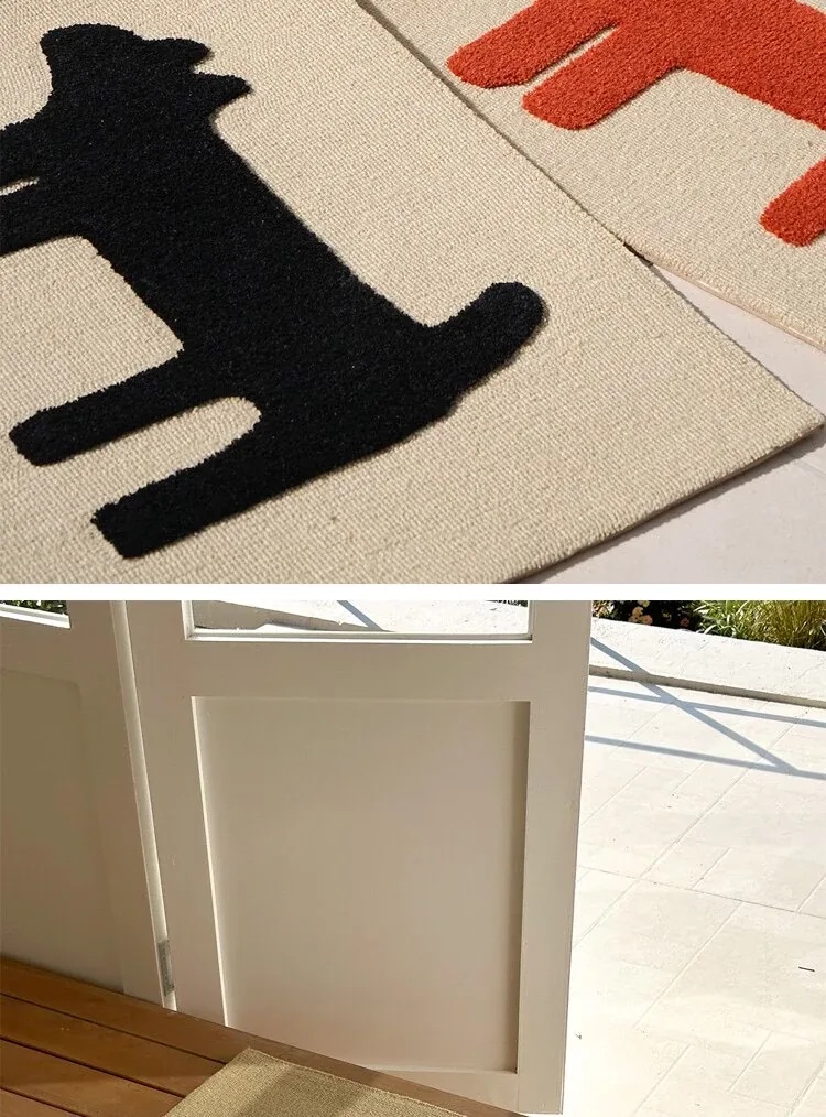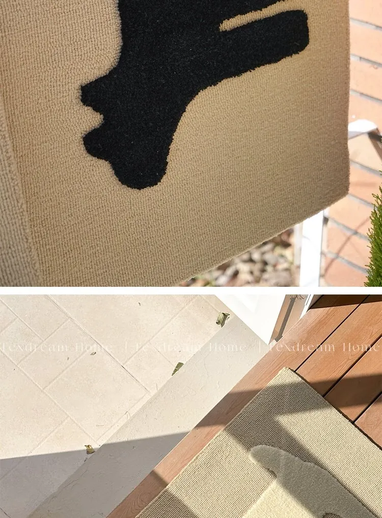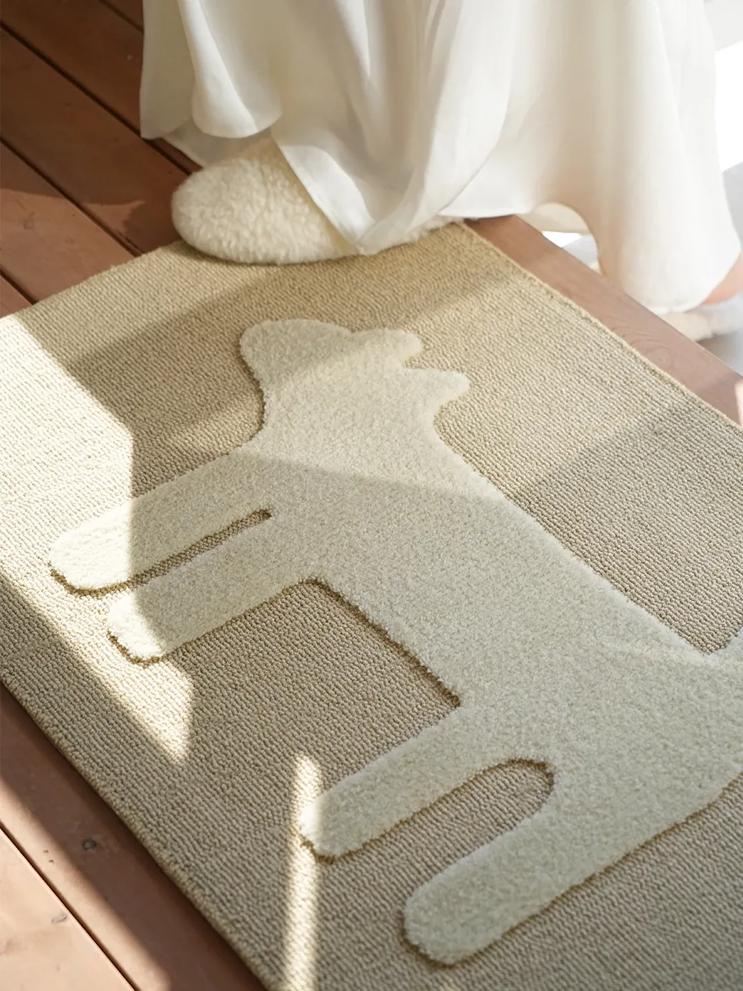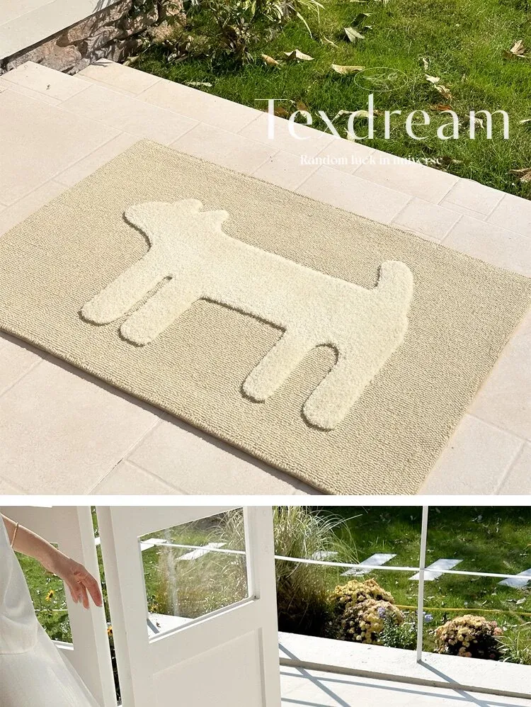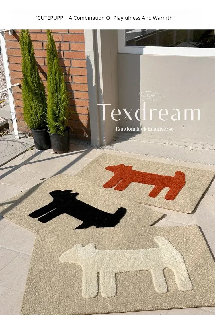 Texdream Happy Puppy Entrance Mat - Cozy Wool Area Rug for Bedroom, Cute Cream Aesthetic Floor Mat, Perfect for Home Decor