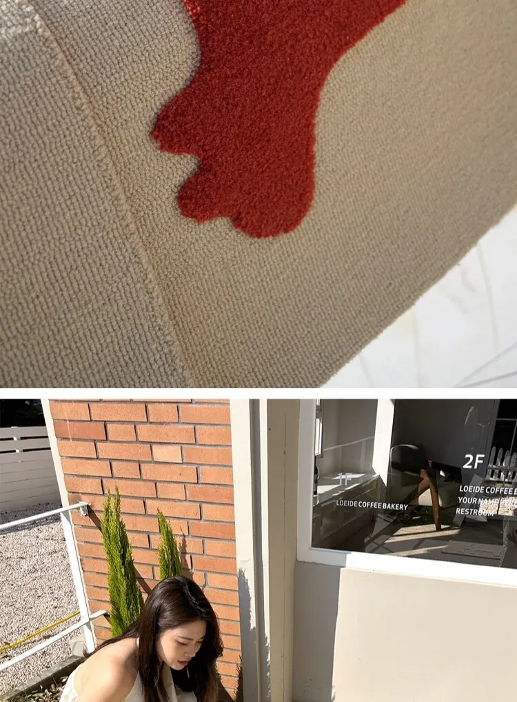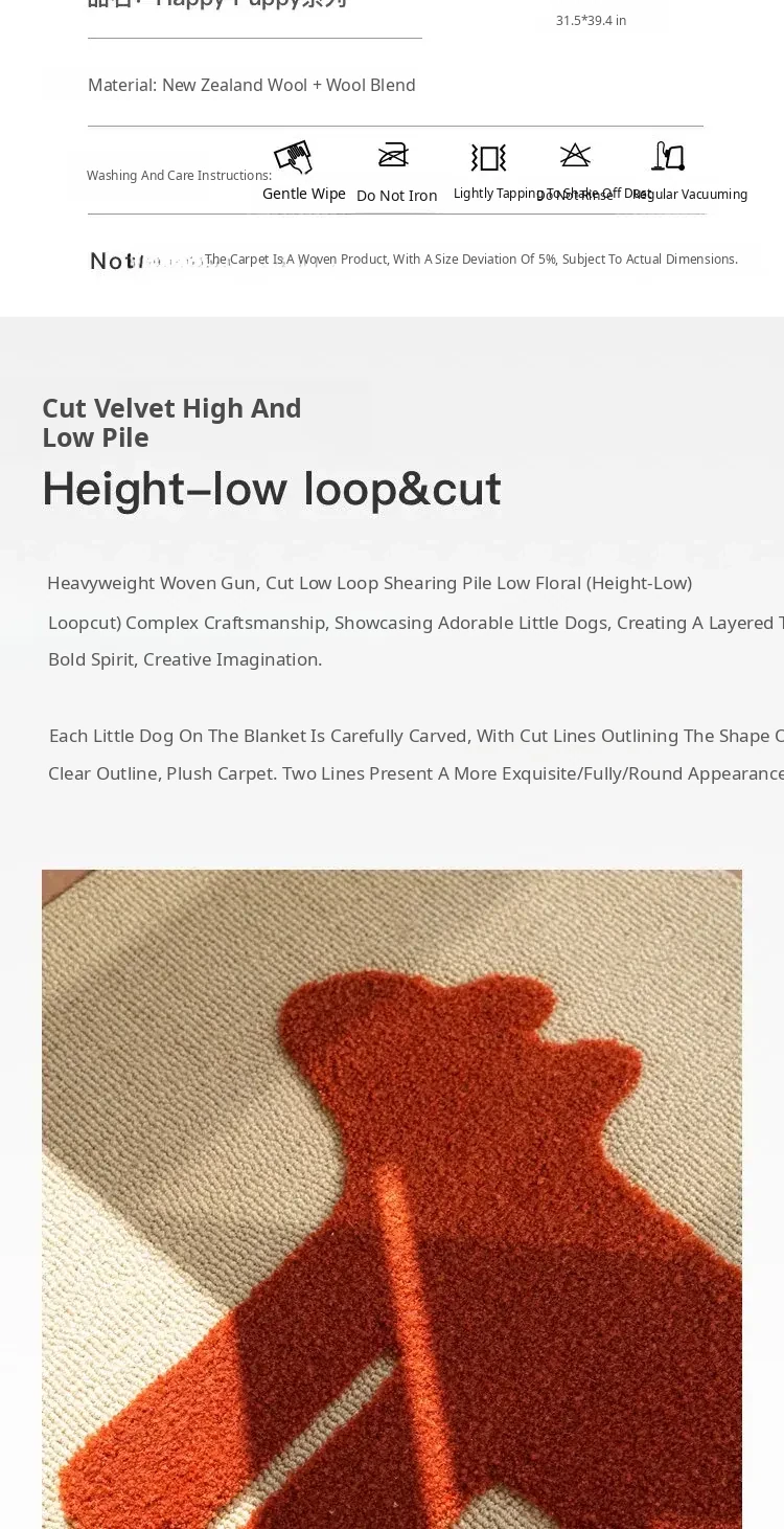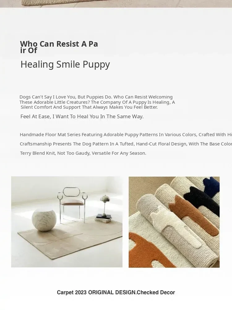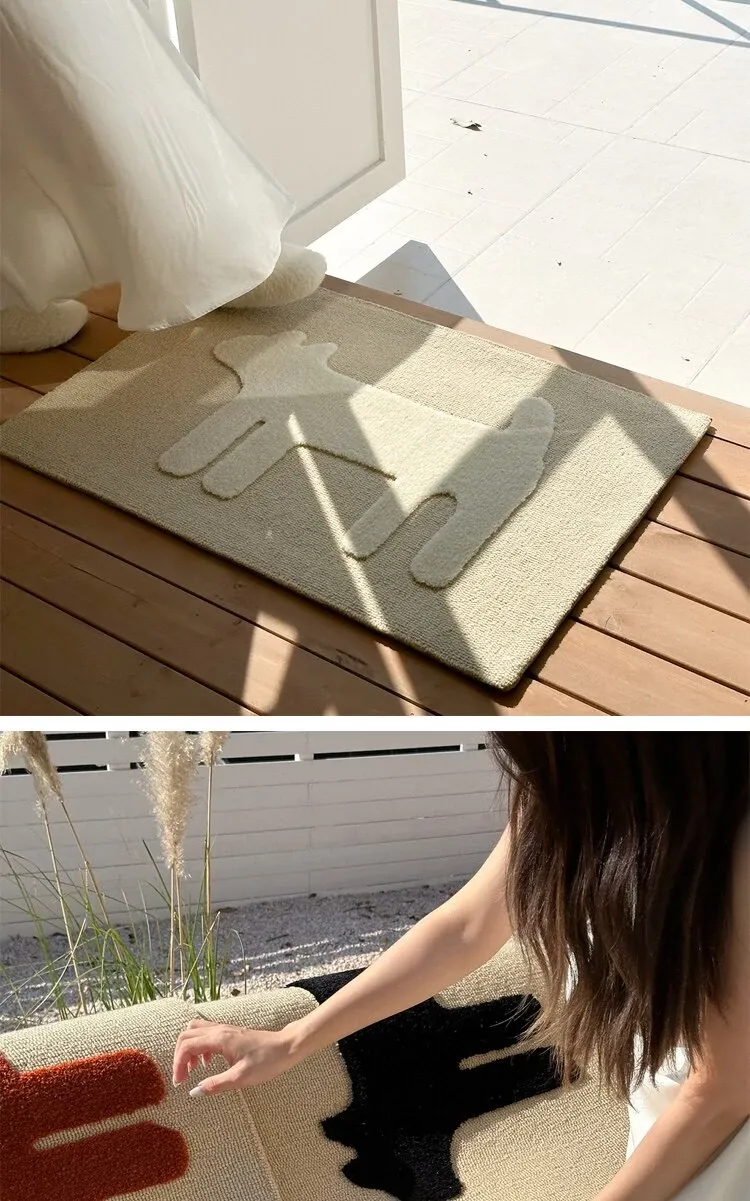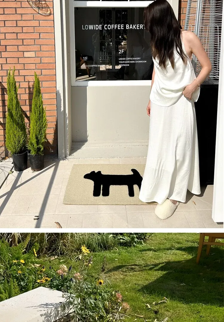 Texdream Happy Puppy Entrance Mat - Cozy Wool Area Rug for Bedroom, Cute Cream Aesthetic Floor Mat, Perfect for Home Decor
