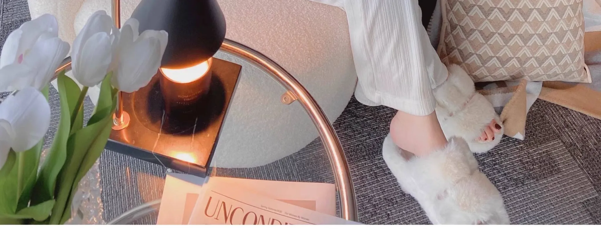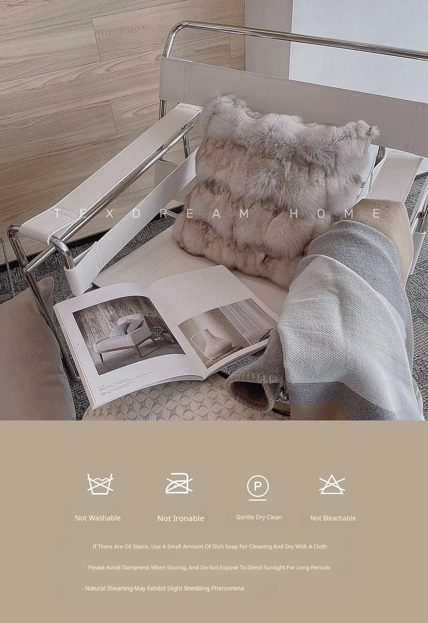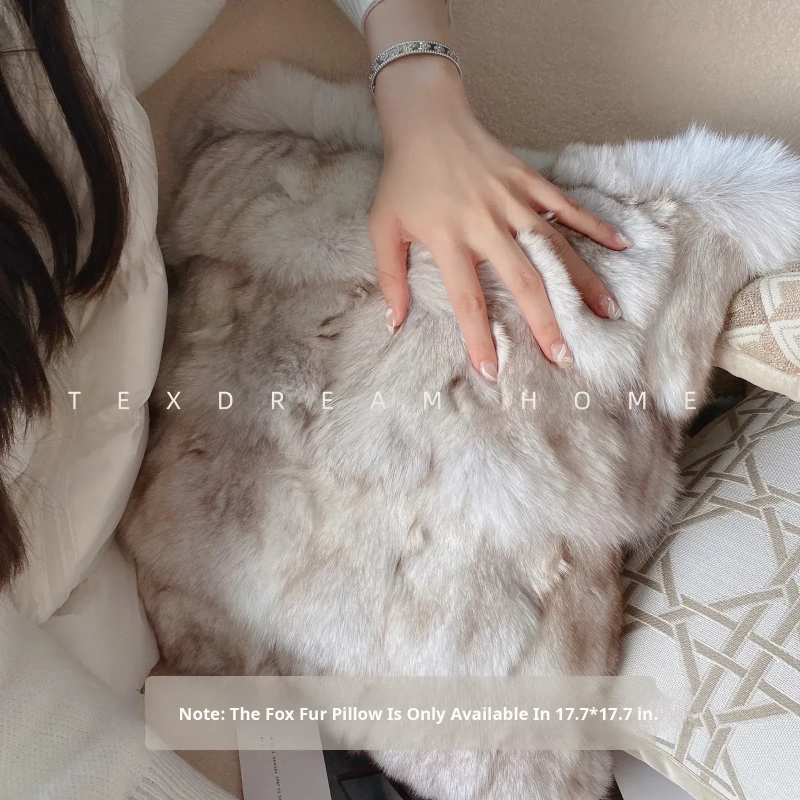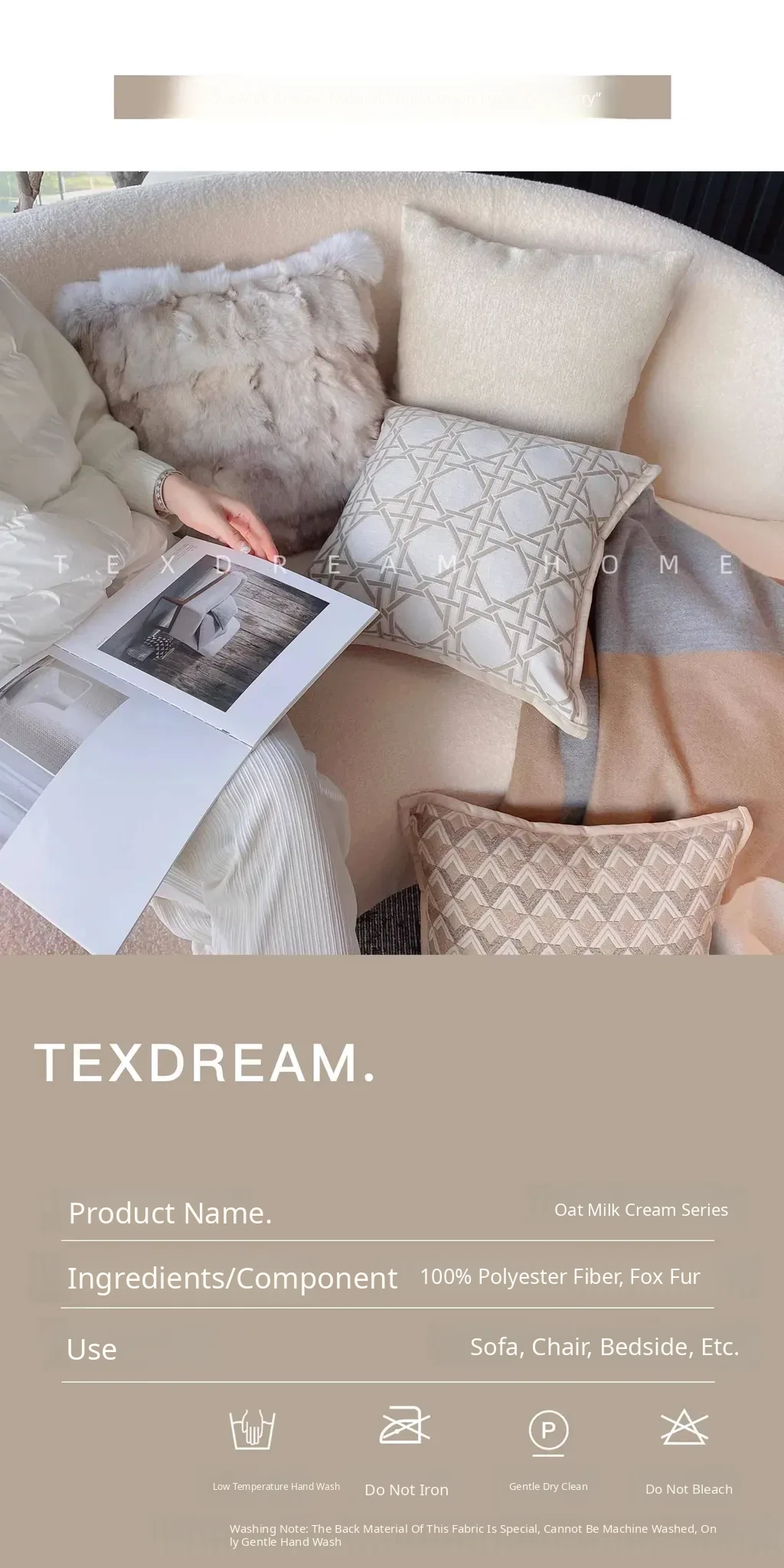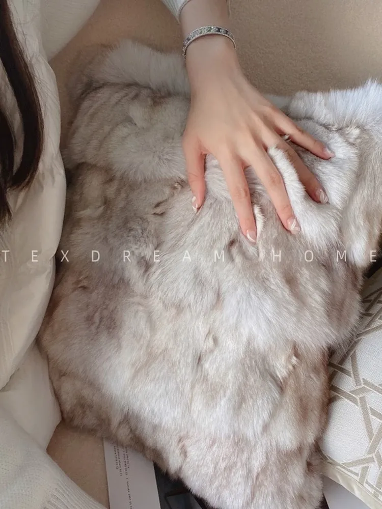 Texdream Luxe Oat Milk Cream Faux Fur Sofa Pillow - Vintage Cotton Linen Cushion with Insert for Elegant Living Rooms