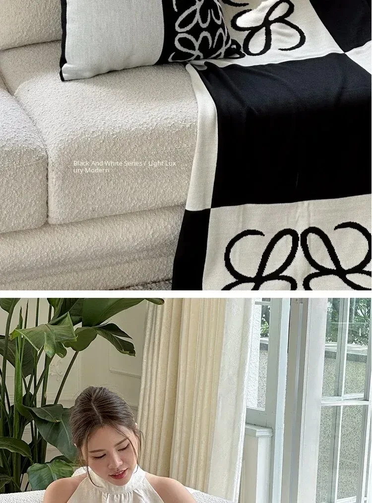 [Woven Blanket| Black and White Color Matching]