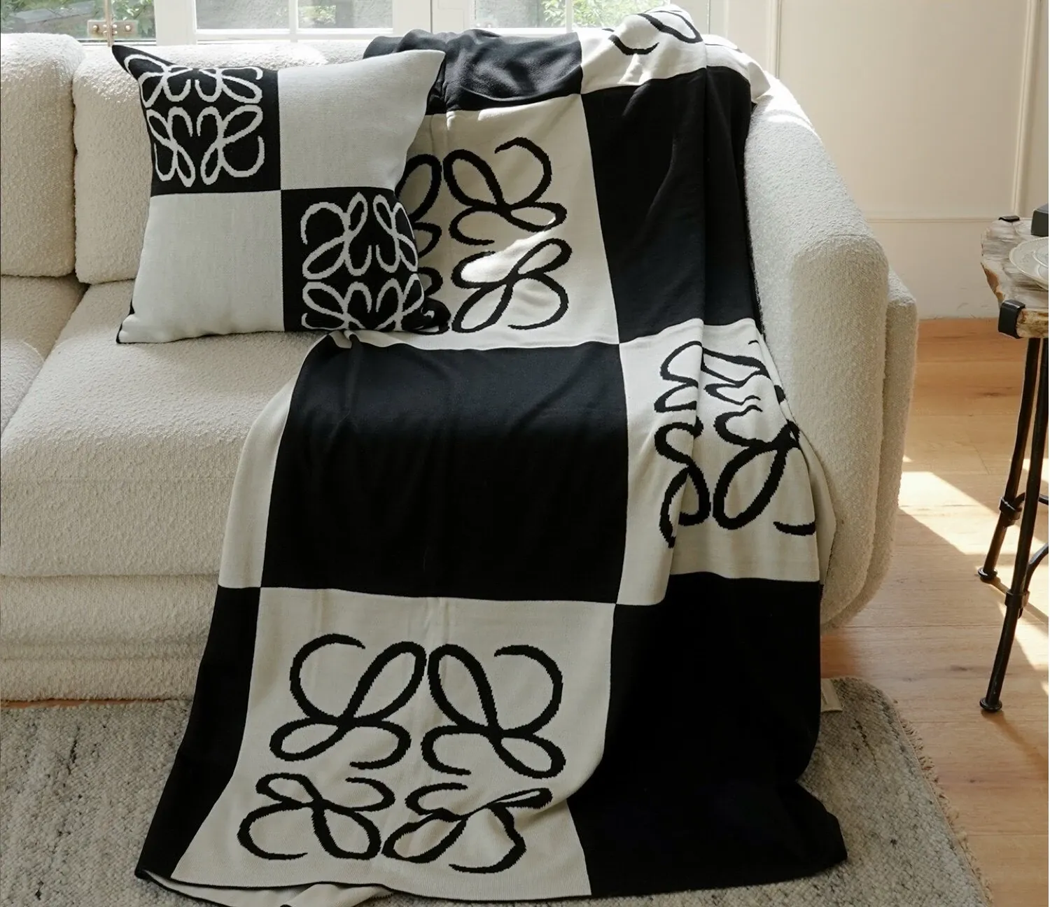 TEXDREAM Modern Luxe Black and White Sofa Pillows - Retro Minimalist Cozy Throw Blanket for Bed and Living Room Decor