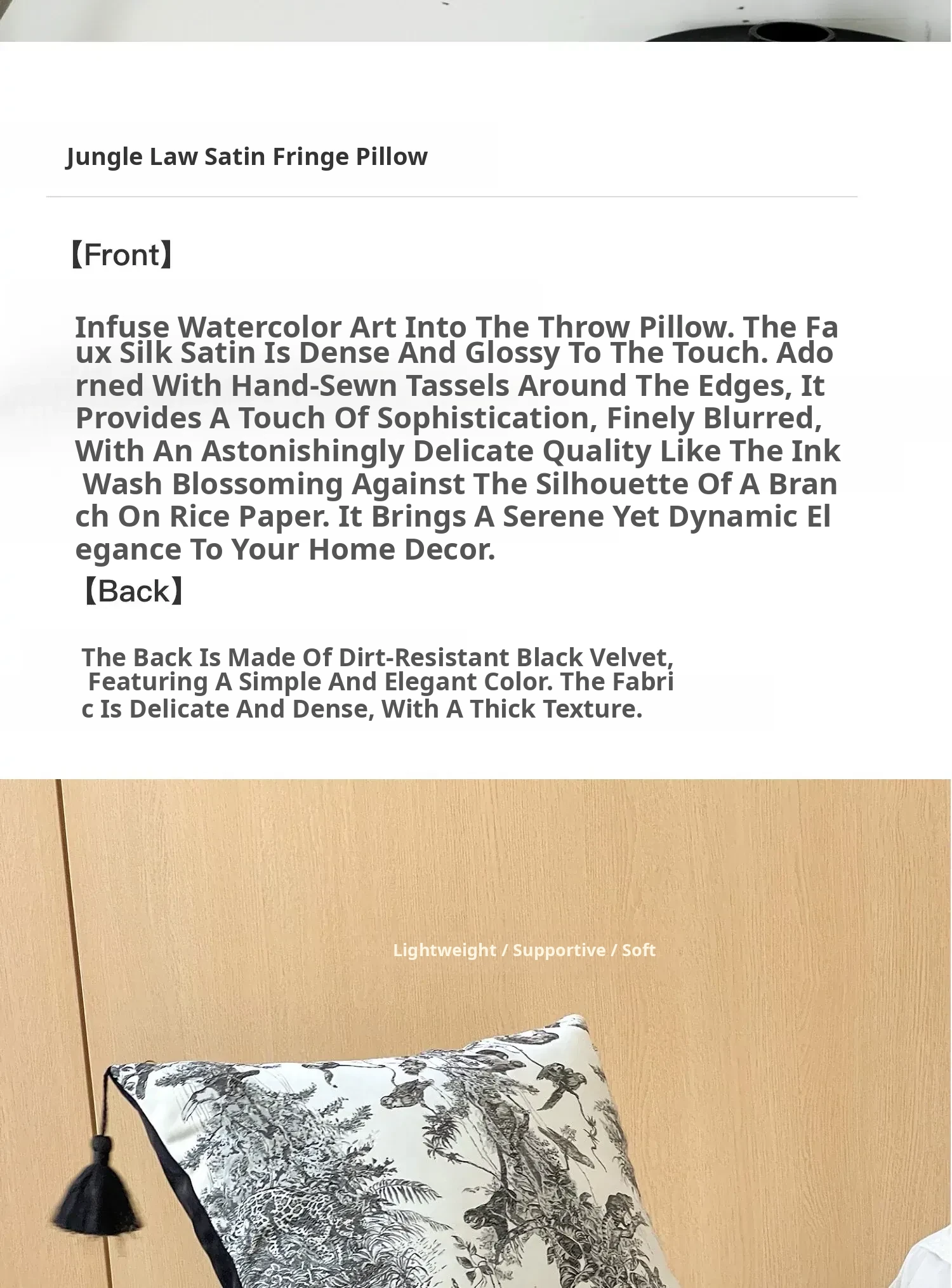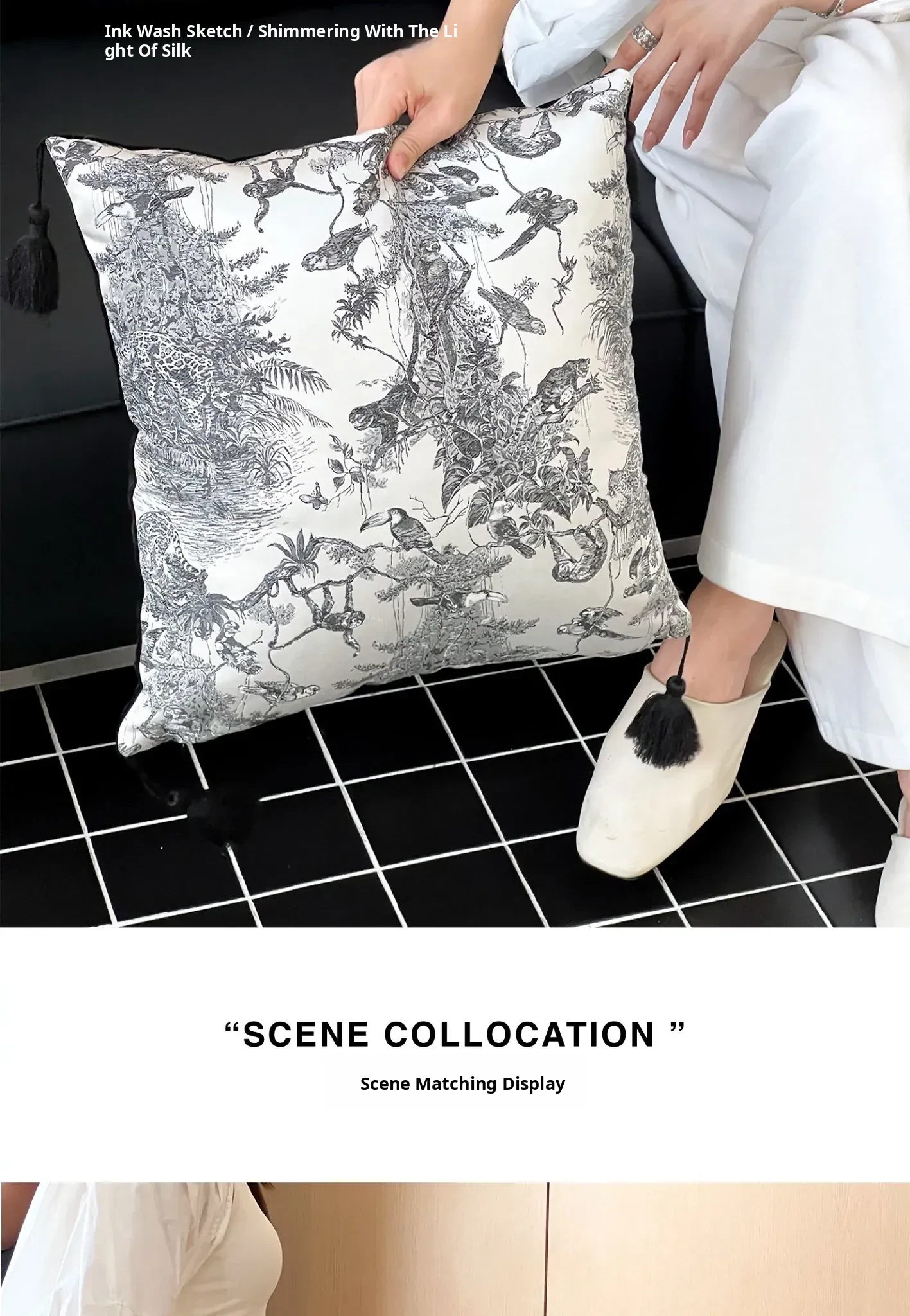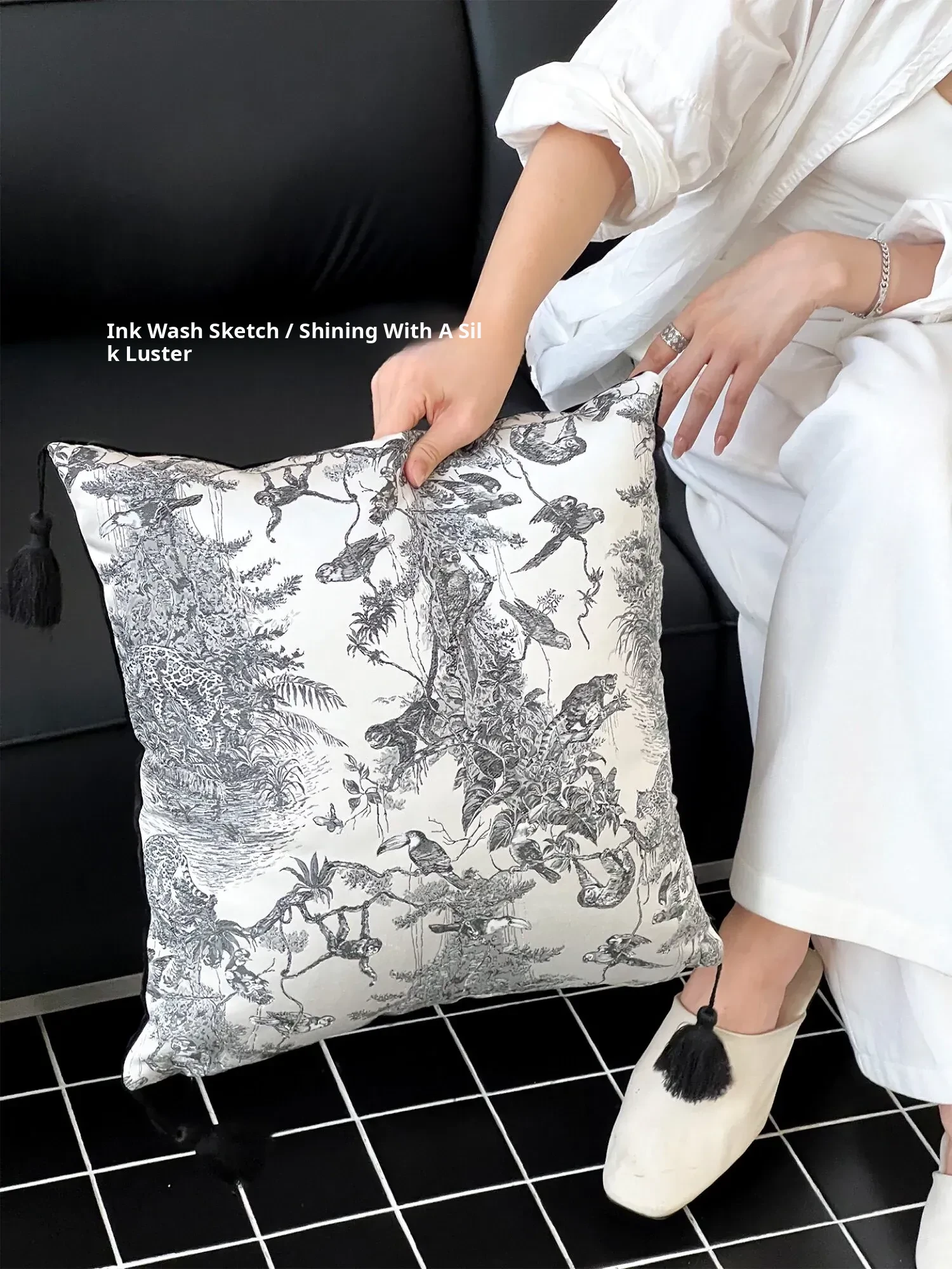 Ink Tassel Satin Pillow| Black