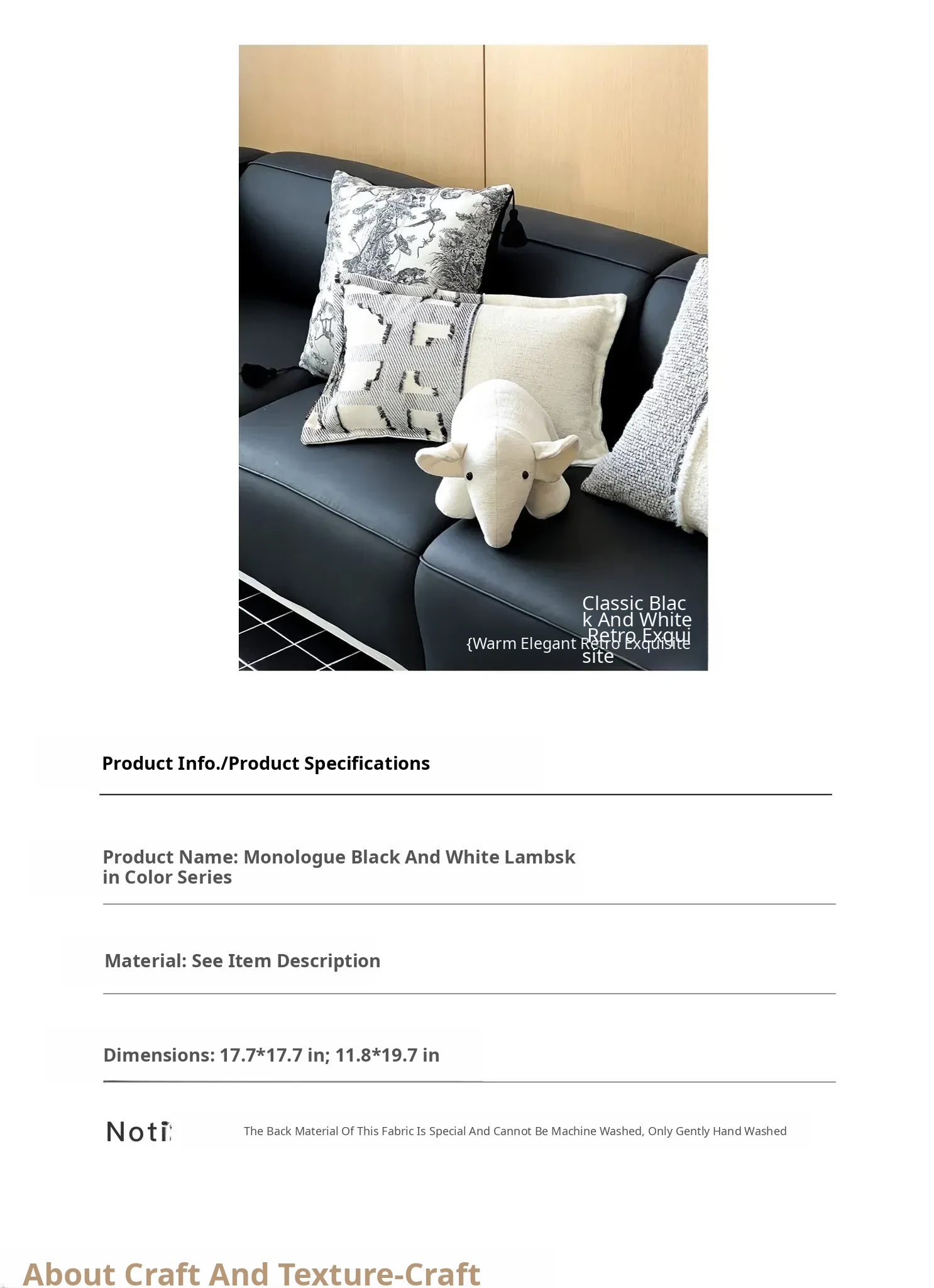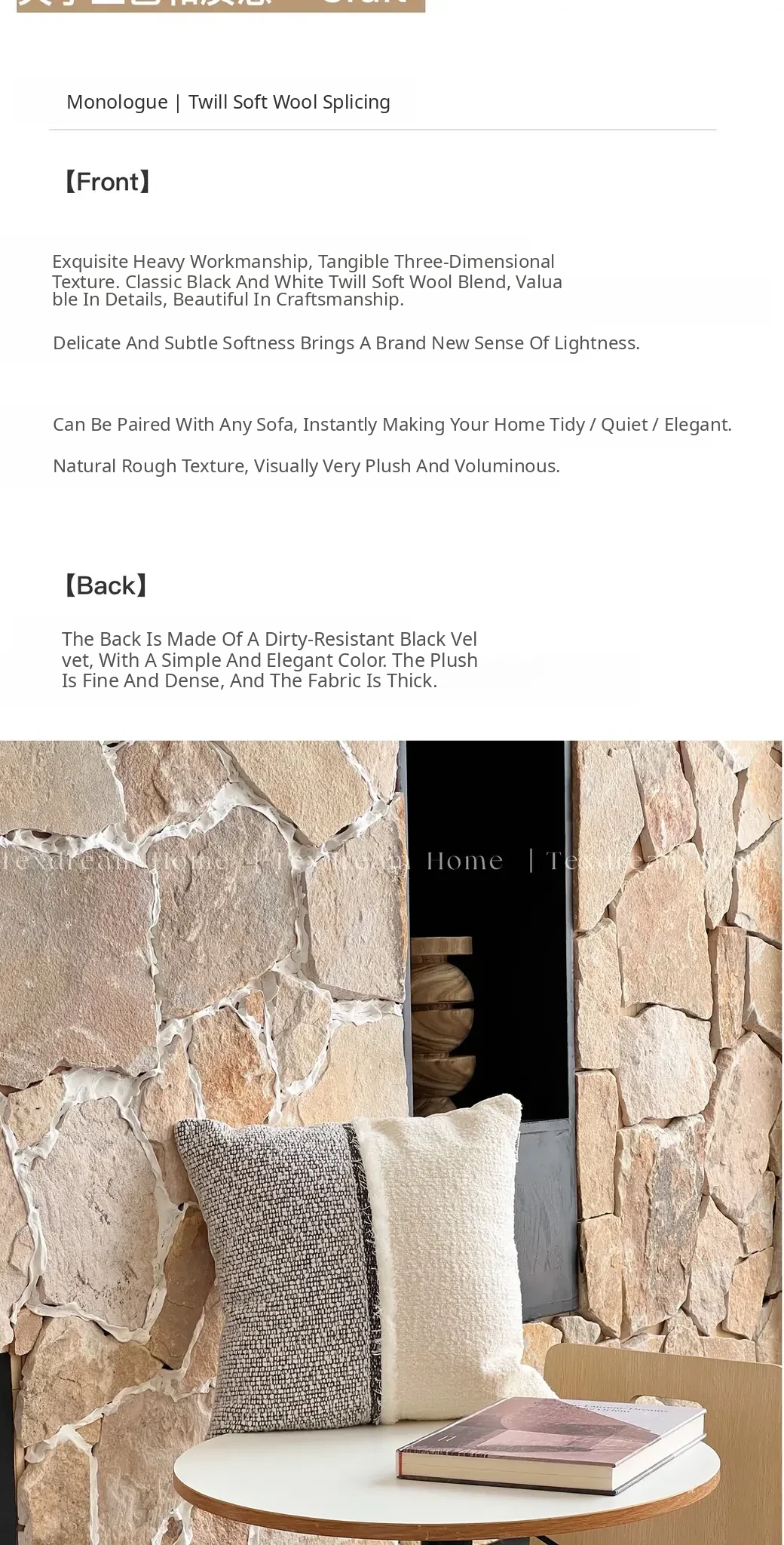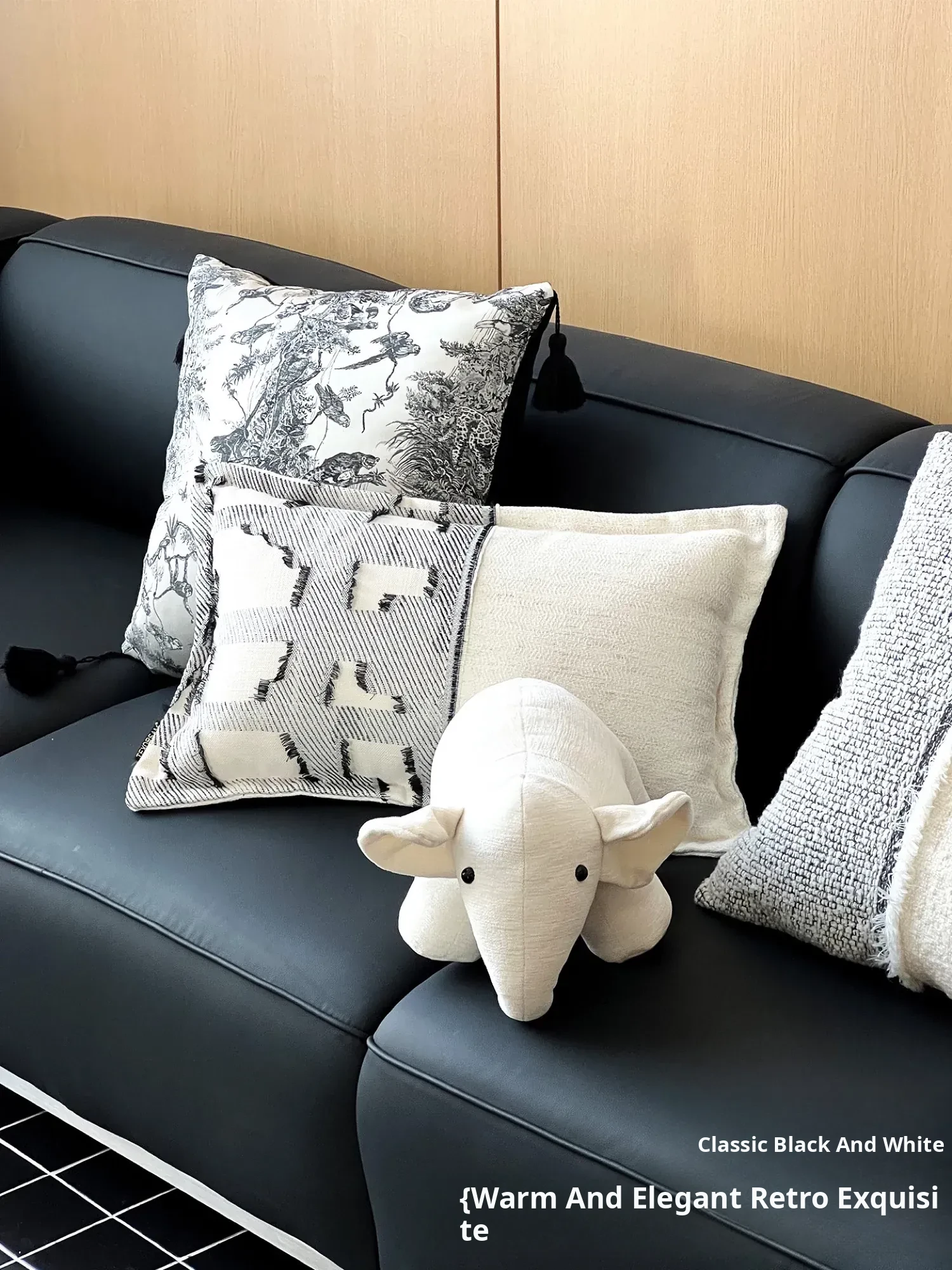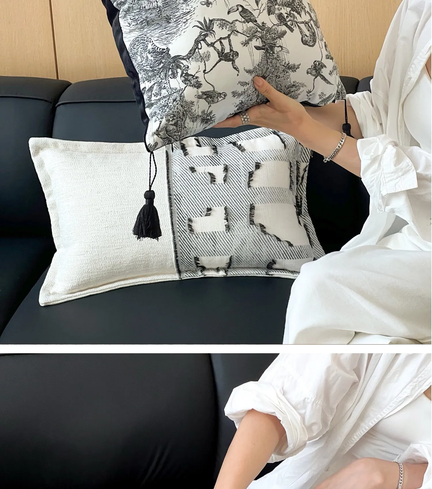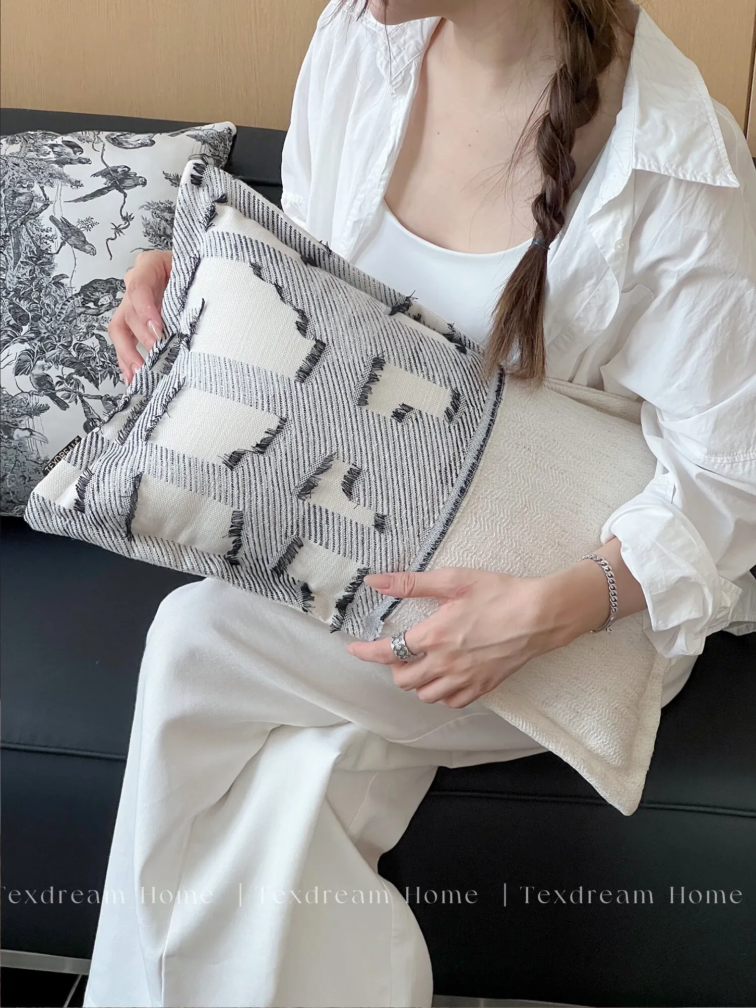 Chanel-Style Wool Throw Pillow| Black and White Collage