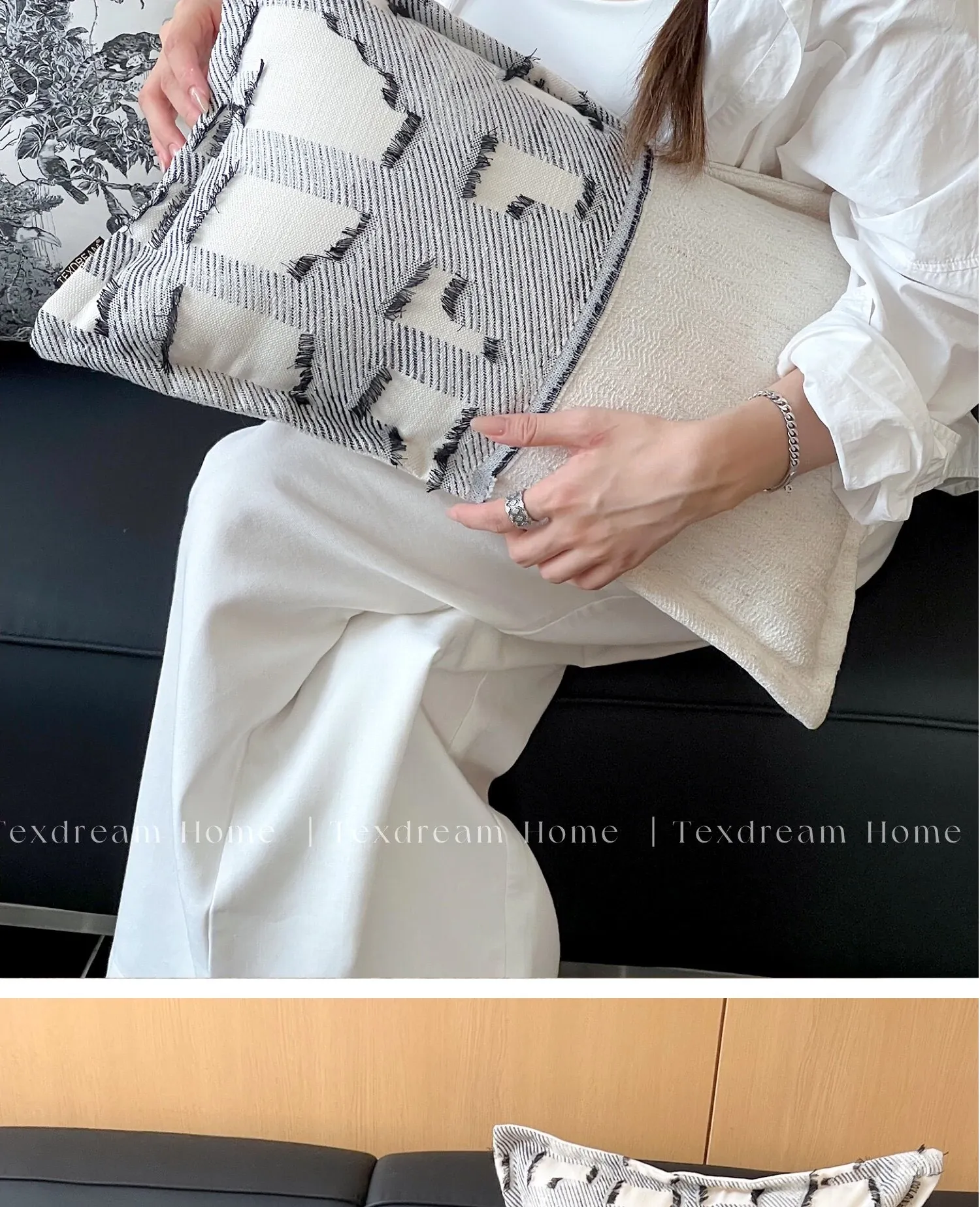 TEXDREAM Modern Luxury Black and White Sofa Pillow Covers - Stylish Hotel Quality Cushions with Inserts for a Chic Touch