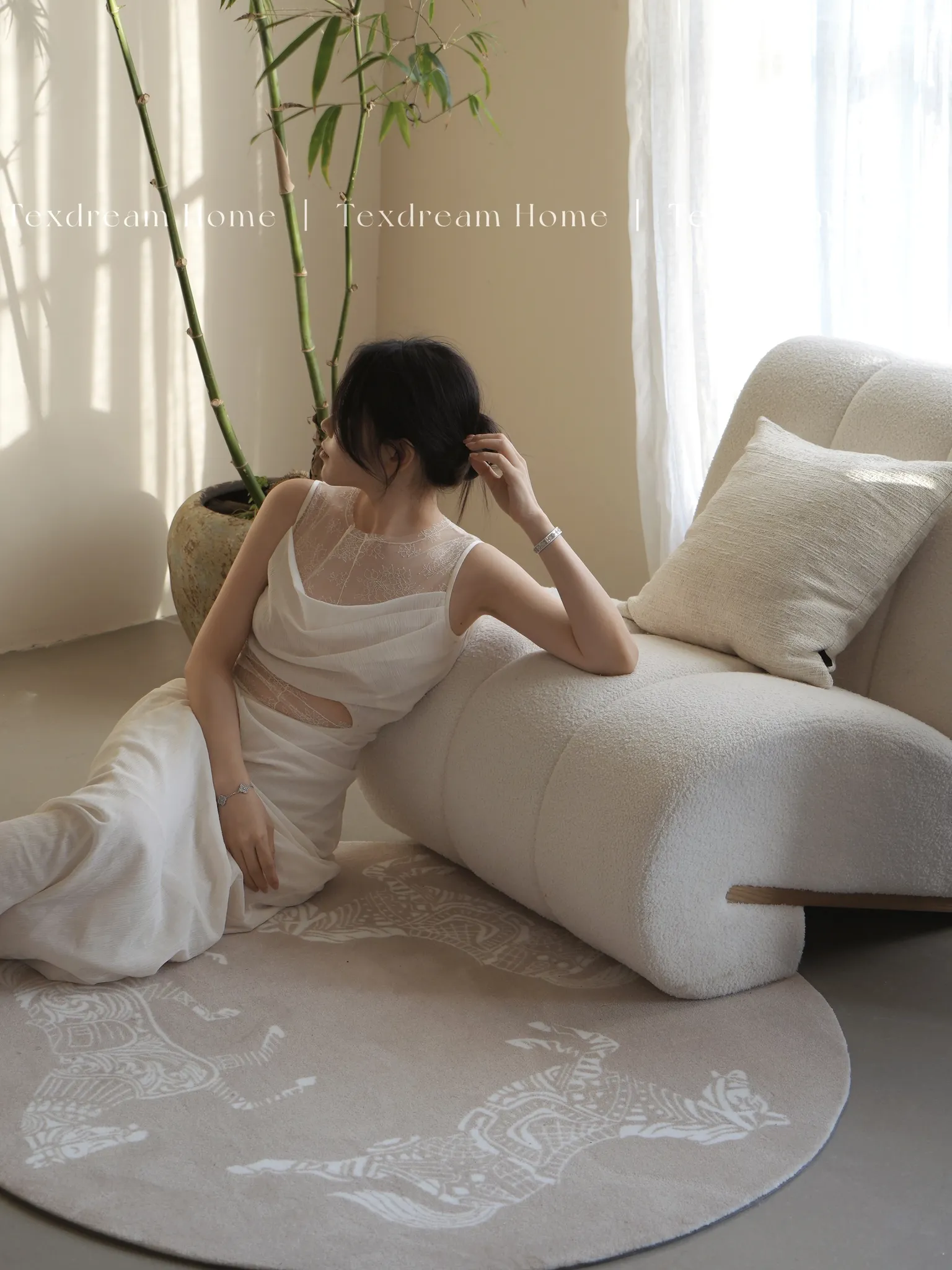 Texdream Modern Luxury Oatmeal Horse Pattern Carpet - Elevate Your Living Room or Bedroom with Style and Sophistication