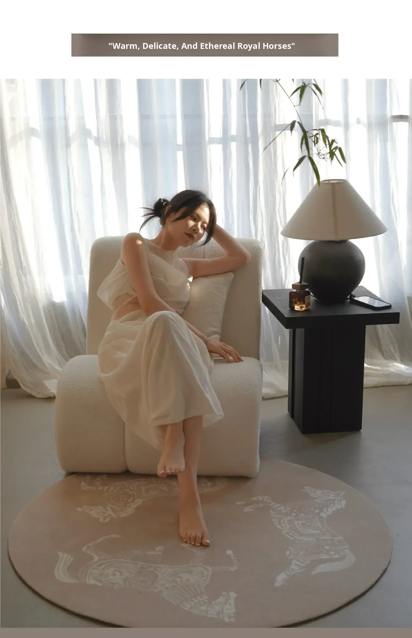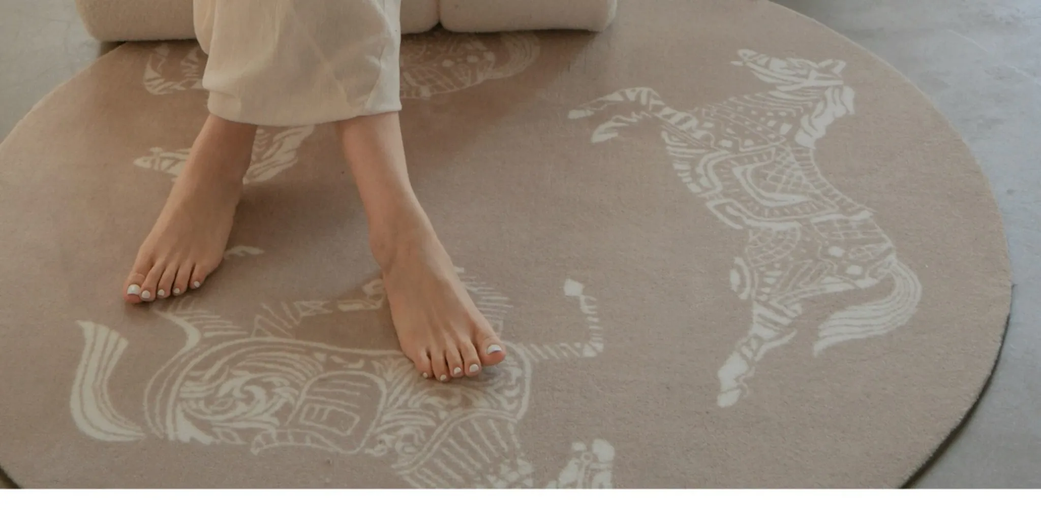 Wabi-sabi Style Horse Round Rug | Oat Color