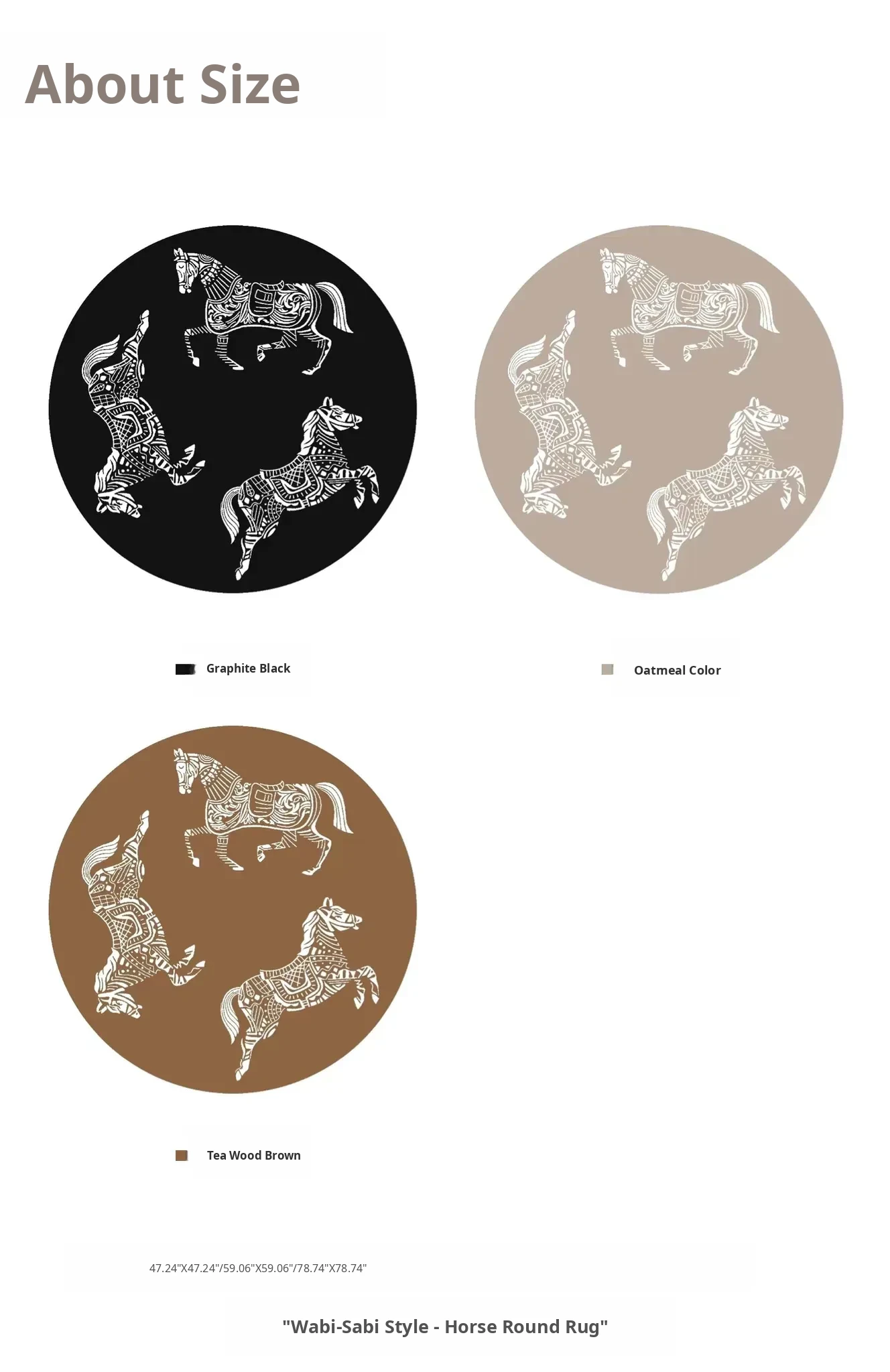Wabi-Sabi Style Horse Round Rug | Graphite Black