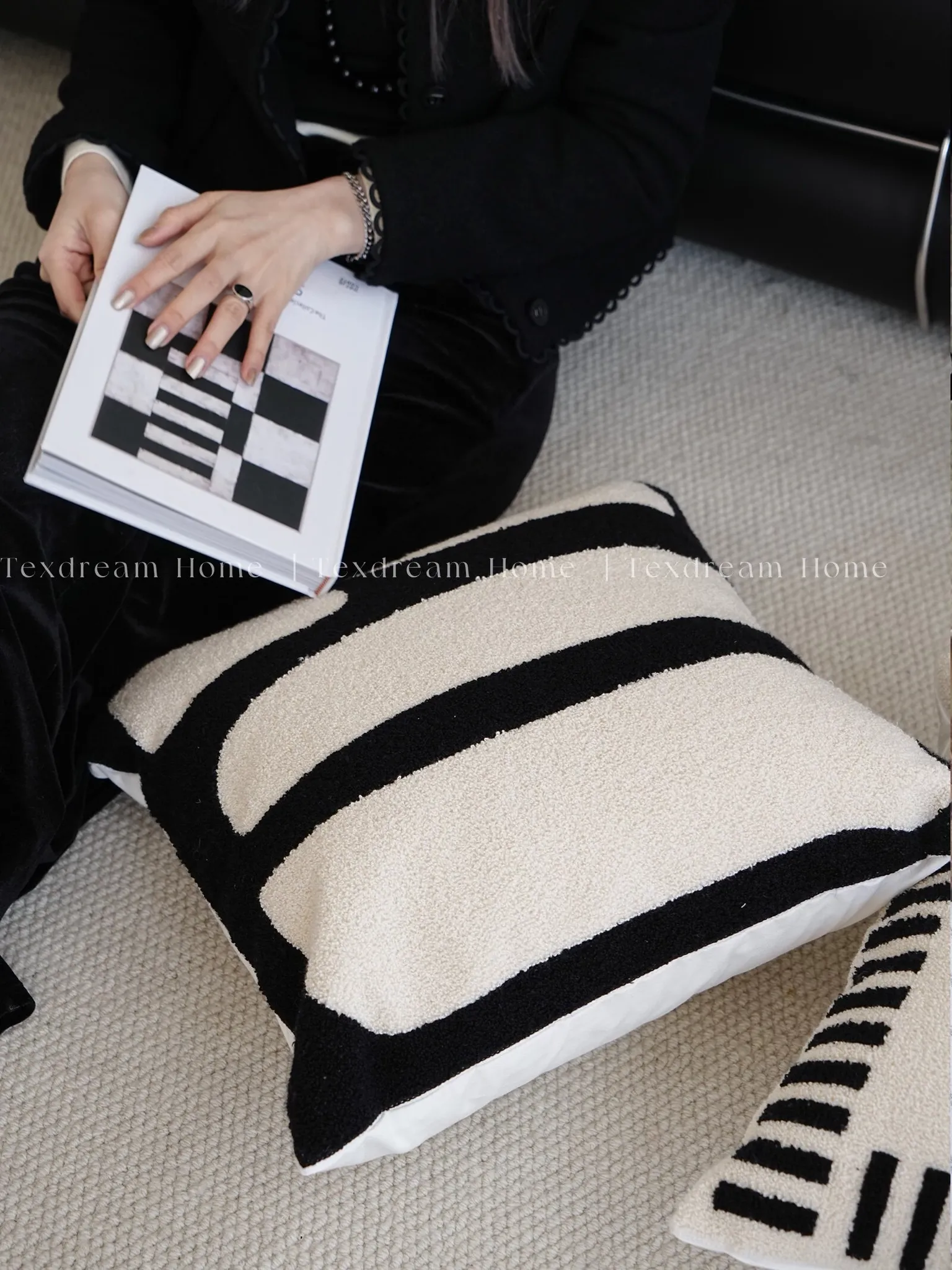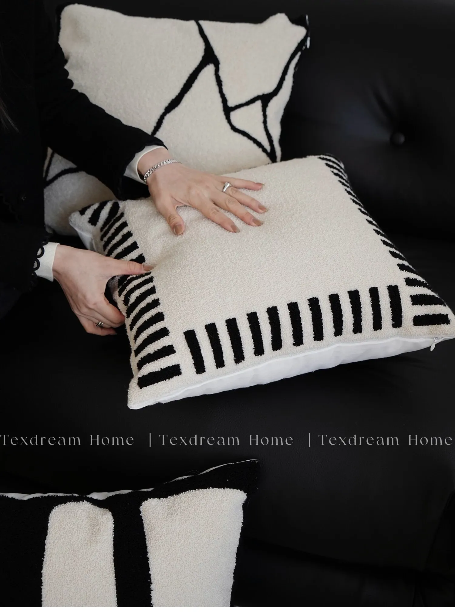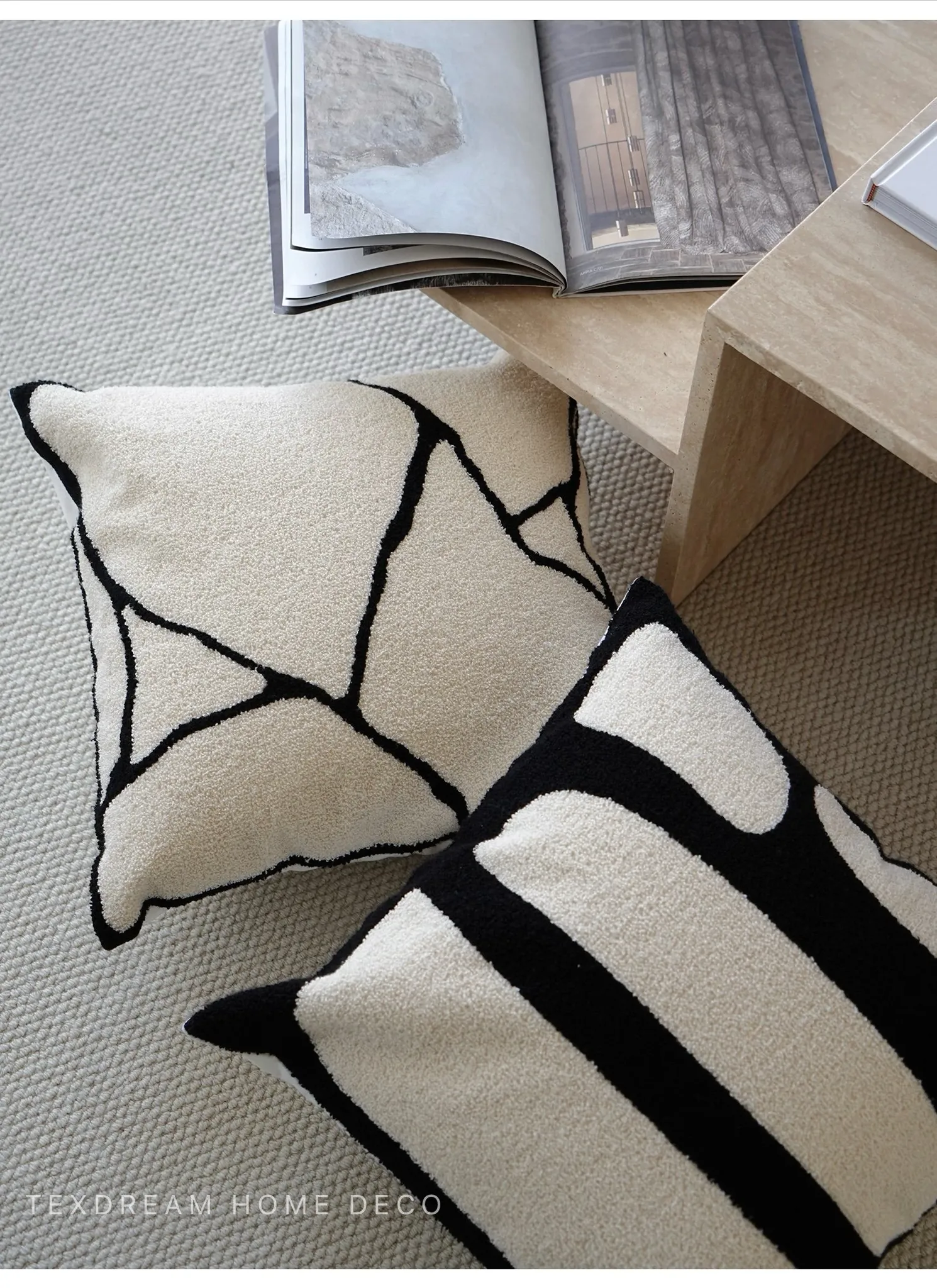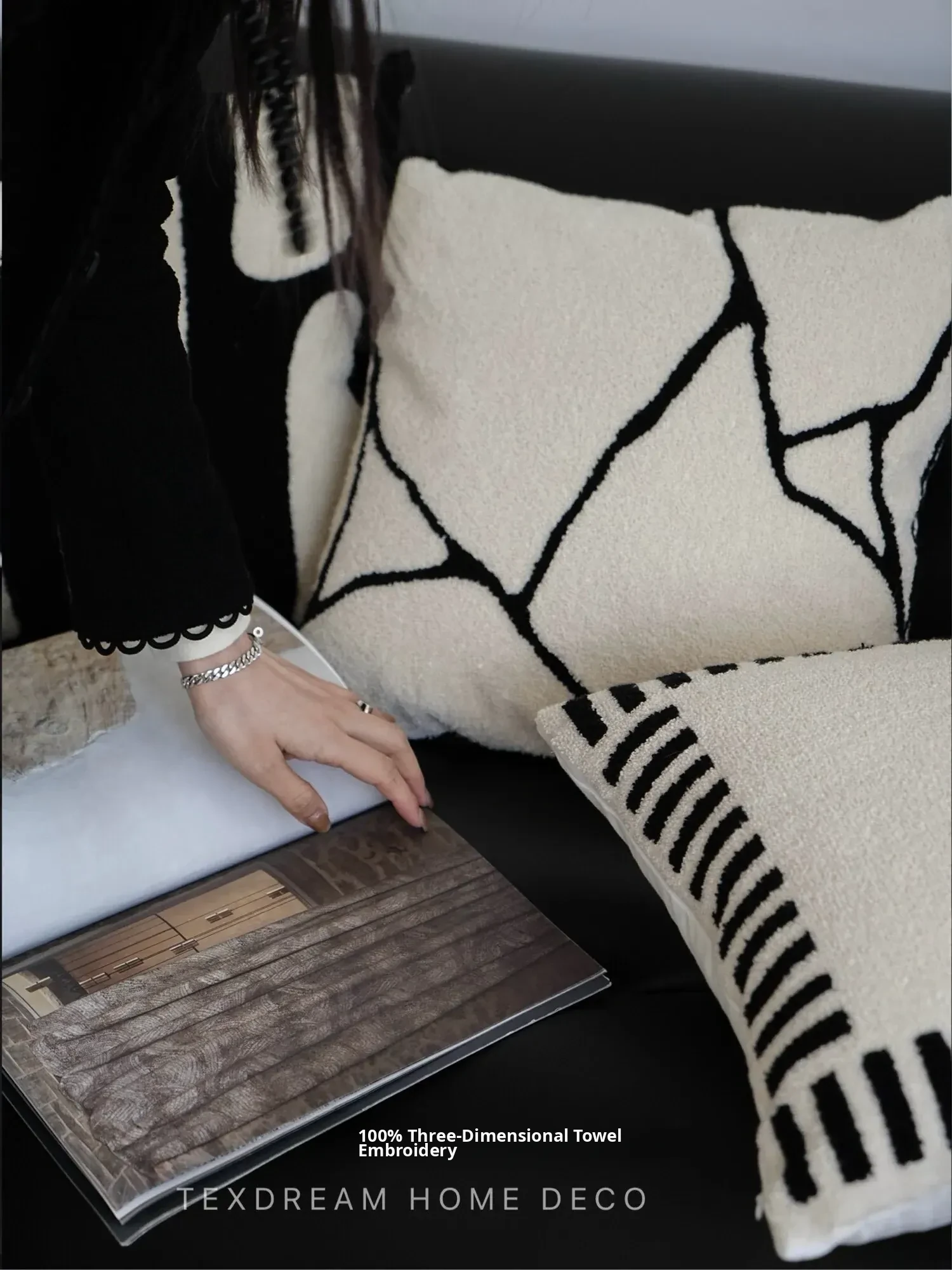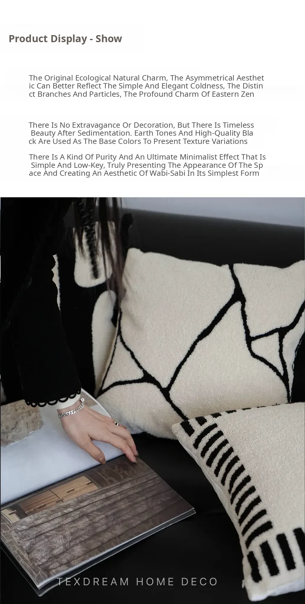 Texdream Natural Attitude Textured Embroidered Throw Pillow - Minimalist Wabi-Sabi Cotton-Linen Cushion Cover for Living Room Sofa Decor