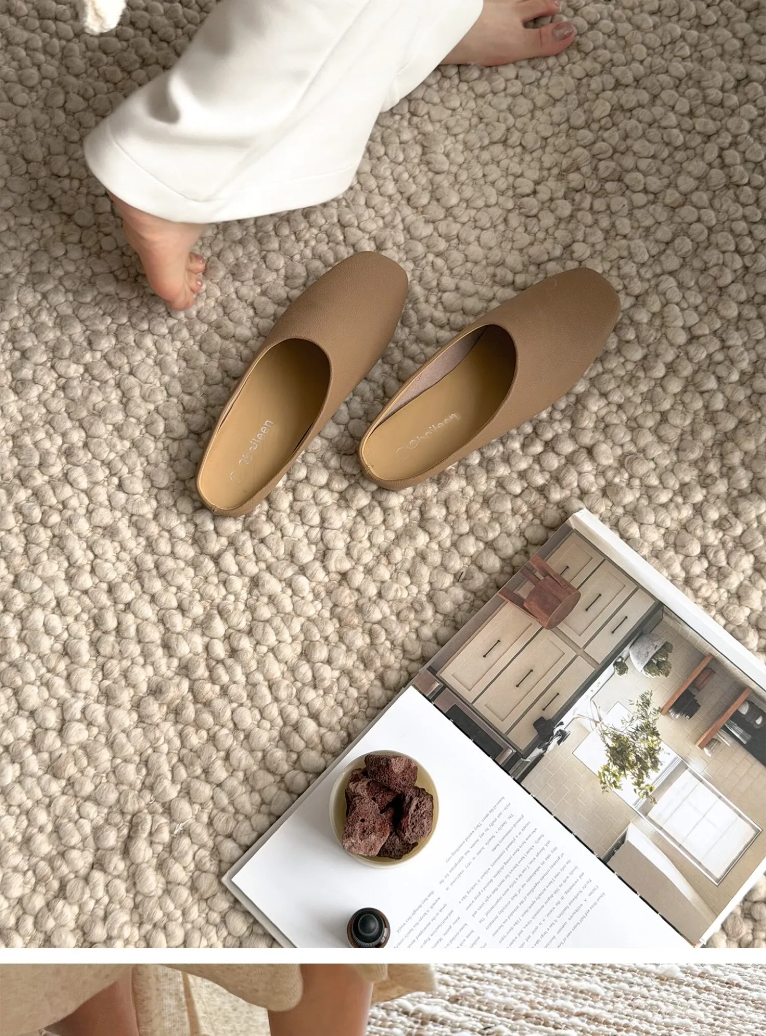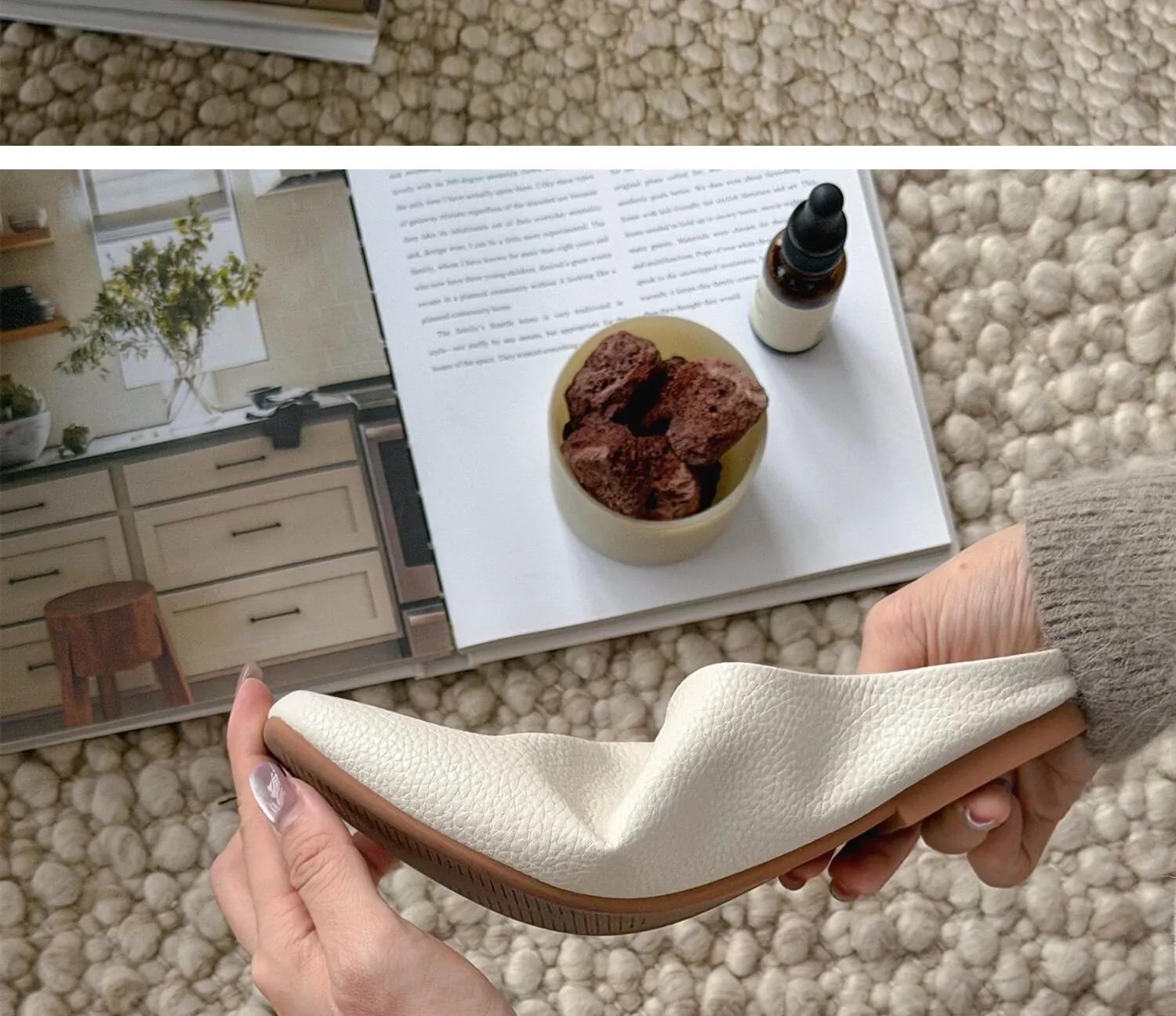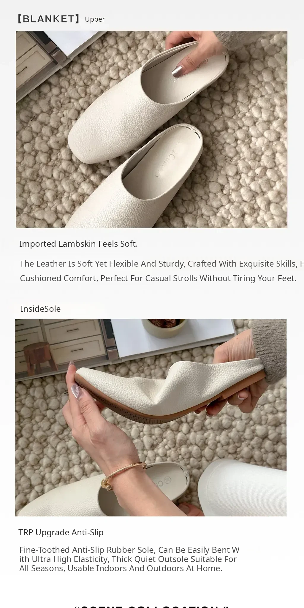 [Lambskin Toe-Cap Slippers| Rice Apricot Color]