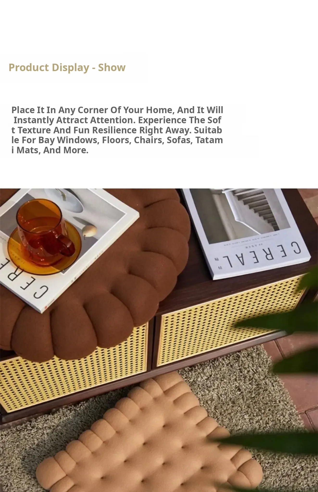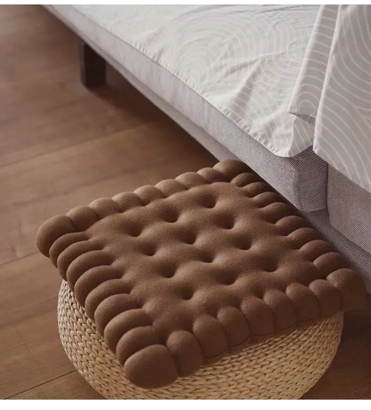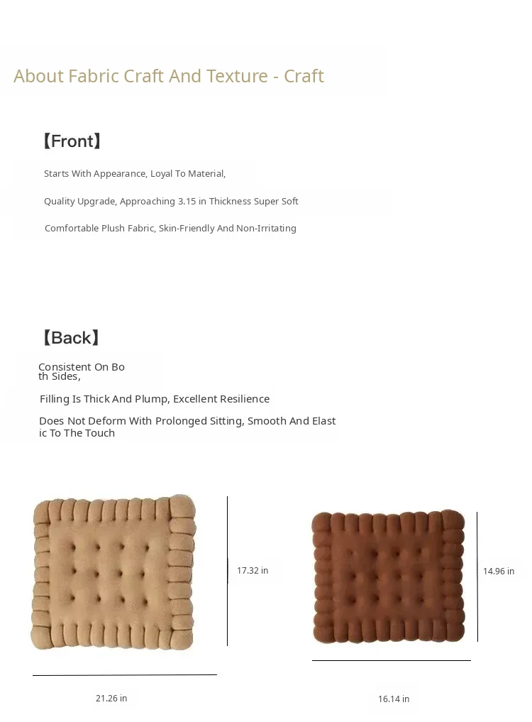 TEXDREAM Thick Plush Cookie Cushion - Square Office Seat Pad for Long Sitting, Adorable Tatami Chair Cushion, Perfect for Comfort and Style in Your Workspace!