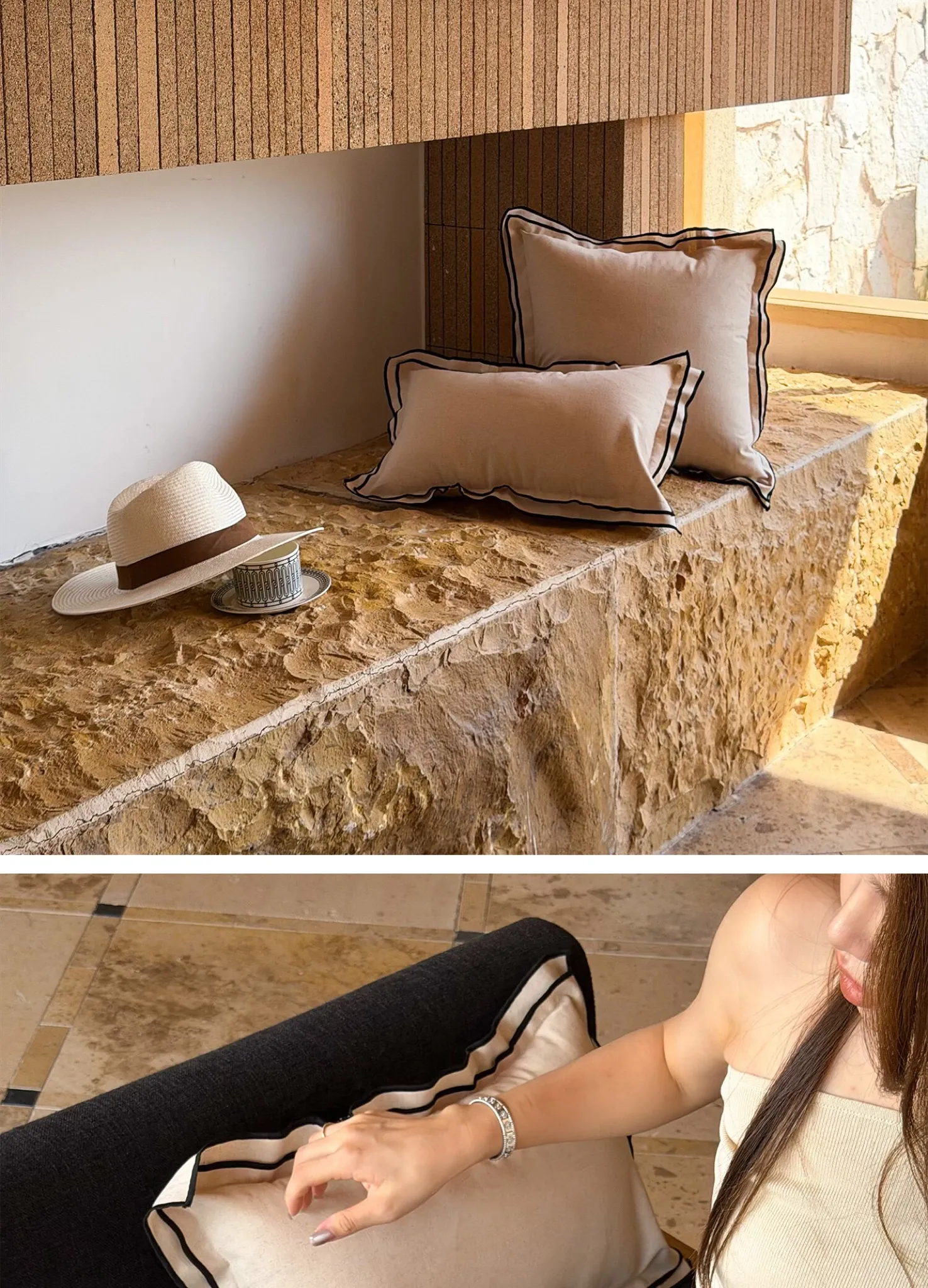 30 X 19.69 in | Double-Layer Black-Edged Linen Waist Pillow]