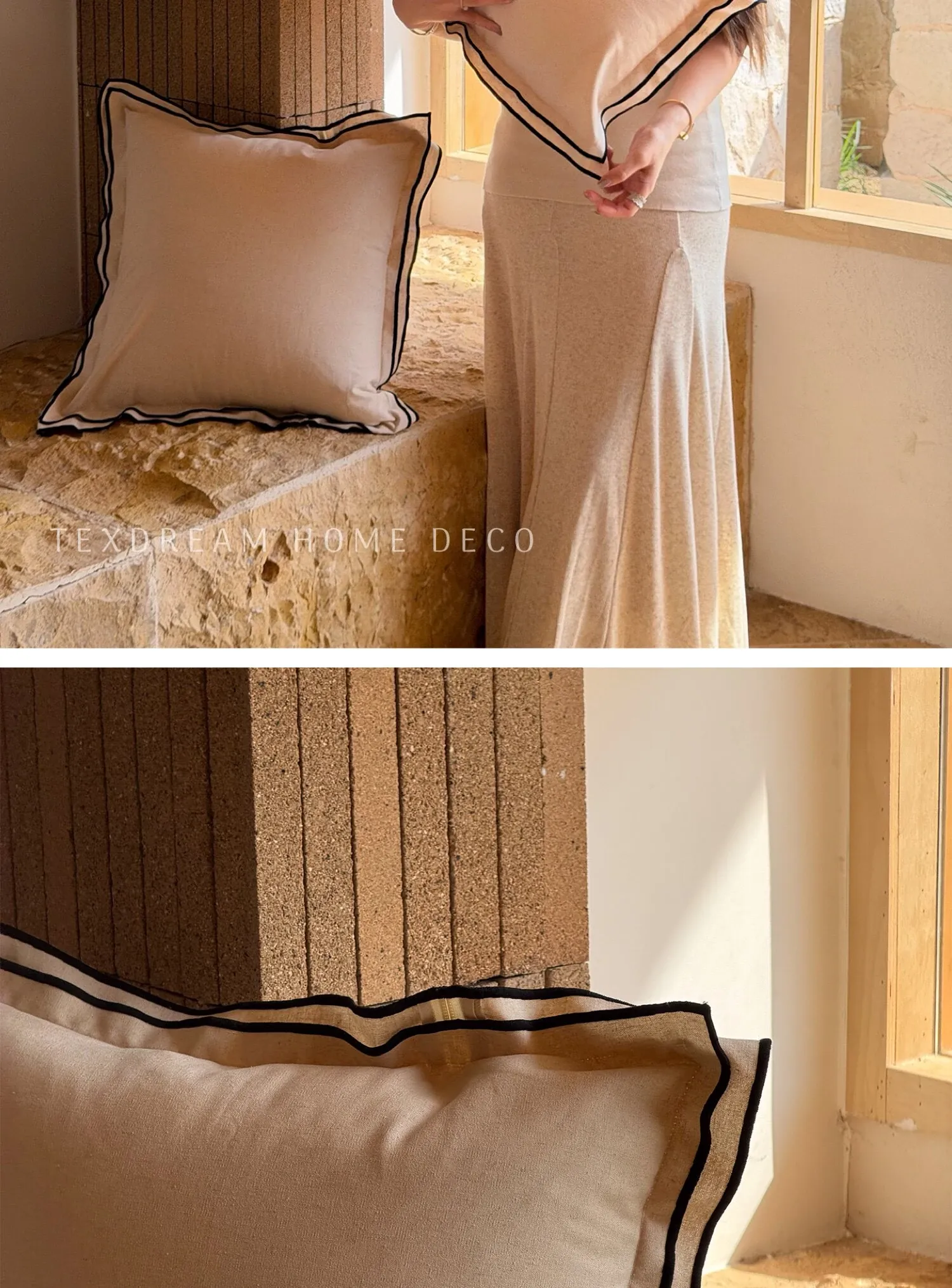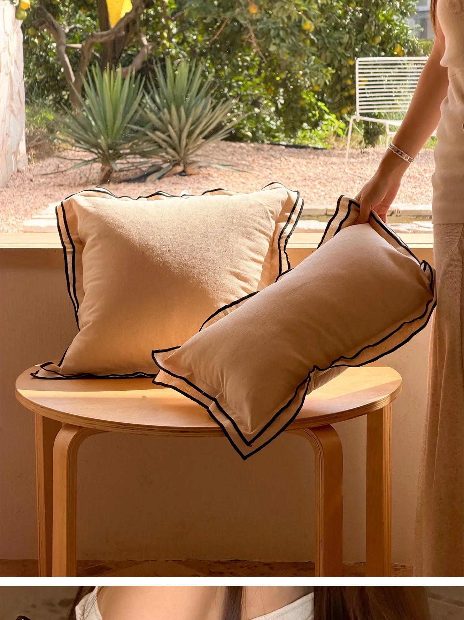 17.72in*17.72in | Double Layer Black Edge Linen Pillow]