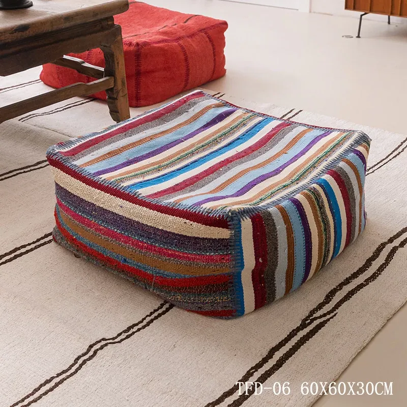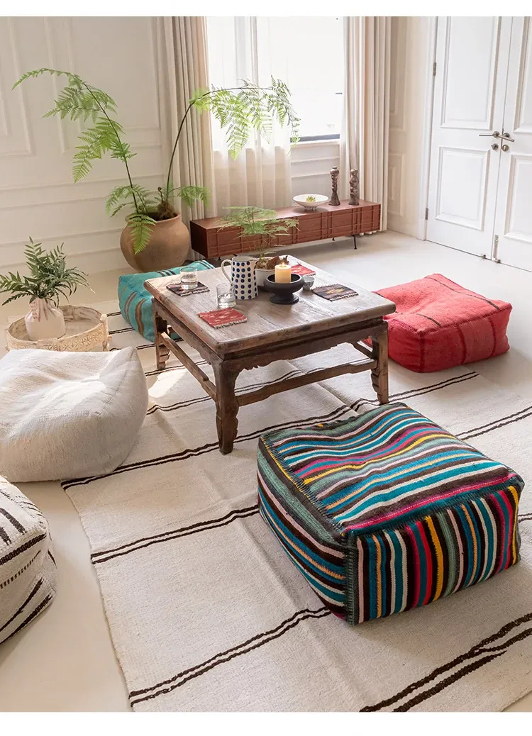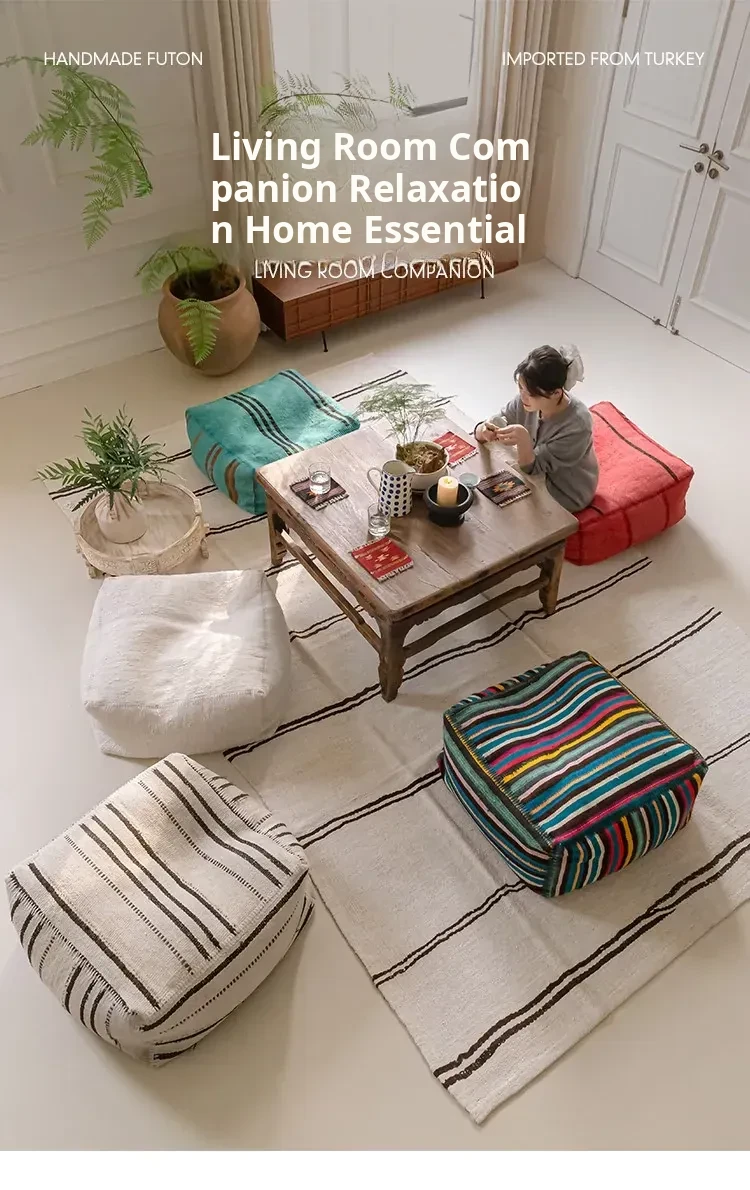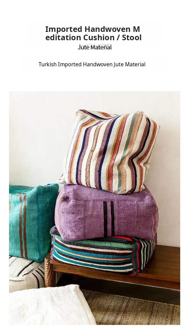 Turkish Imported Handmade Jute Floor Cushion - Luxurious Moroccan Tatami Lounge Seat for Balcony and Relaxation