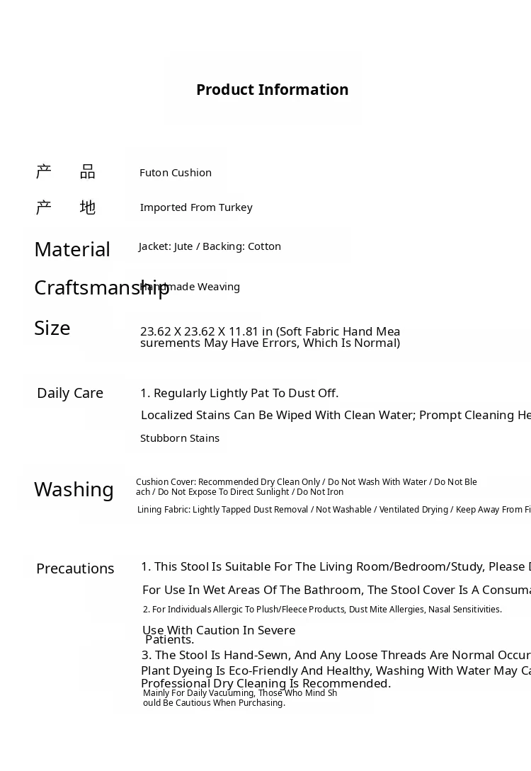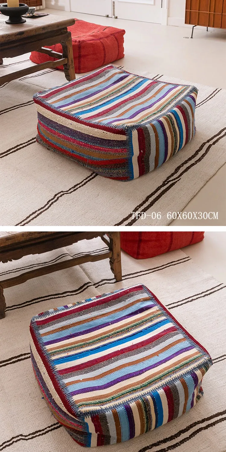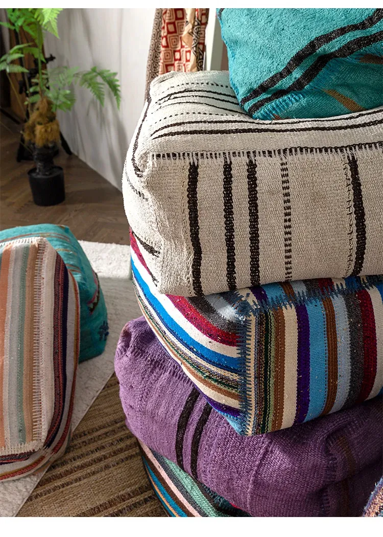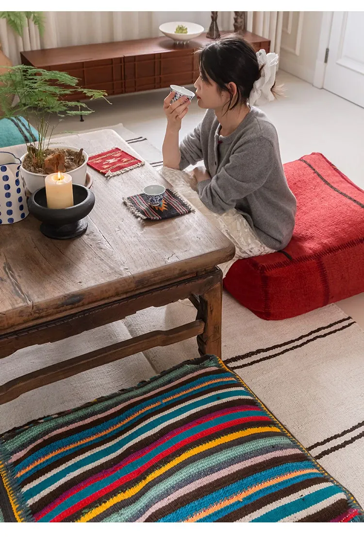 Turkish Imported Handmade Jute Floor Cushion - Luxurious Moroccan Tatami Lounge Seat for Balcony and Relaxation