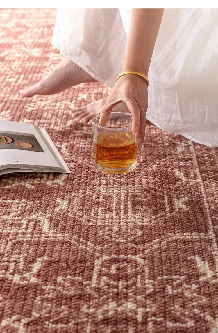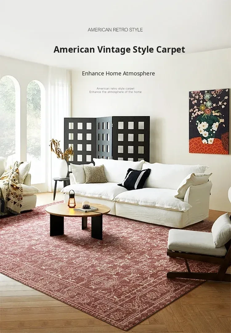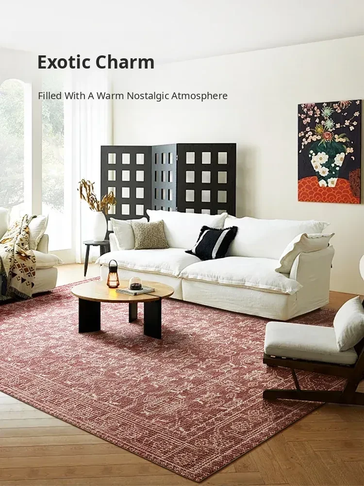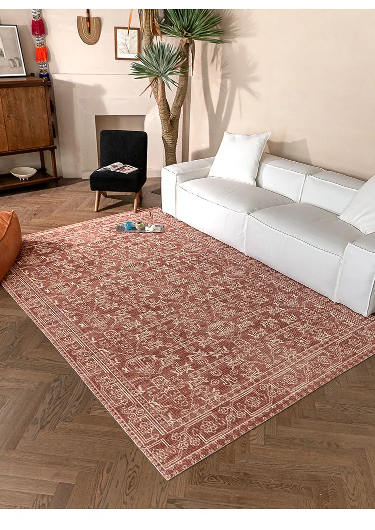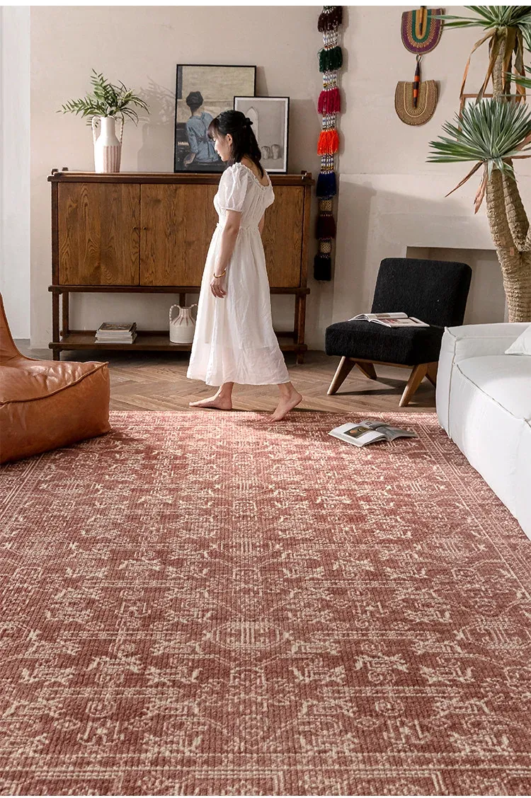 Vintage Charm: Bohemian-Inspired Burgundy Wool Area Rug for Your Living Room – Luxurious French Weave with Instagram Aesthetic