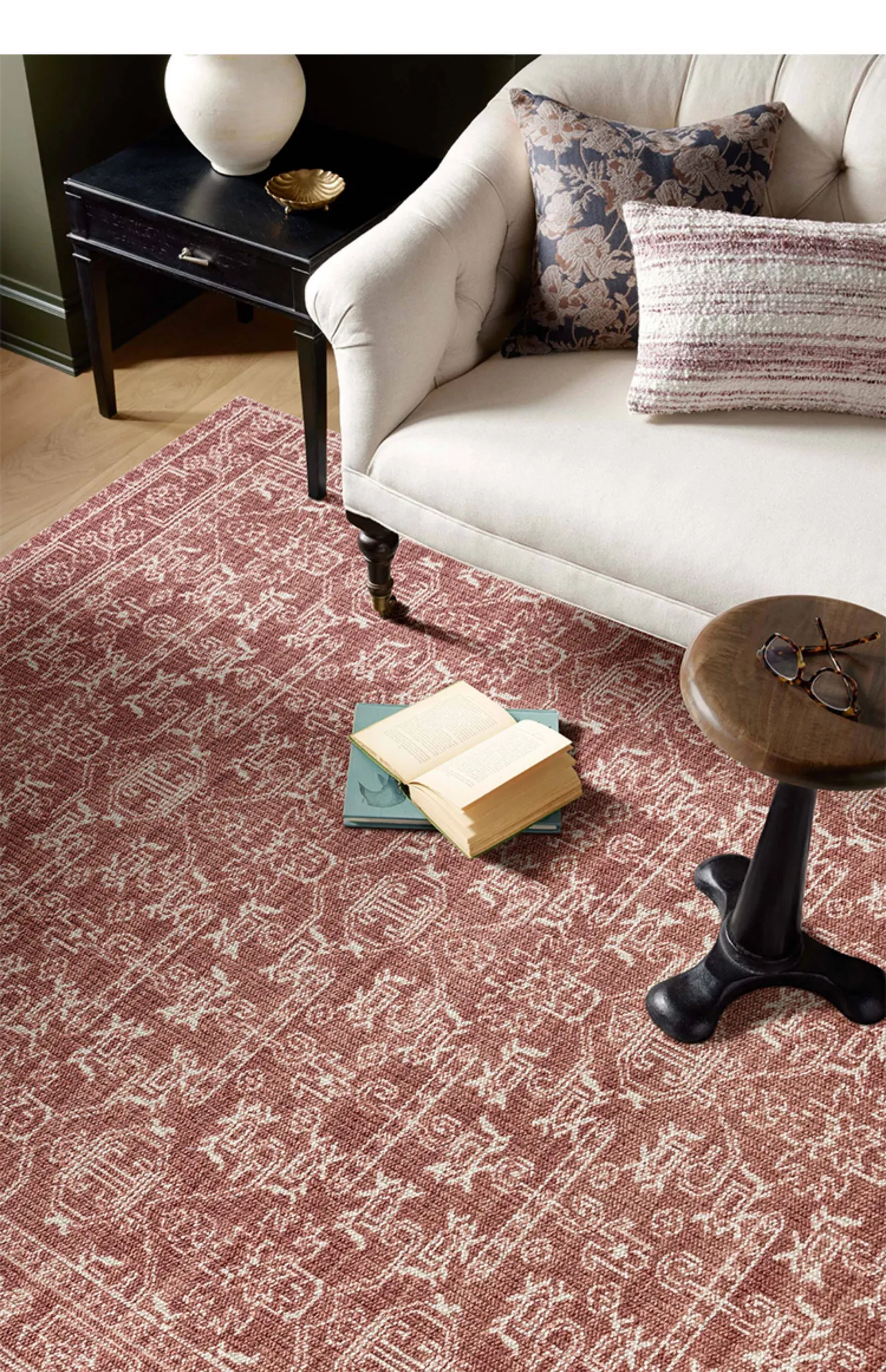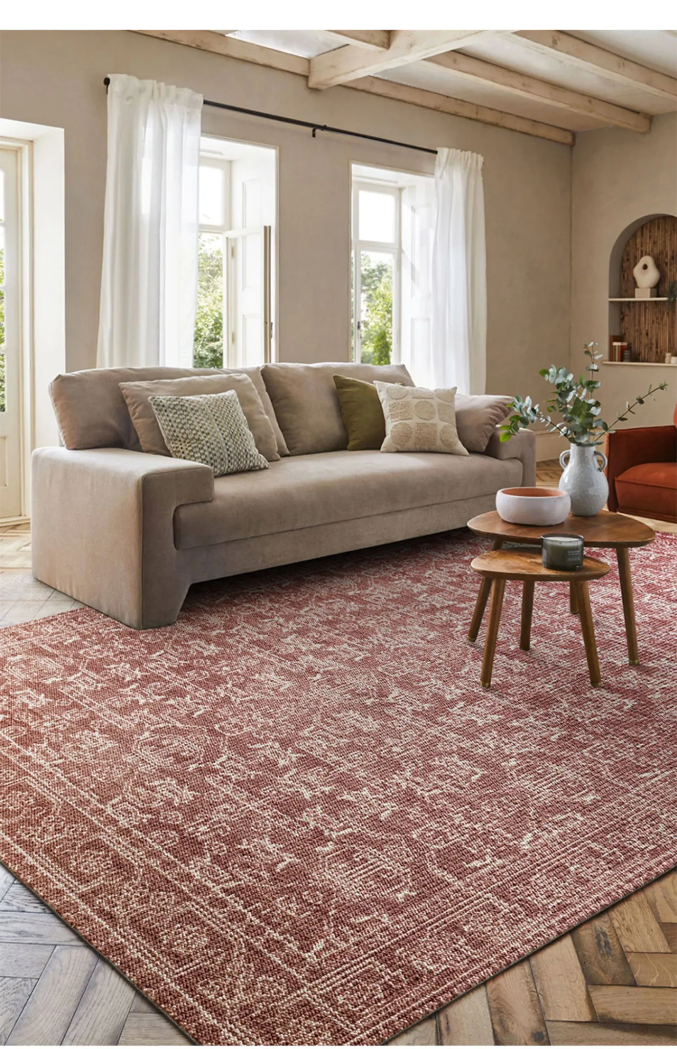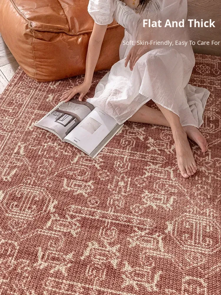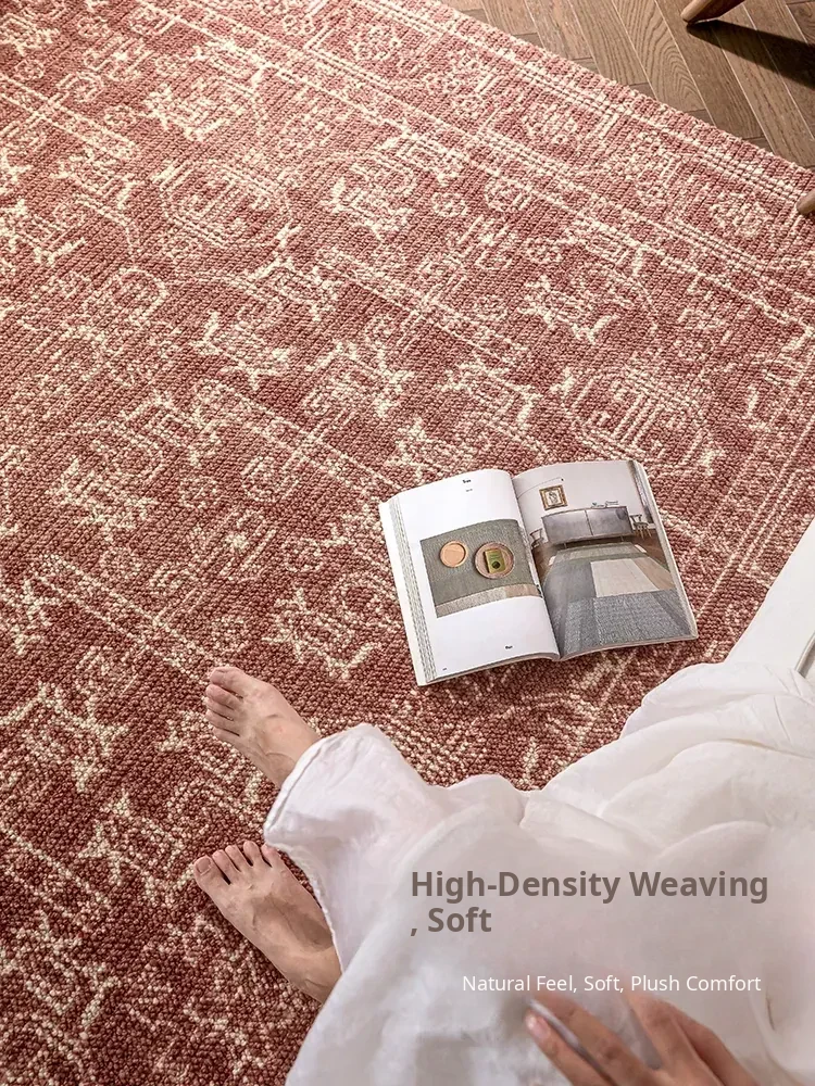 Vintage Charm: Bohemian-Inspired Burgundy Wool Area Rug for Your Living Room – Luxurious French Weave with Instagram Aesthetic