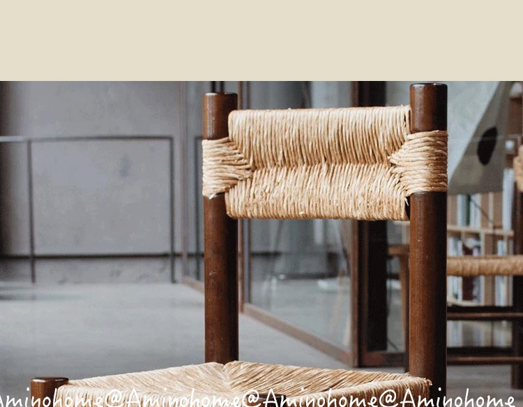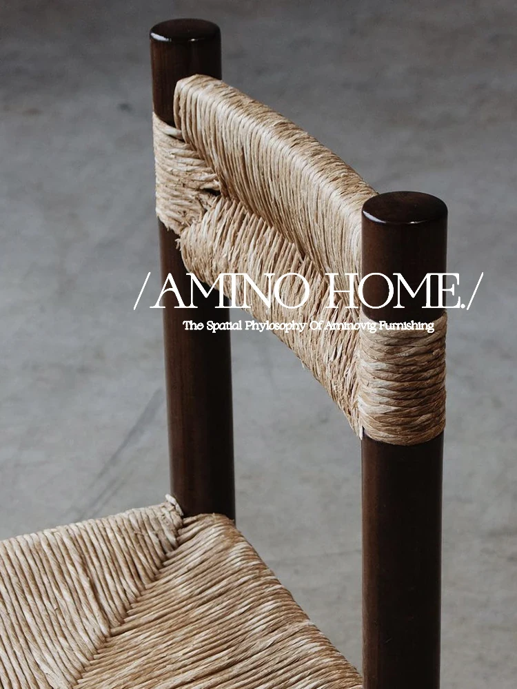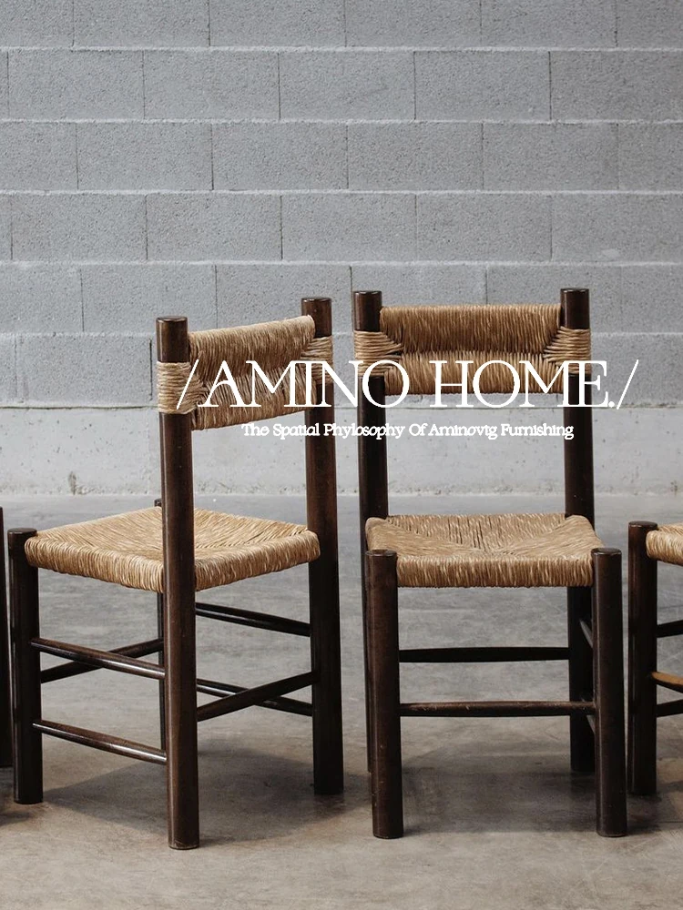 Vintage Wabi-Sabi Rattan Dining Chair - French Retro Solid Wood with Backrest, Perfect for Home Relaxation & Dining, Boho Chic Rattan Chair by MCM Furniture