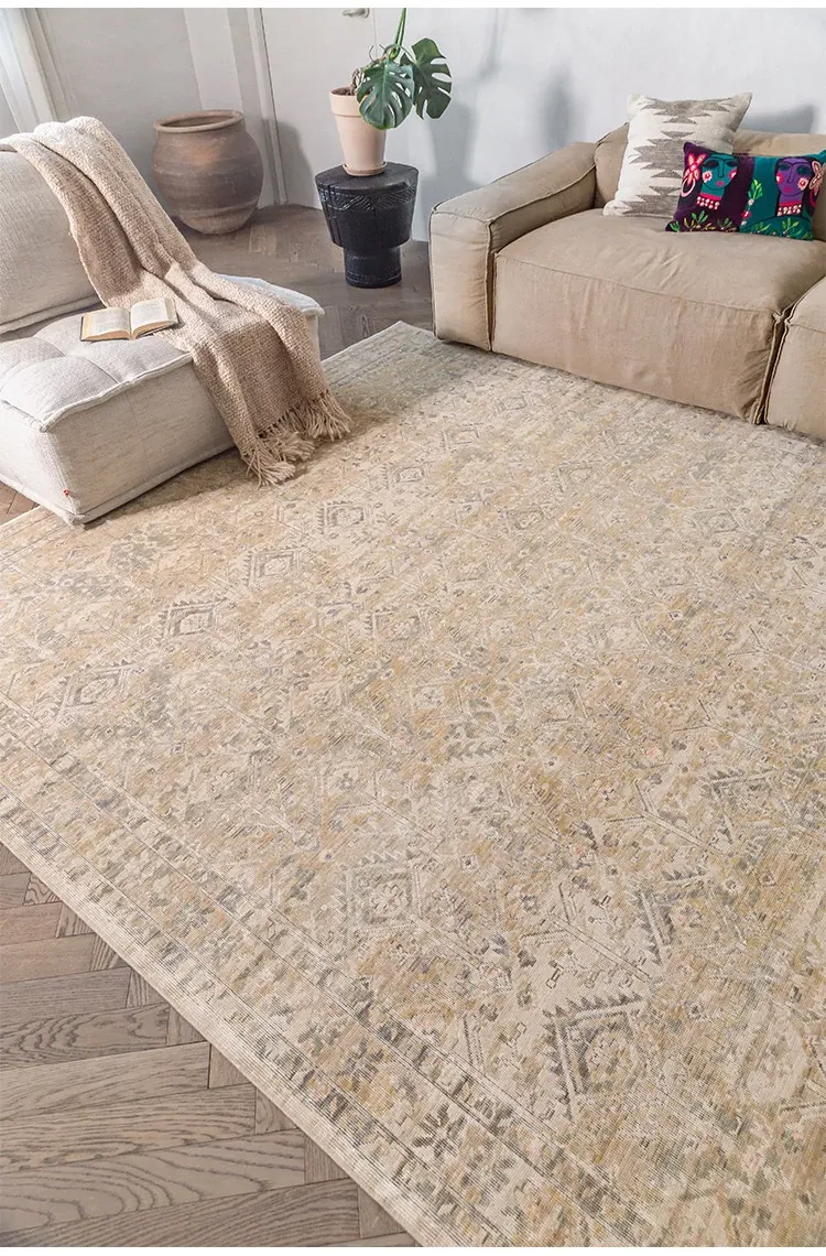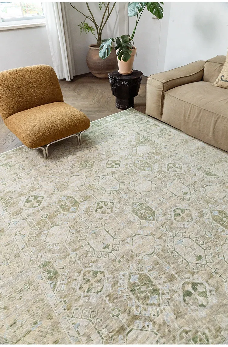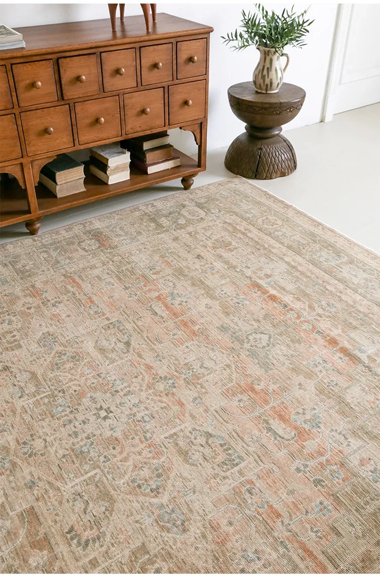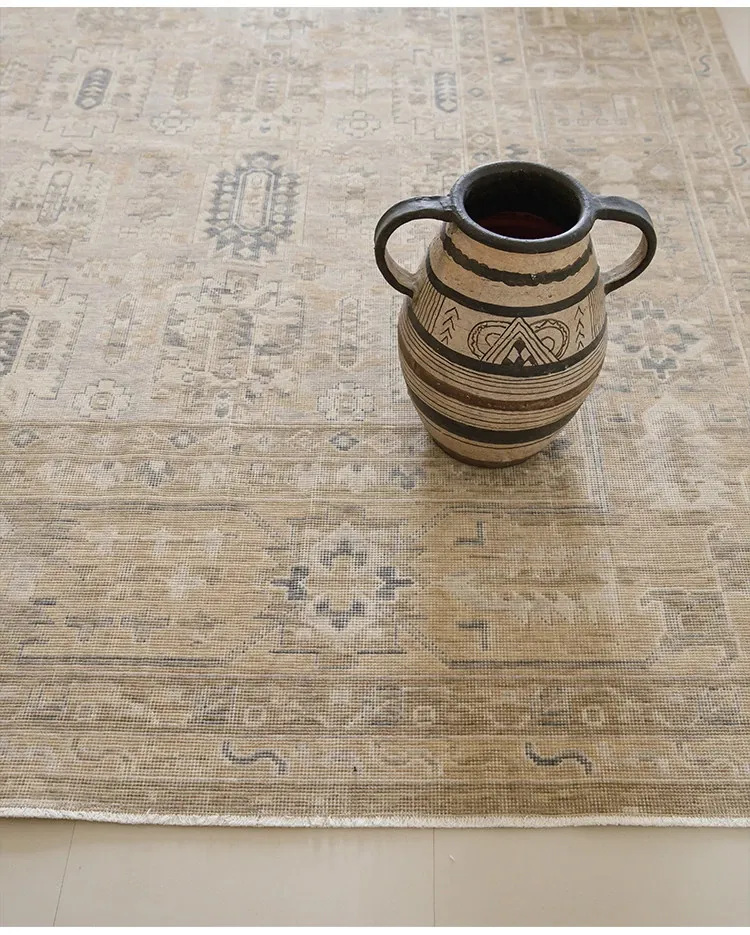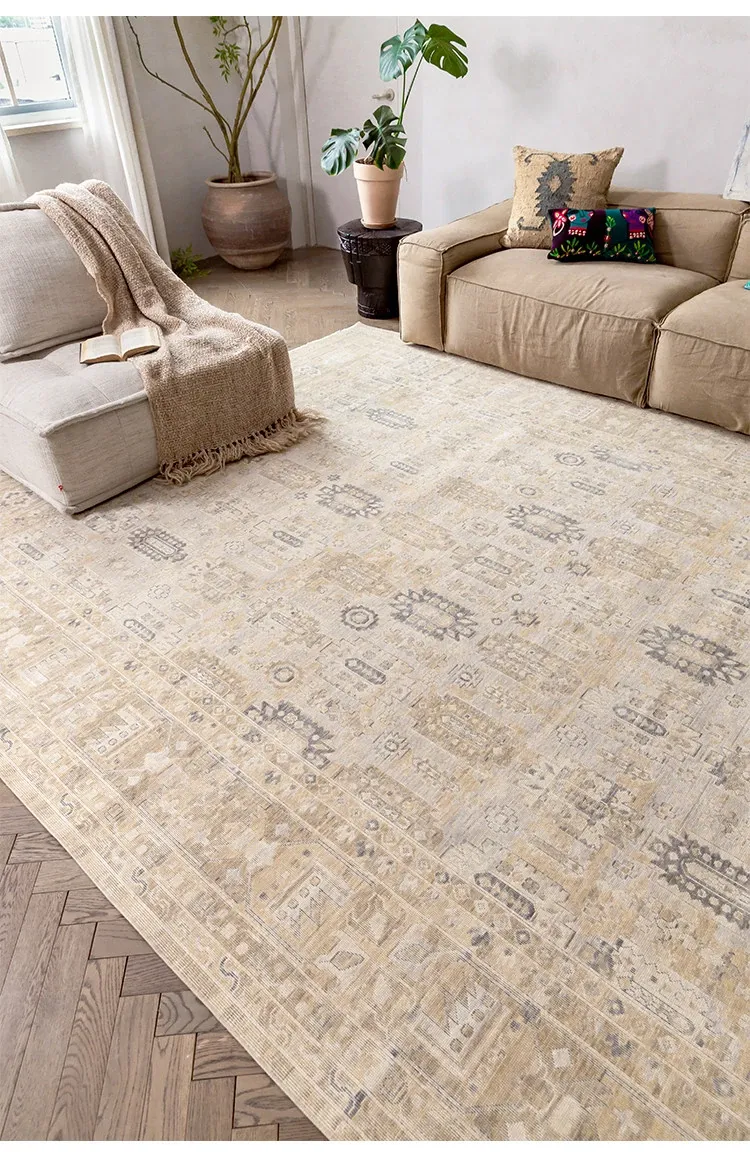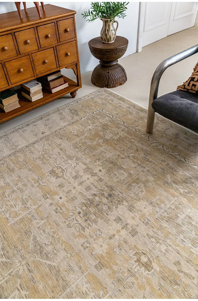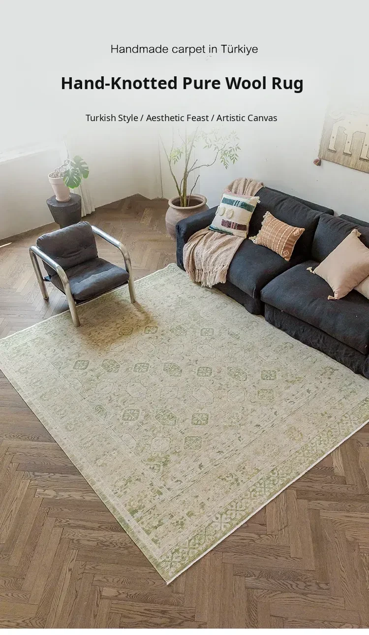 Vintage-Inspired Turkish Wool Area Rug - Handwoven Antique Style for Living Room - High-End Mid-Century Collection