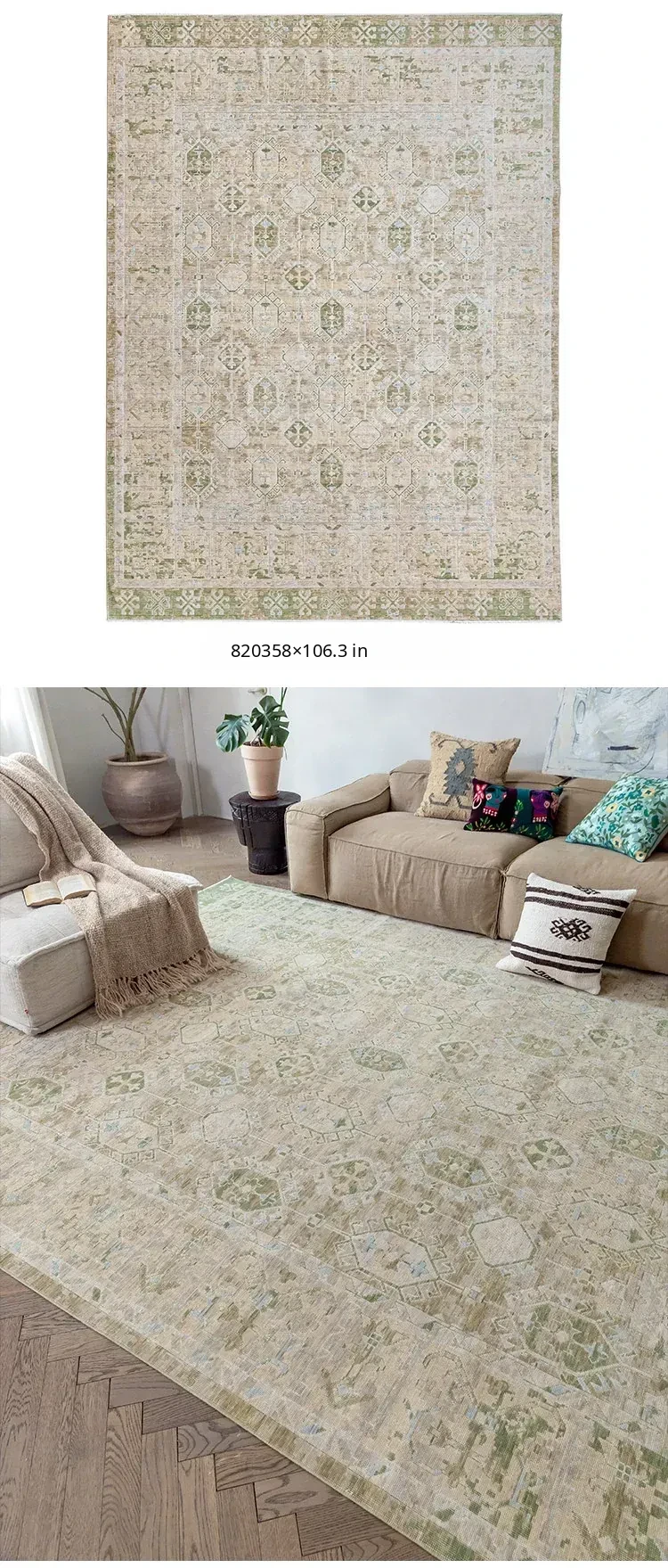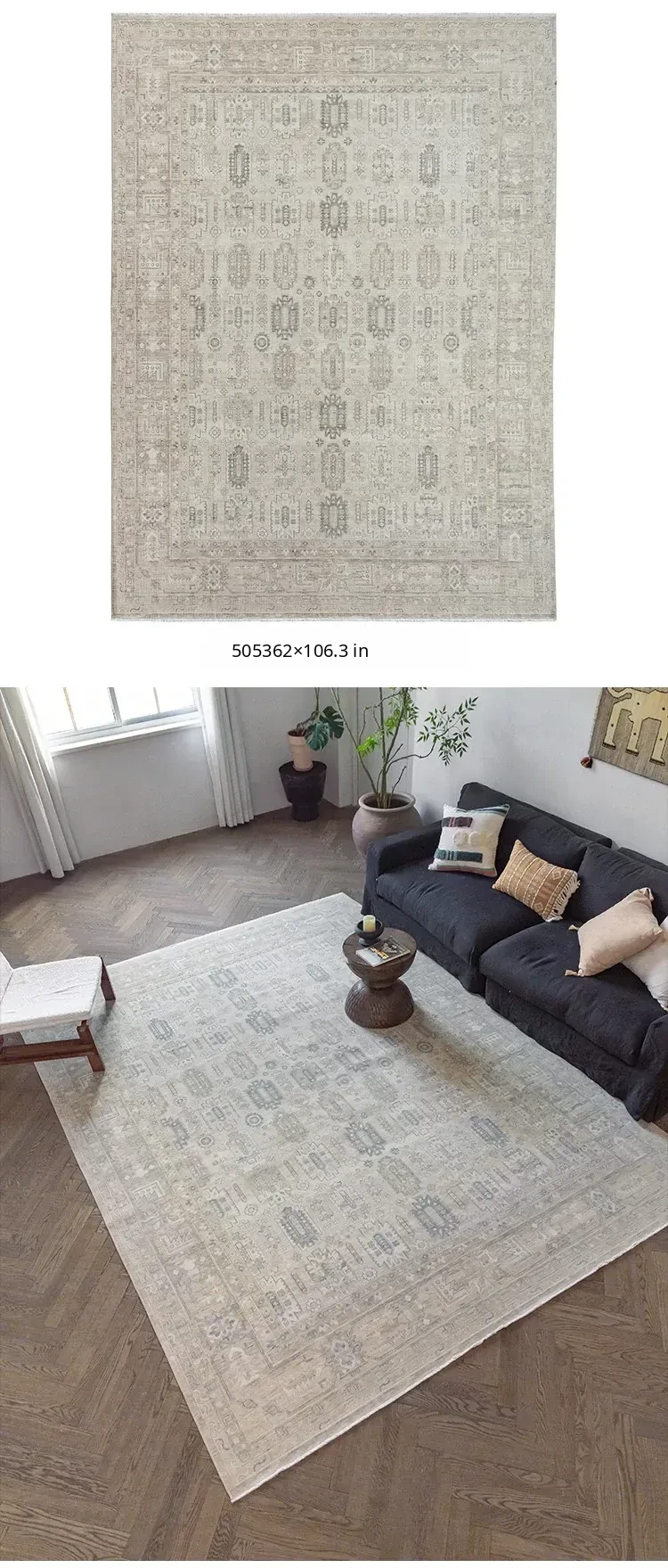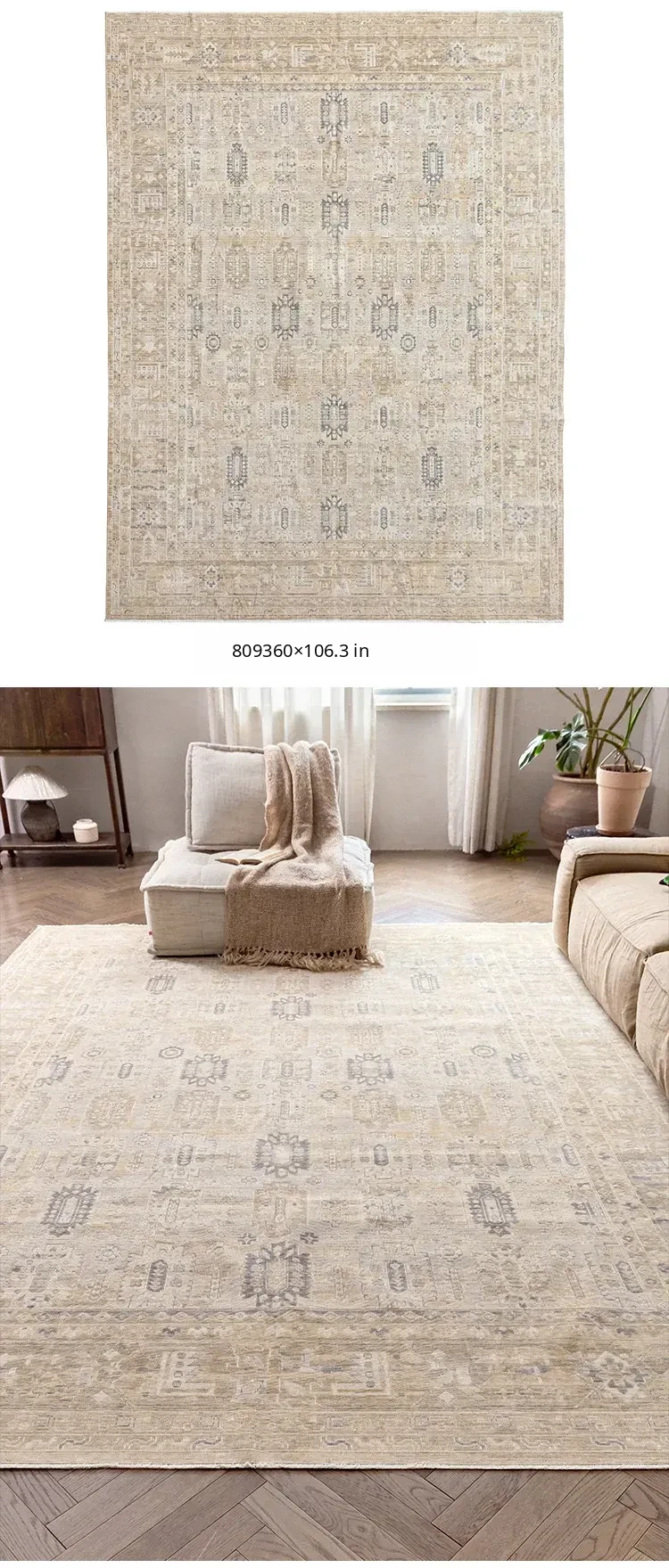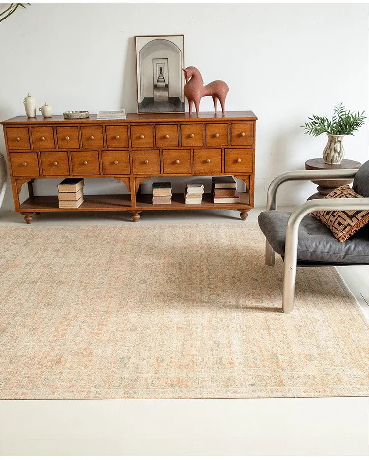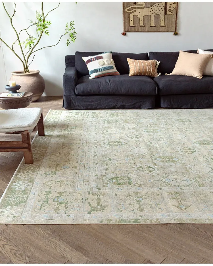 Vintage-Inspired Turkish Wool Area Rug - Handwoven Antique Style for Living Room - High-End Mid-Century Collection