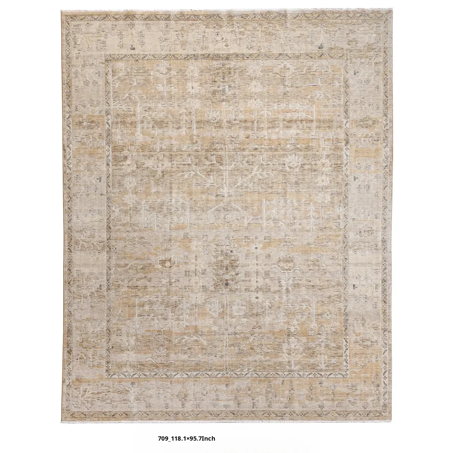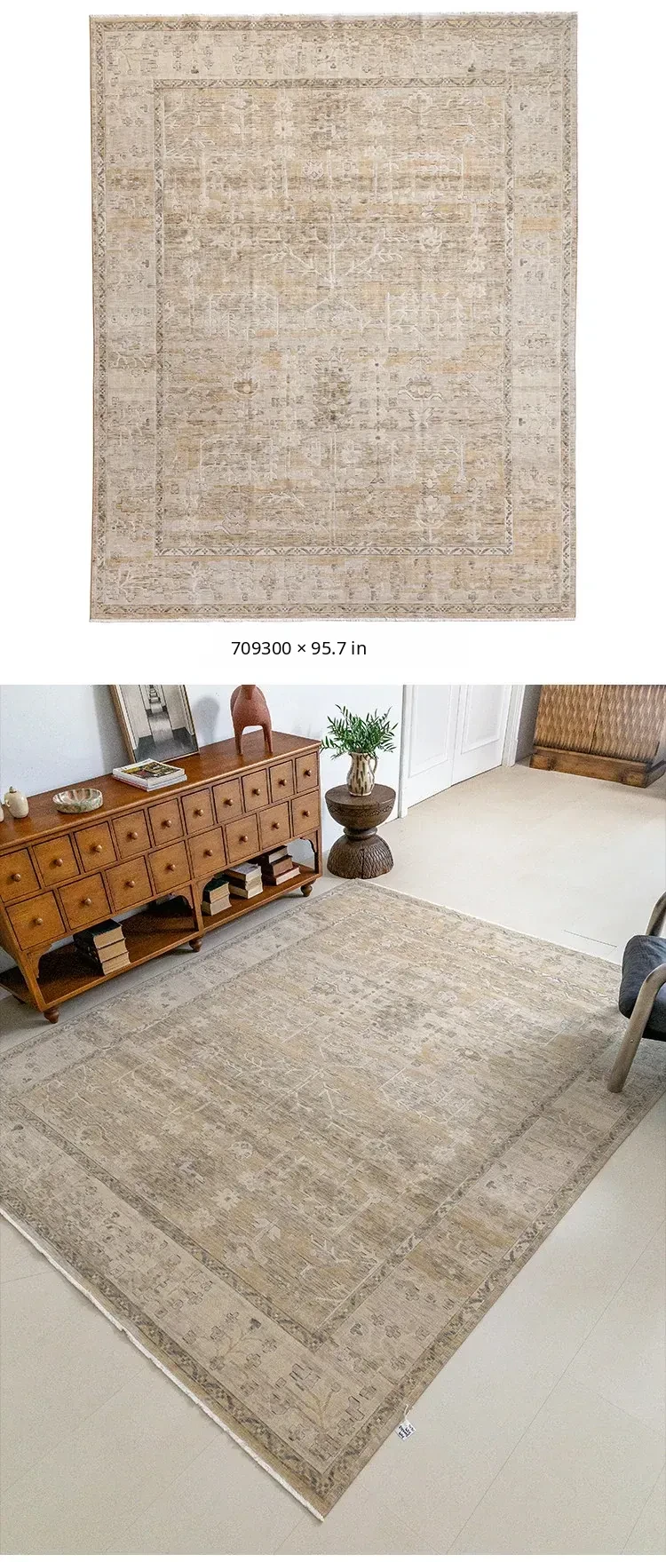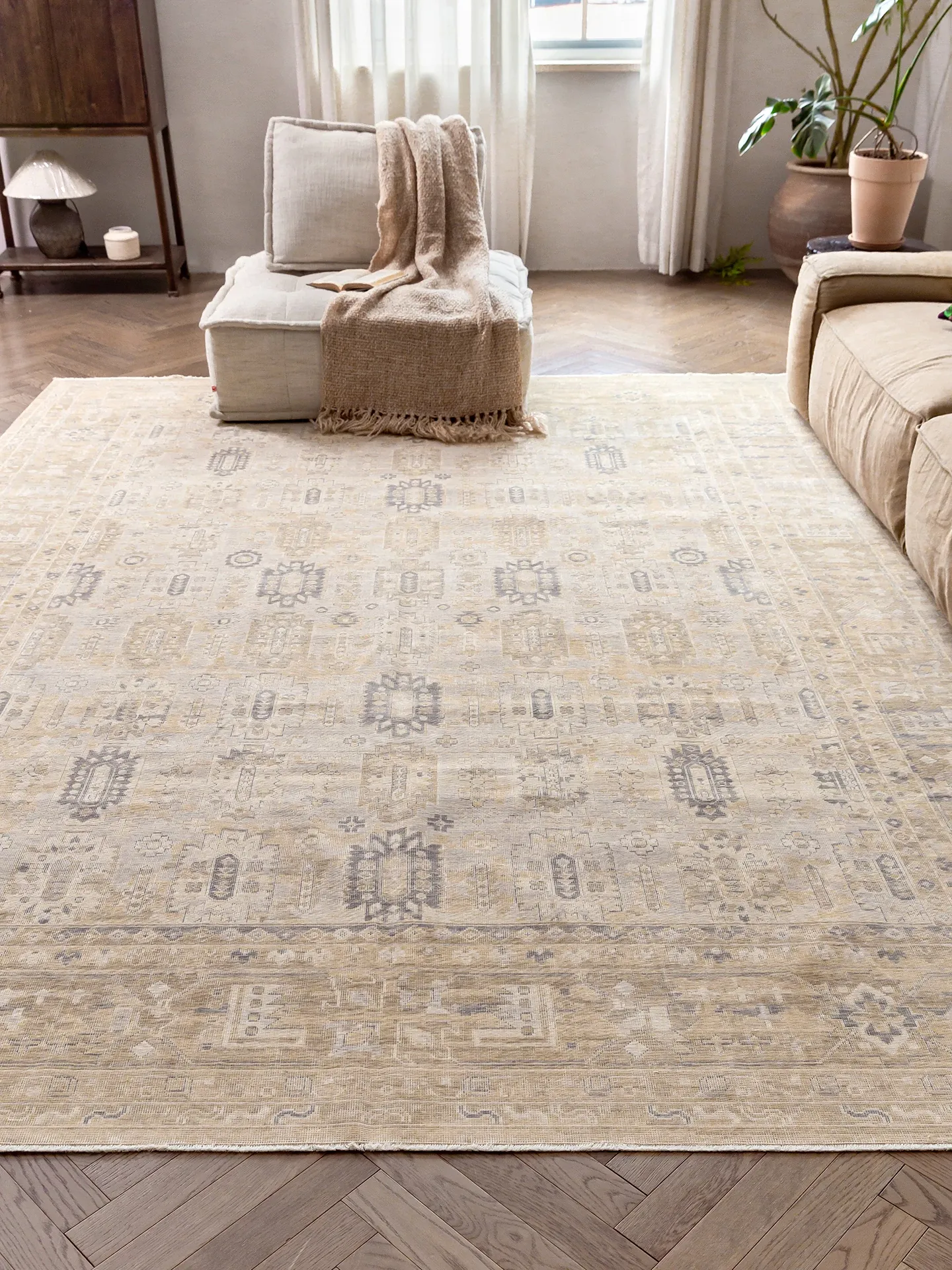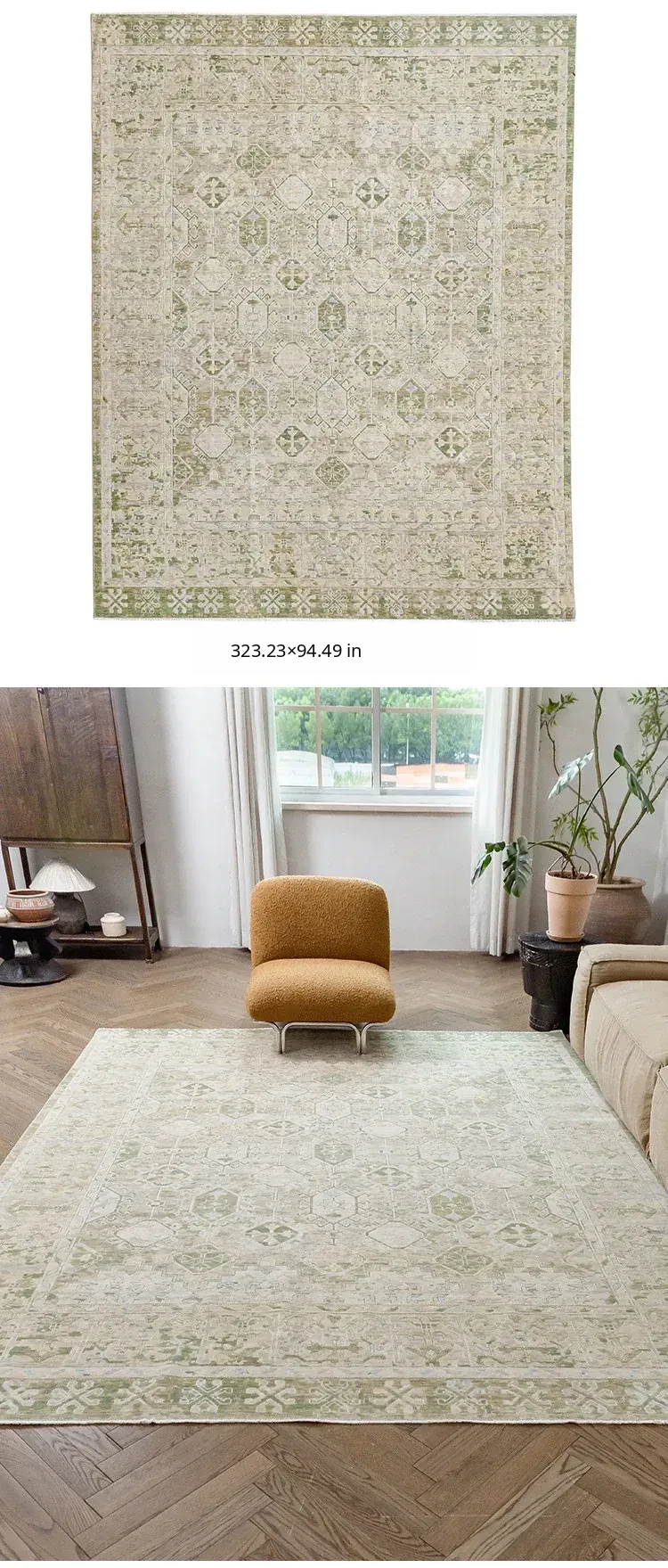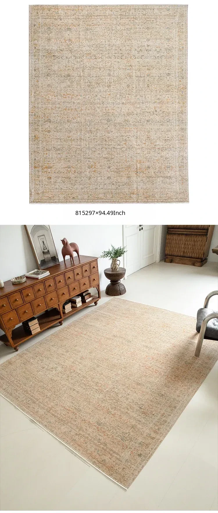 Vintage-Inspired Turkish Wool Area Rug - Handwoven Antique Style for Living Room - High-End Mid-Century Collection