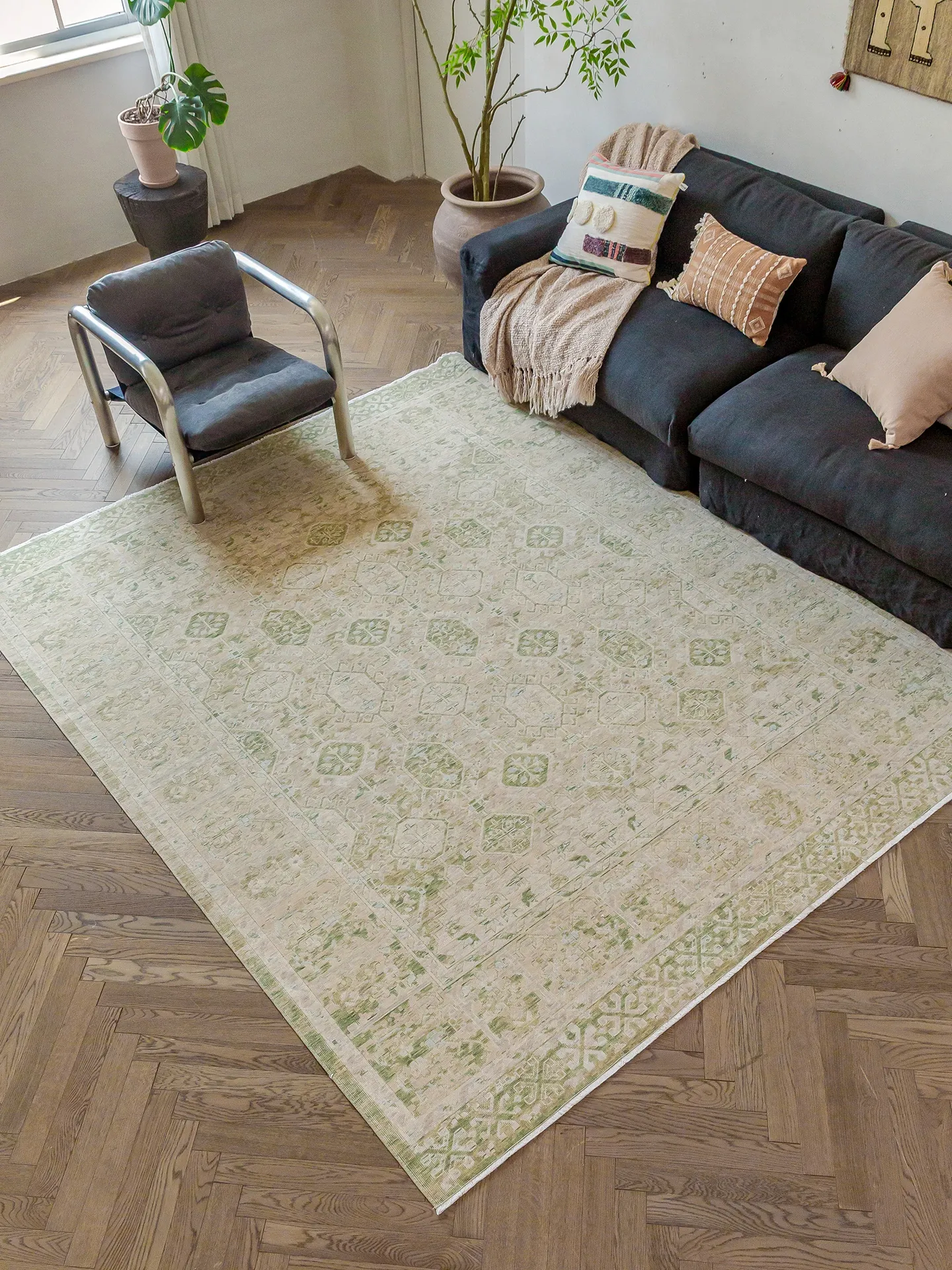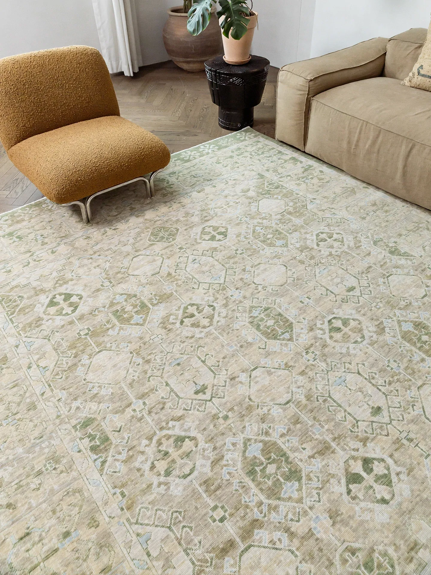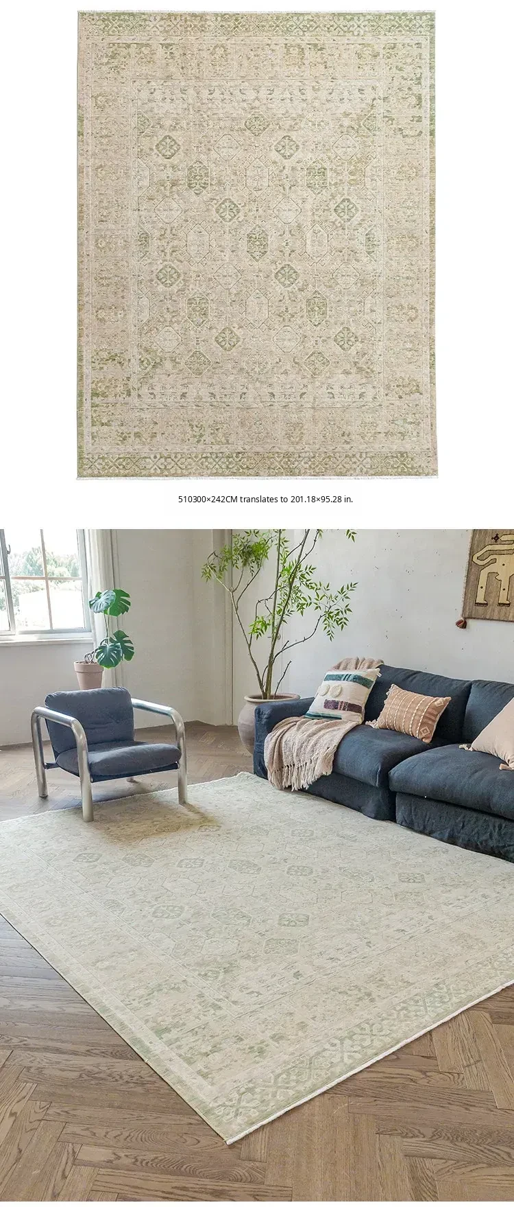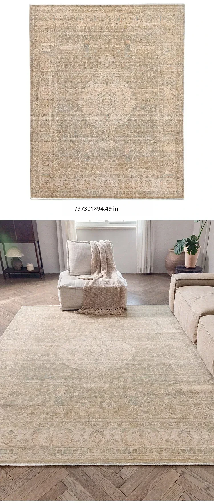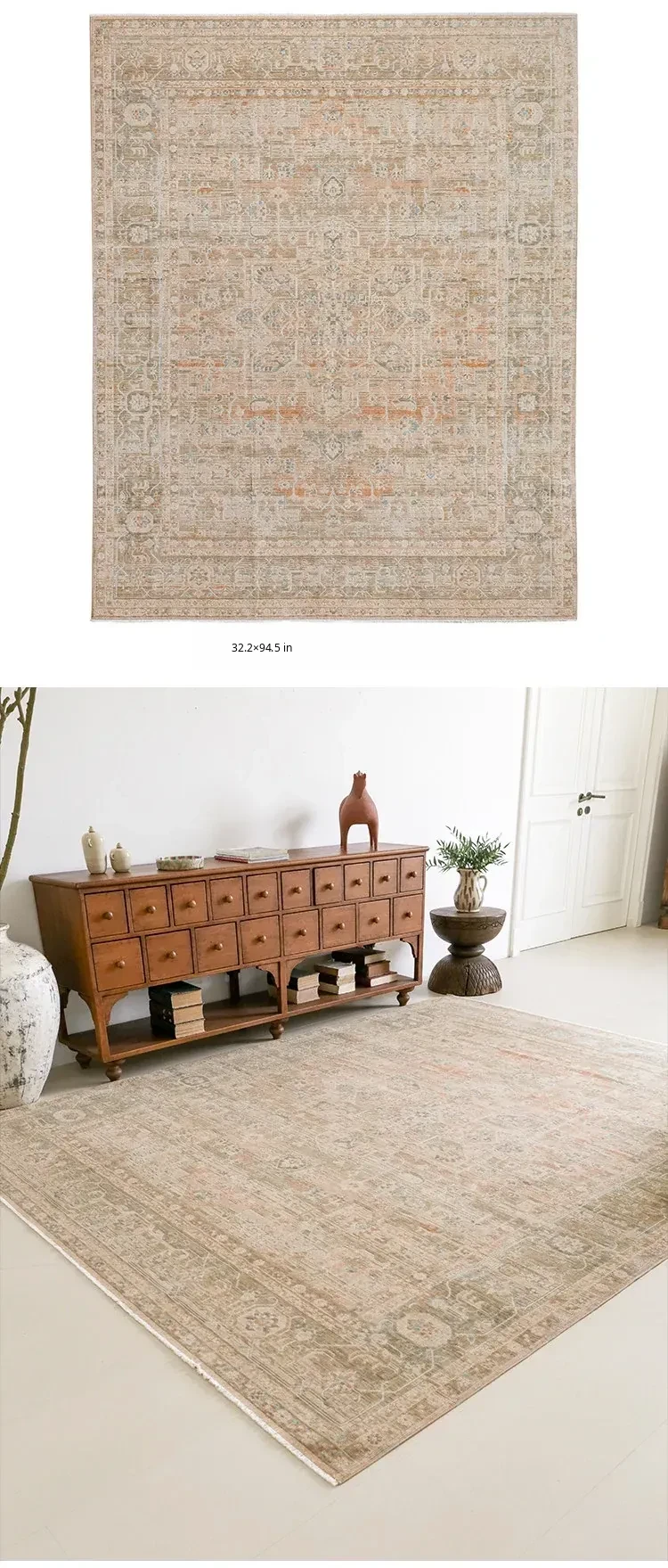 Vintage-Inspired Turkish Wool Area Rug - Handwoven Antique Style for Living Room - High-End Mid-Century Collection