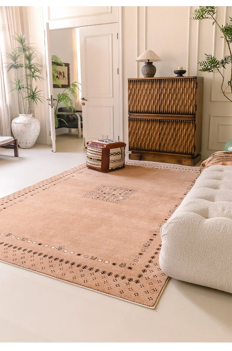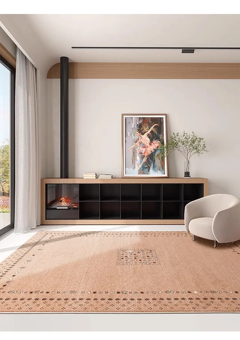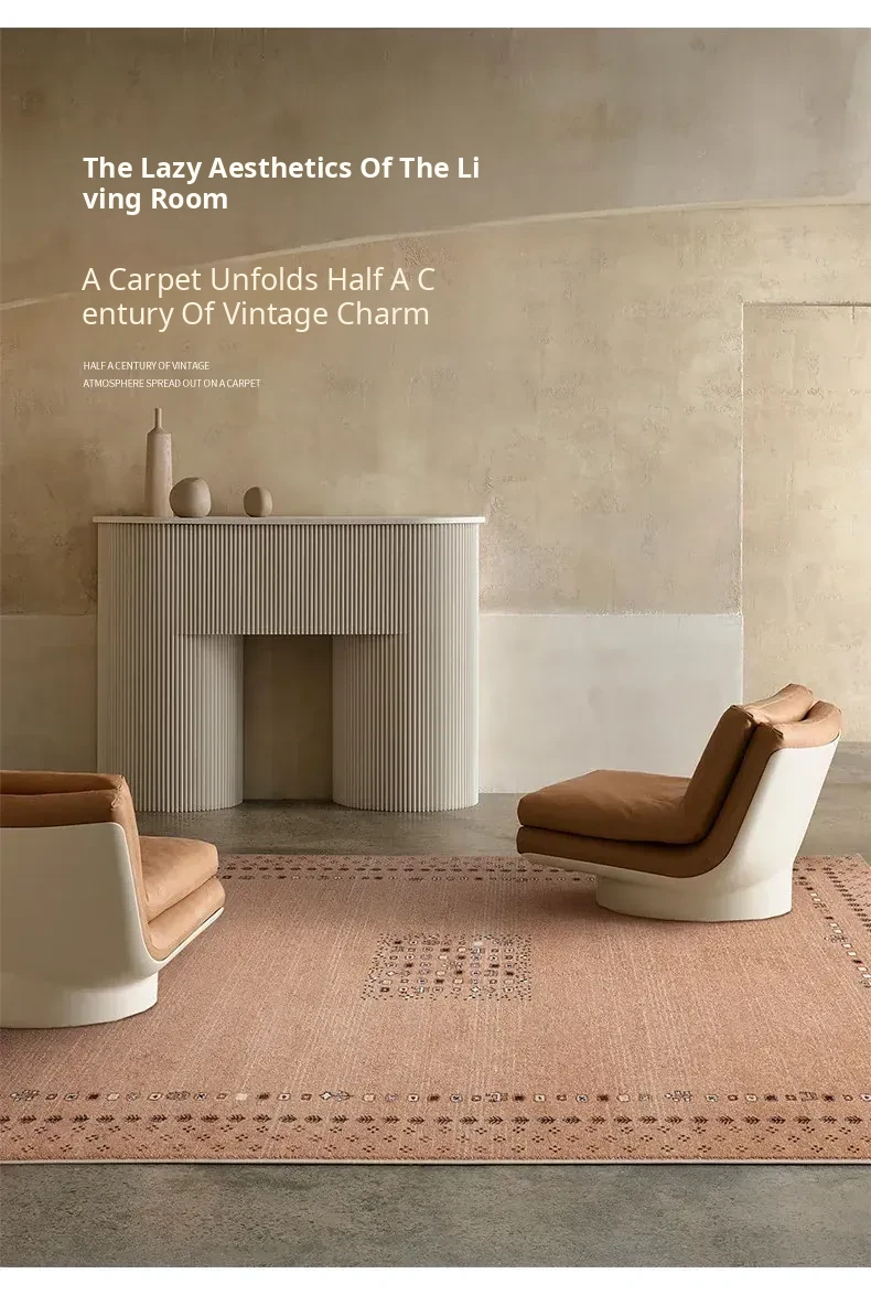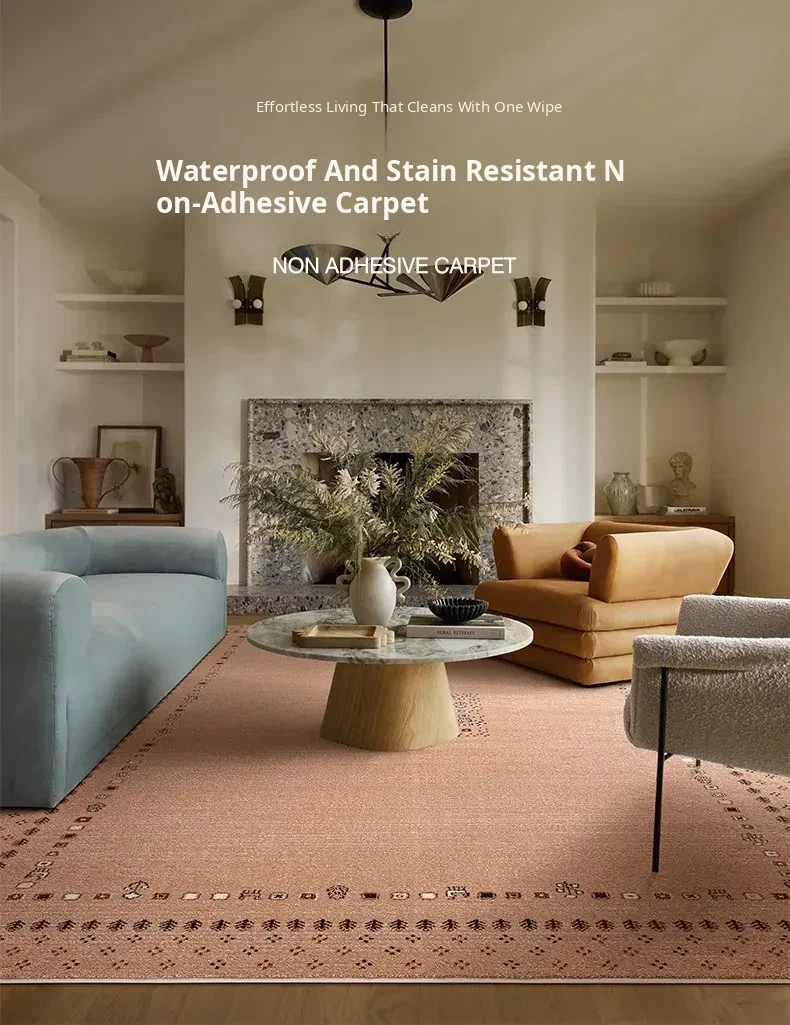 Vintage-Inspired Waterproof and Stain-Resistant Living Room Carpet - French Wabi-Sabi Design, Perfect for a Chic Aesthetic and Easy Maintenance.