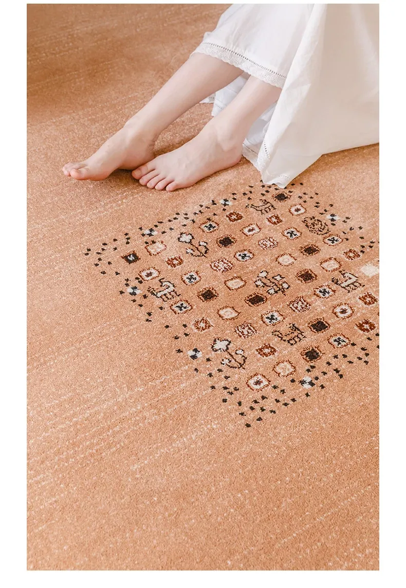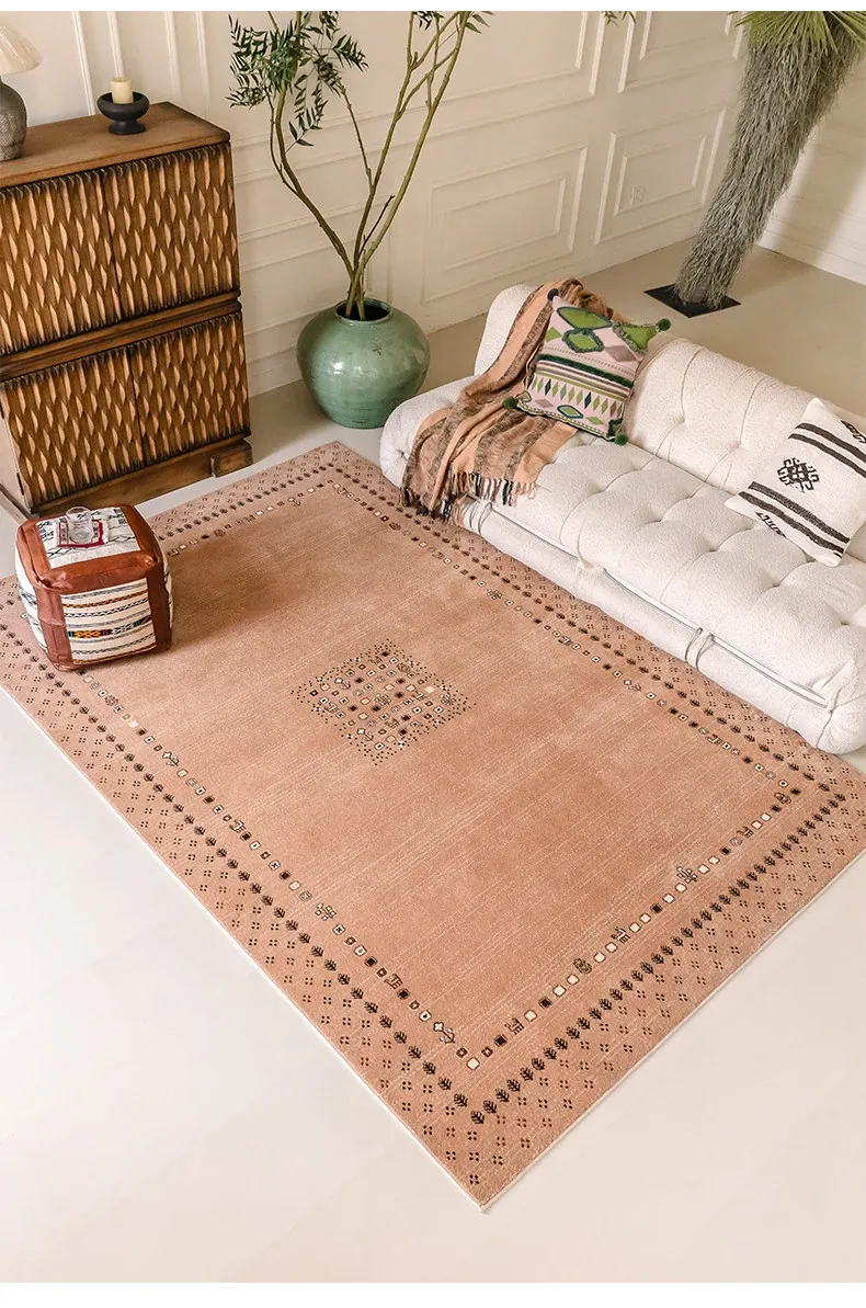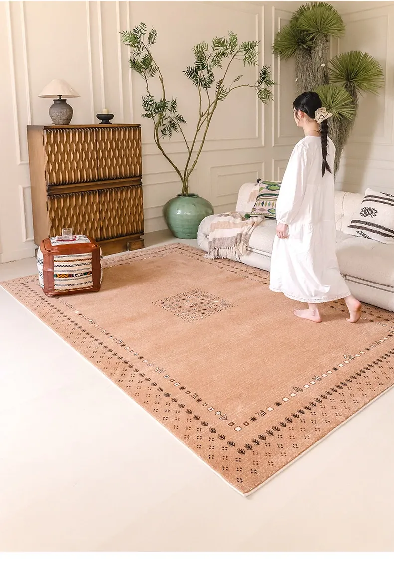 Vintage-Inspired Waterproof and Stain-Resistant Living Room Carpet - French Wabi-Sabi Design, Perfect for a Chic Aesthetic and Easy Maintenance.