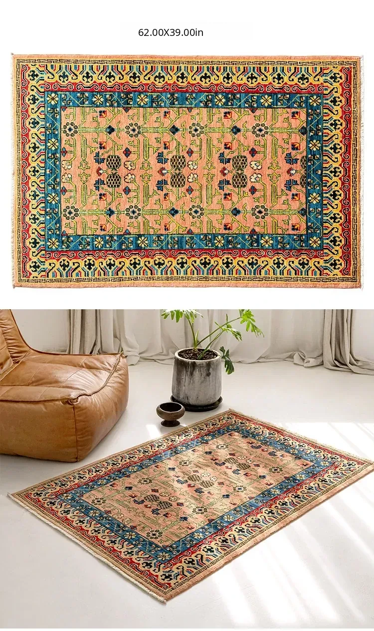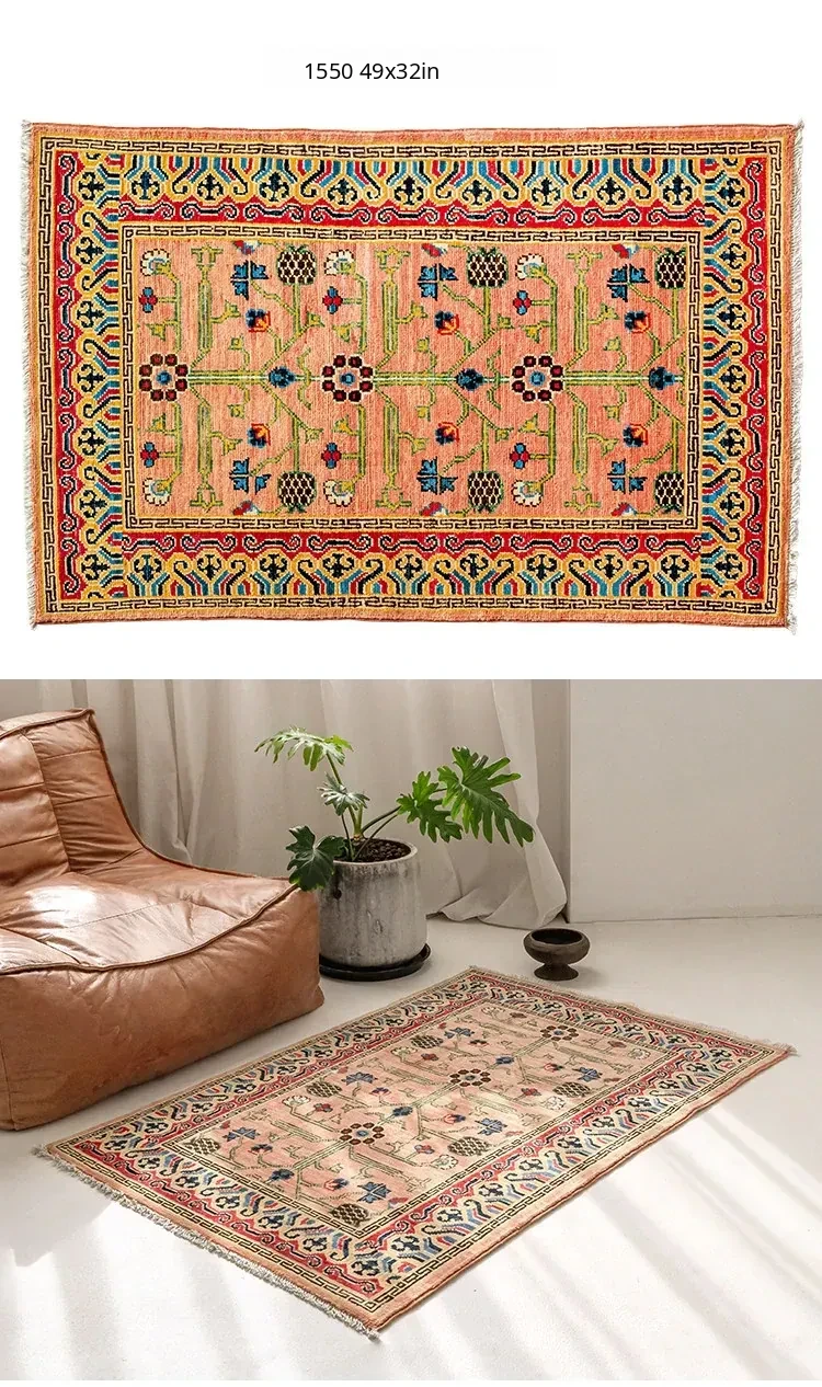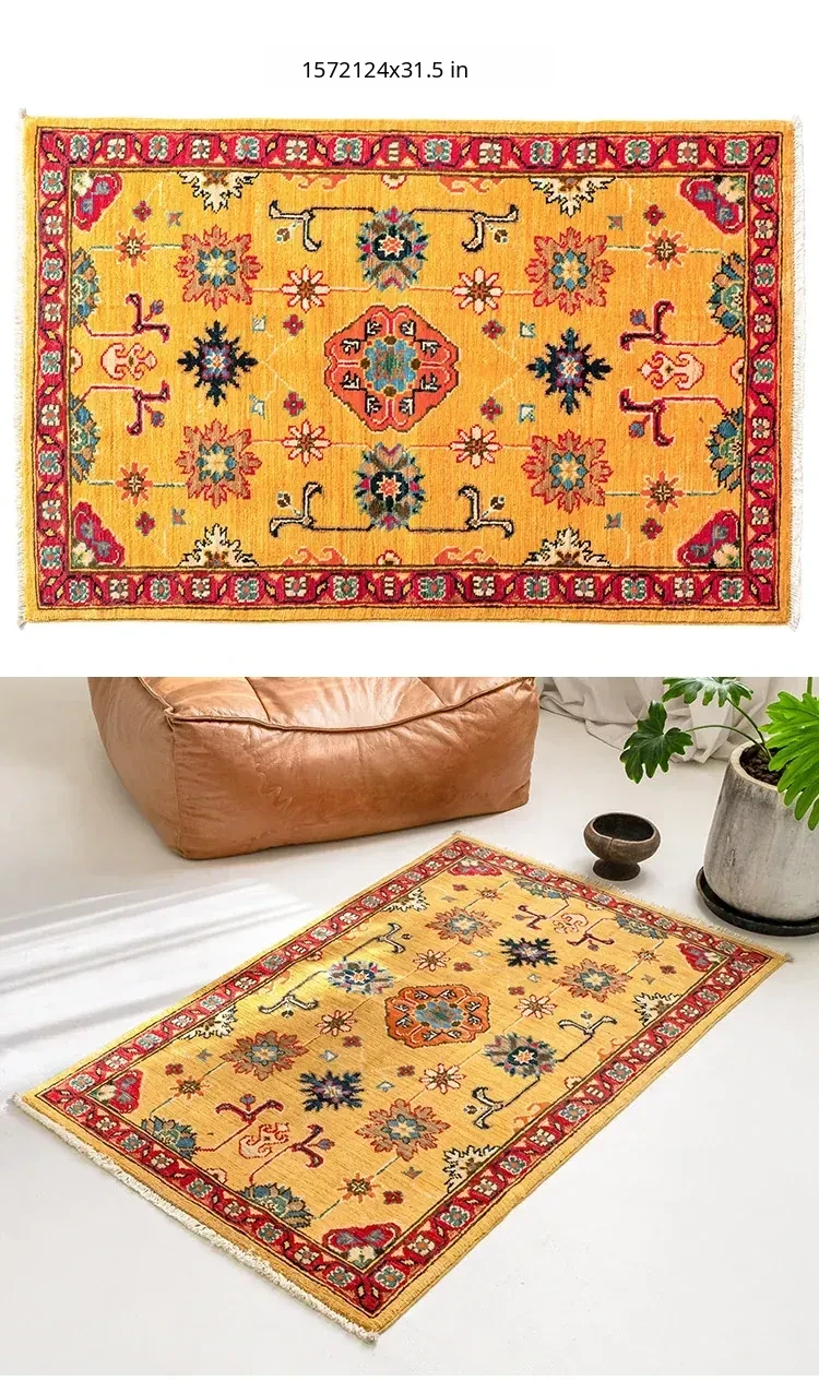 Visual Delight: Handcrafted Afghan Persian Wool Small Rug - Vibrant Red Entryway & Bedroom Bedside Carpet, No Adhesives Needed