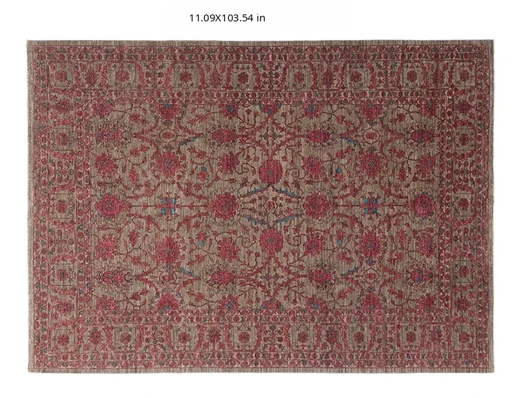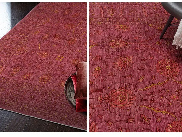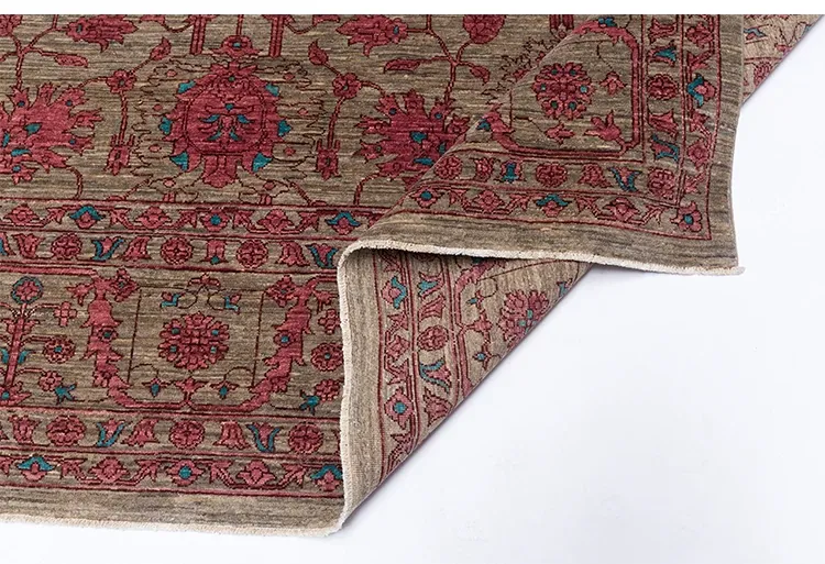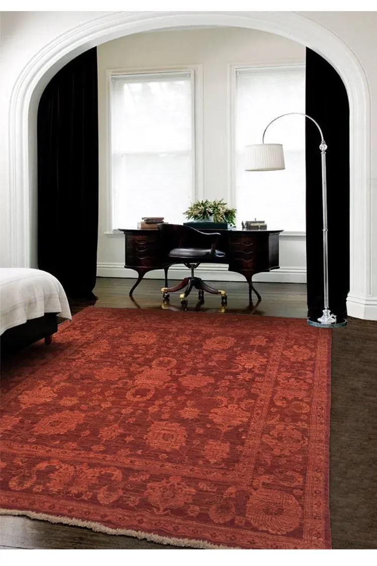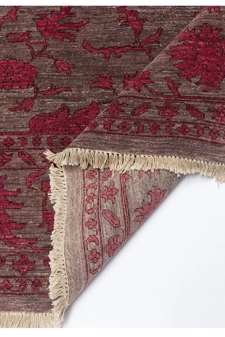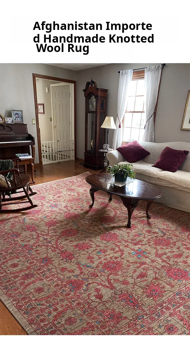 Visual Delight: Hand-Knotted Afghan Red Neoclassical Living Room Rug - Collectible Grade Wool Carpet for Elegant Home Decor
